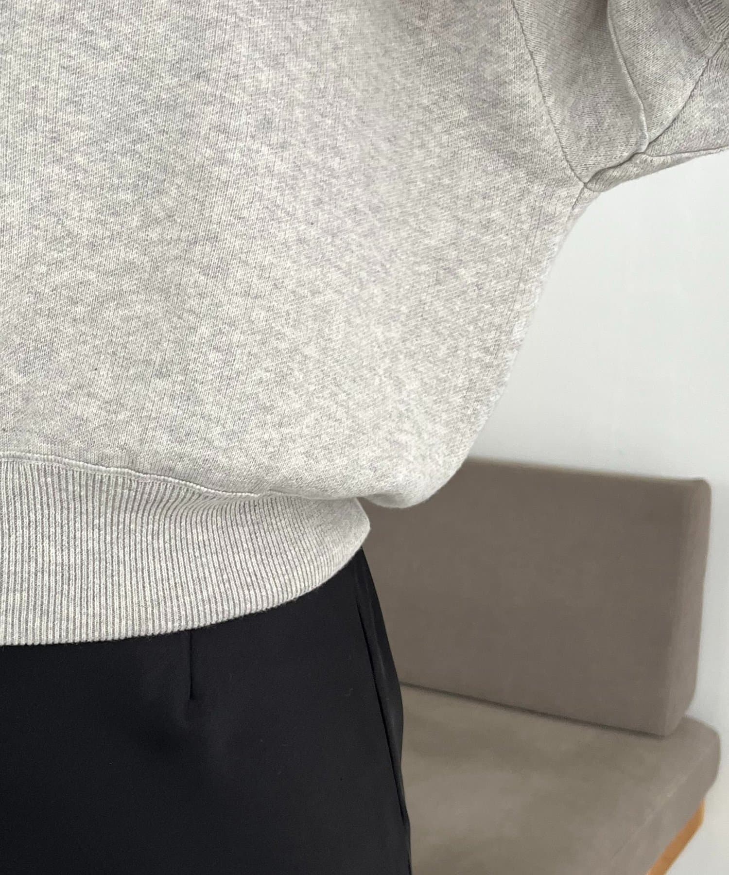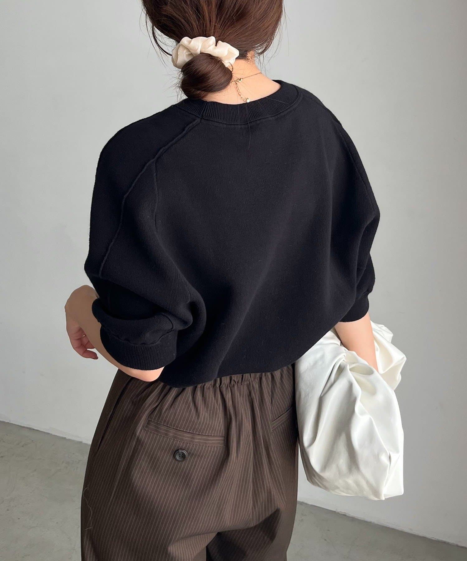 ・ハイゲージで編みたてたニットなのでスウェットよりも上品に見える生地感