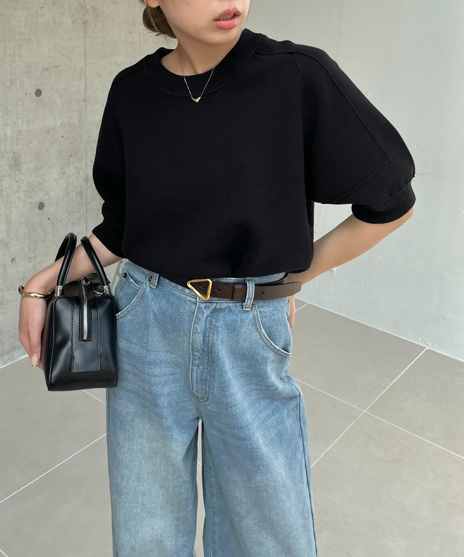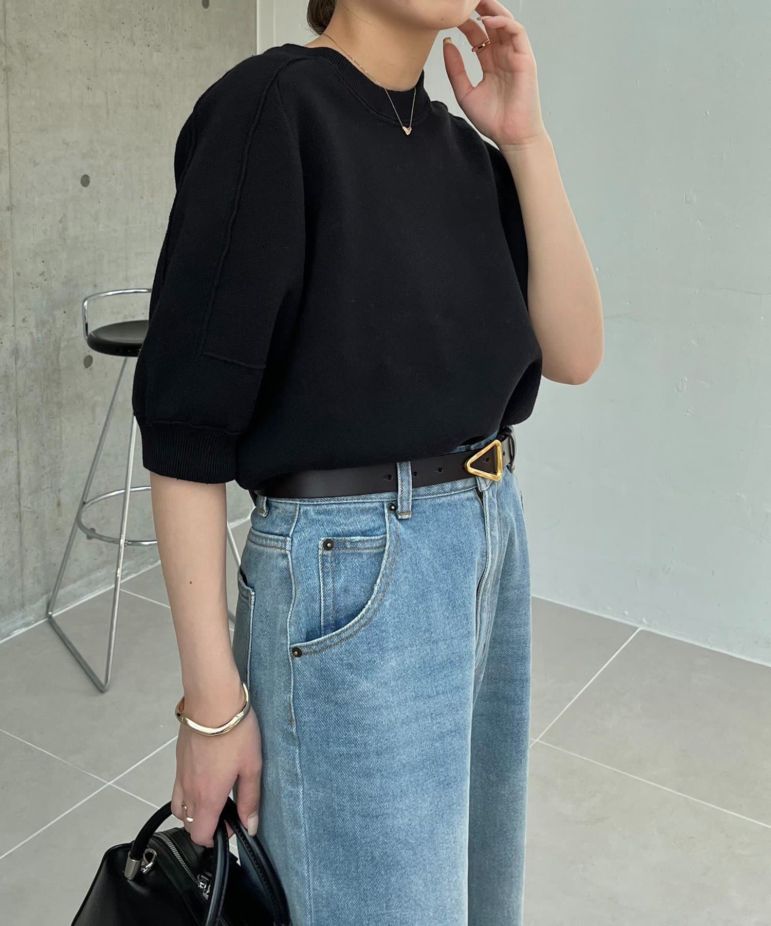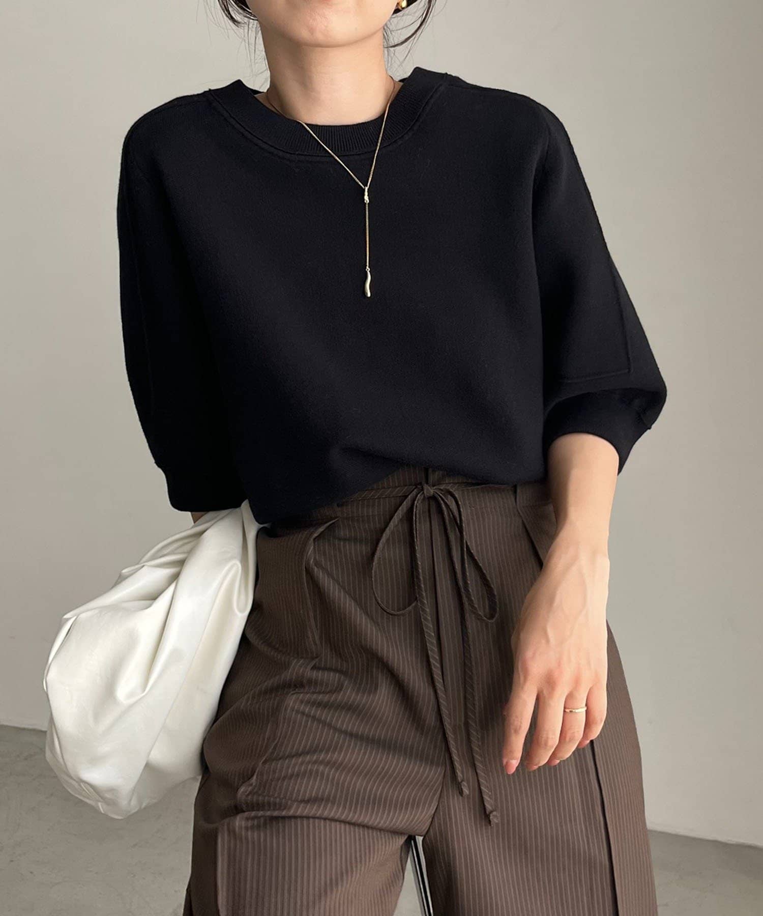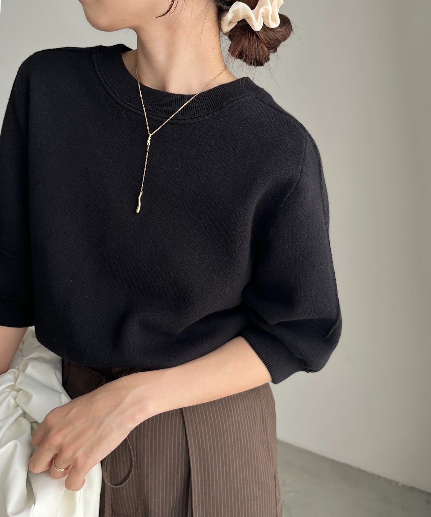 丸みのあるシルエットにこだわった半袖ニット