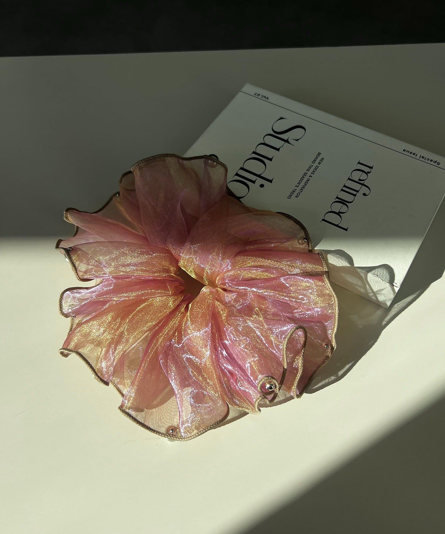 オーガンジー生地でボリューミーに仕上げたシュシュに、