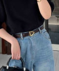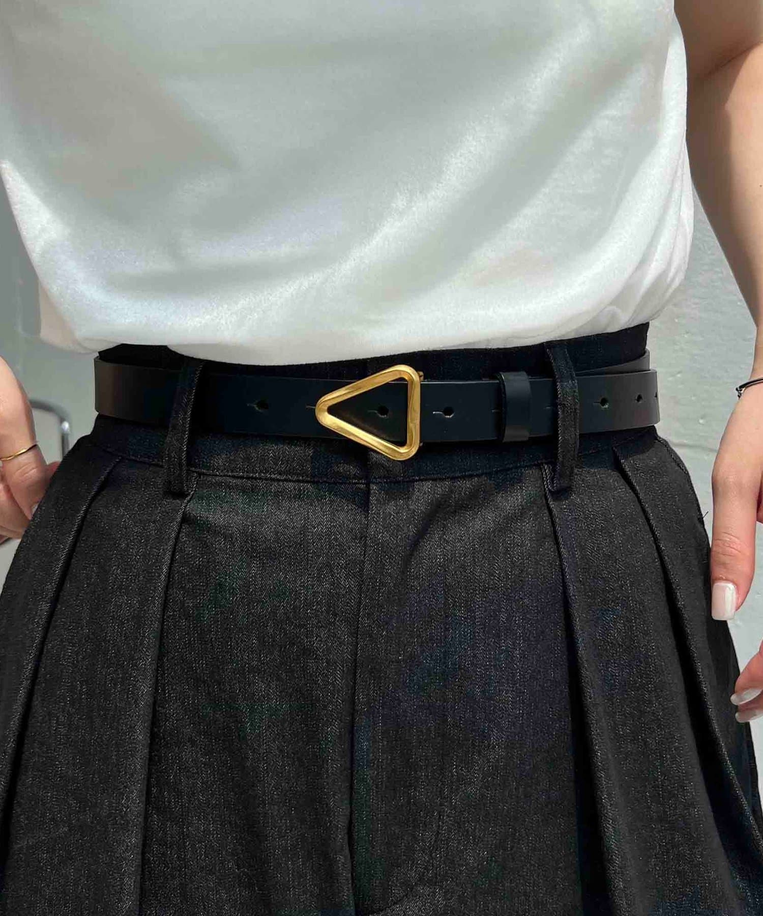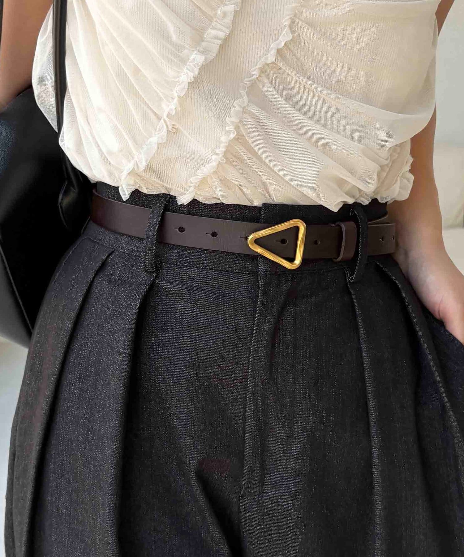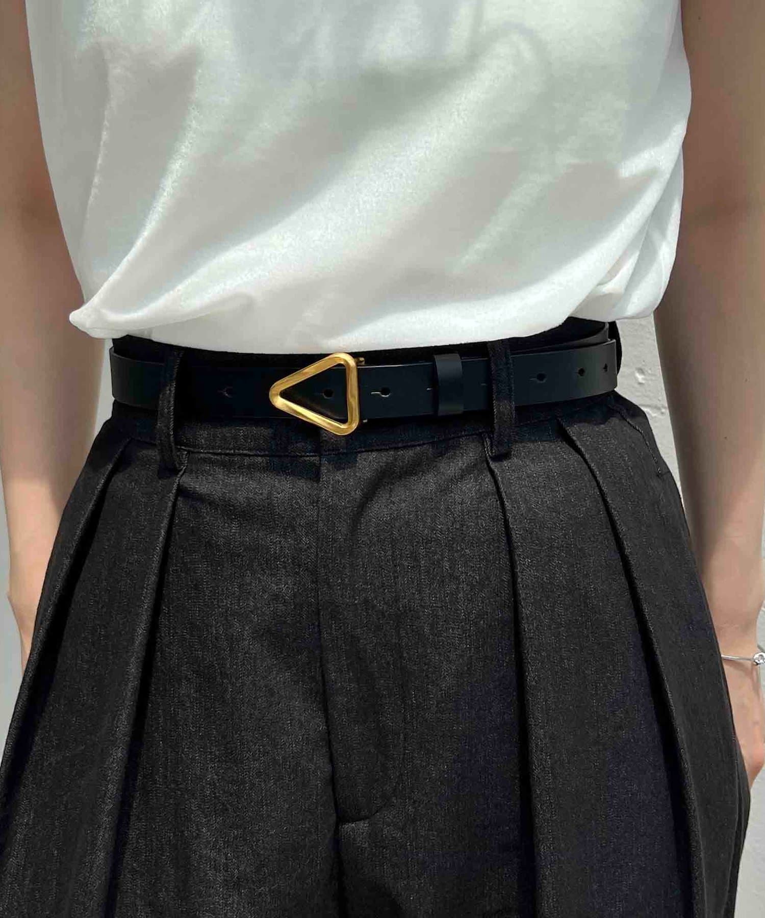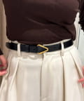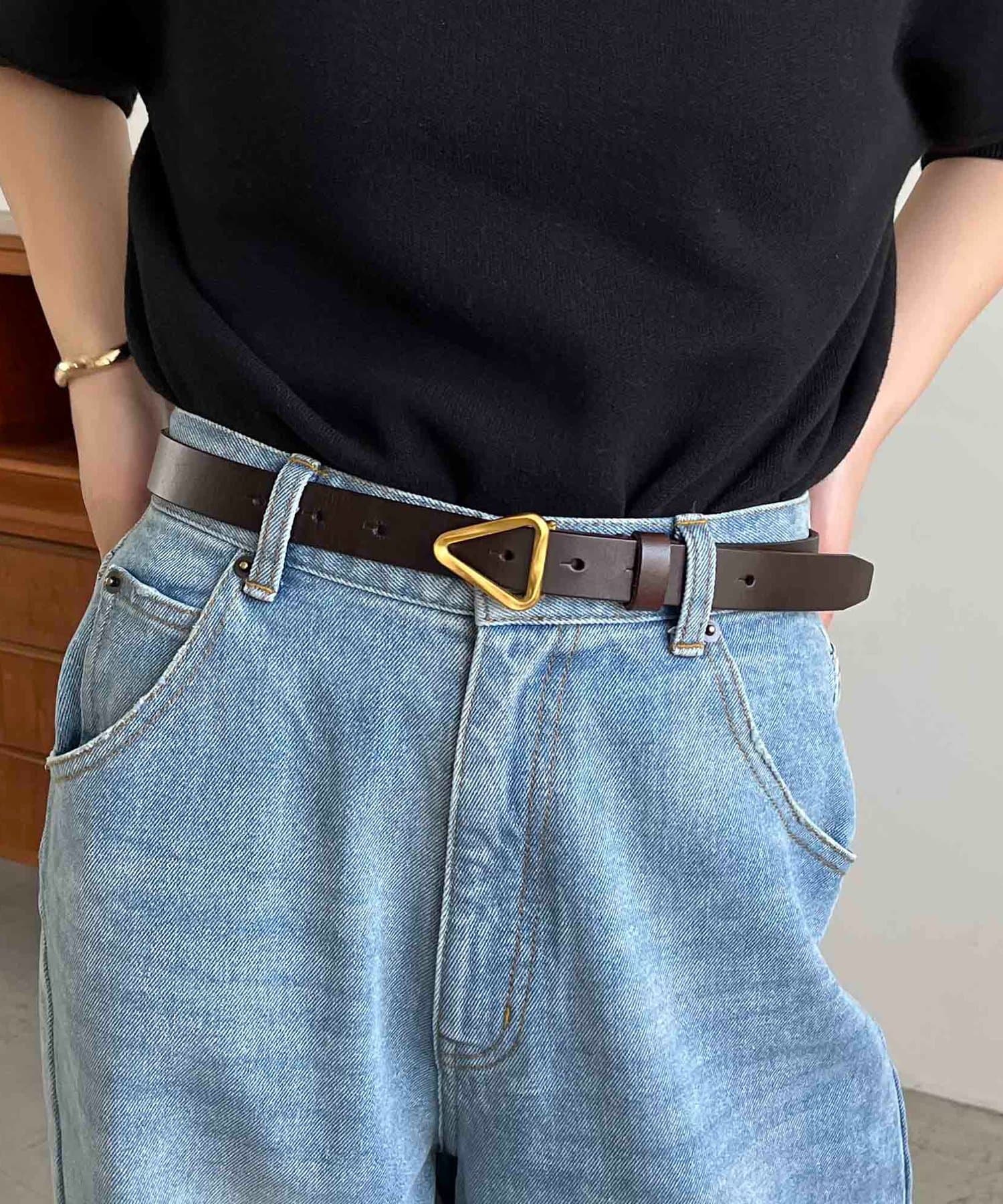 ビンテージ感のある三角のバックルがおしゃれ見え
