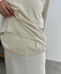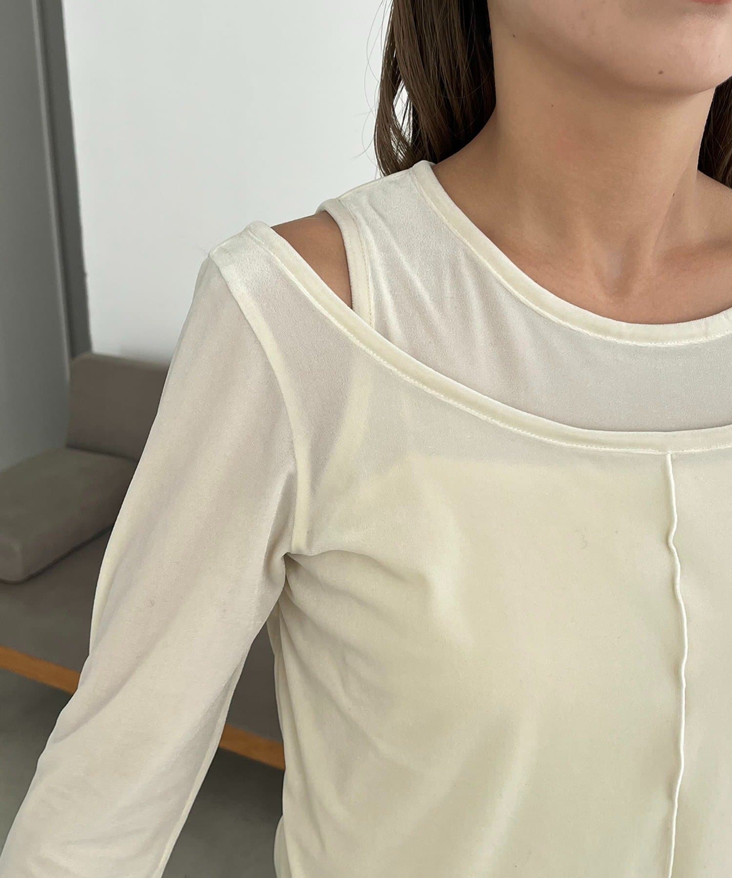 アシンメトリーにレイヤードされた着映えするベロアロンT