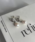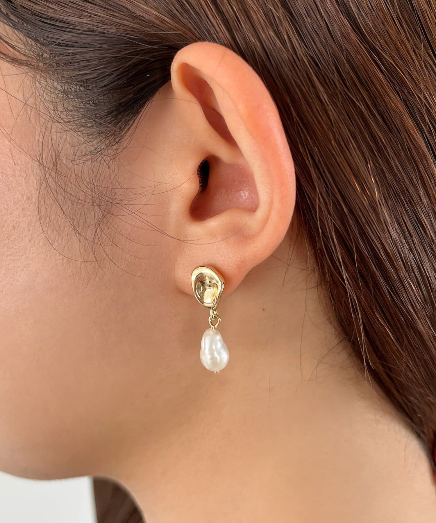 高級感のある淡水パールとドロップモチーフが頬あたりで揺れる上品なデザイン。