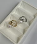 程よい存在感のラインデザインに揺れるパールがポイント