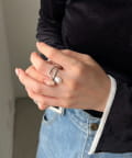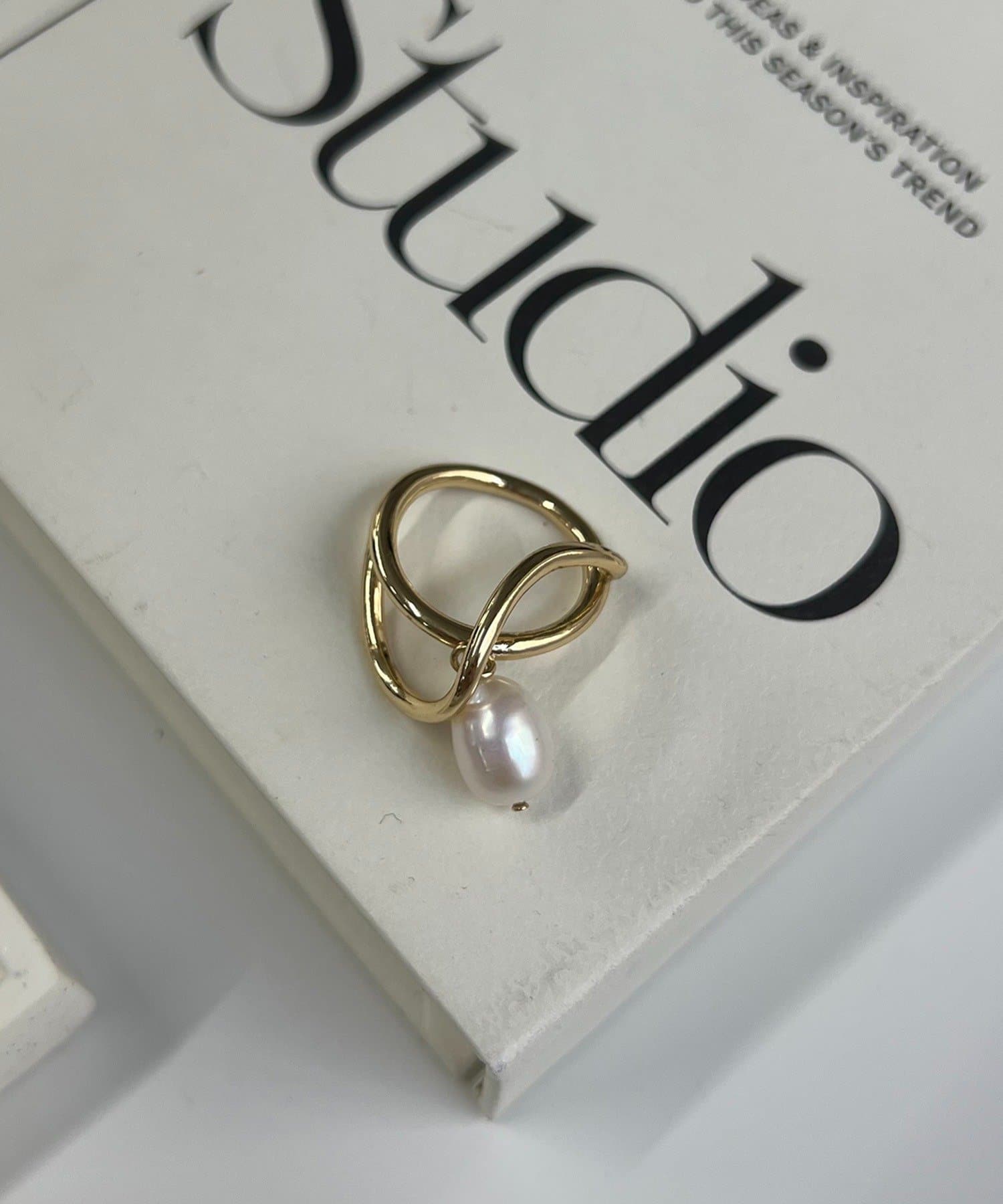 大胆に描いたラインが印象的なリングに、揺れるパールが目を惹くデザインは、上品で華やかな指元を演出します。