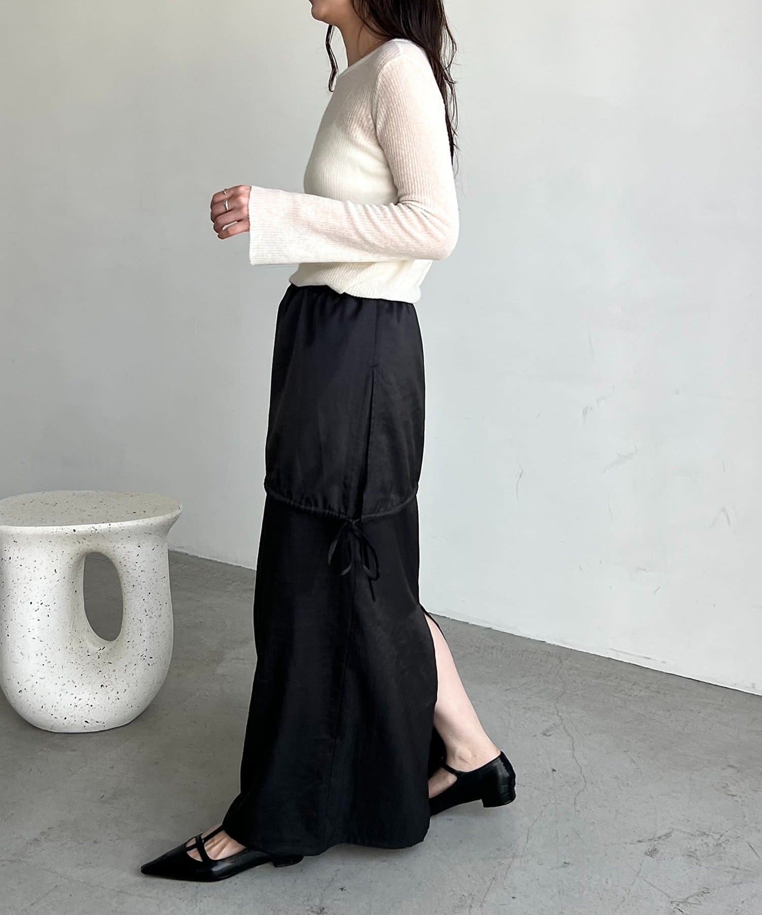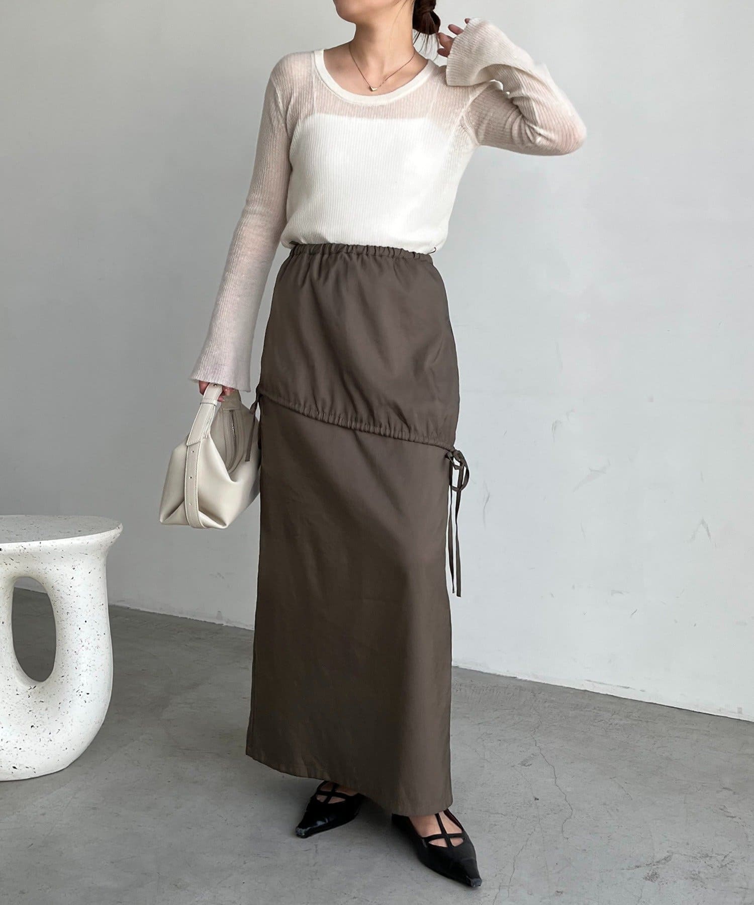・ウエスト部分に紐が入っており自分のウエストに合わせて調節可能