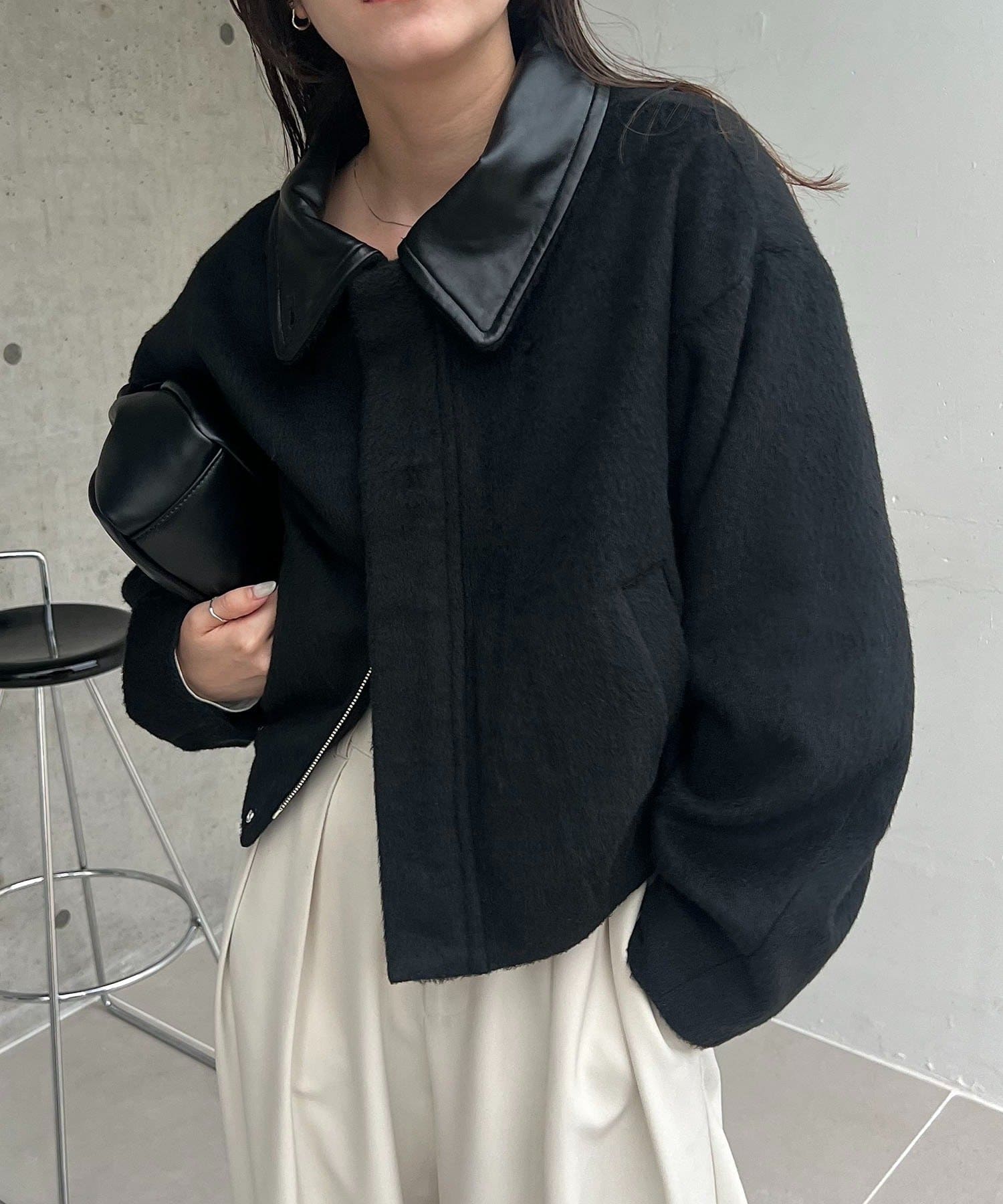 ・スタンドネックを折り返すと合皮の襟になるのがポイント