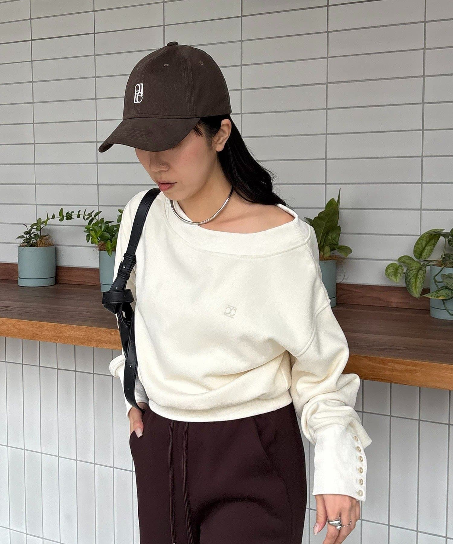 ニュアンスロゴが女性らしいこなれ感をプラス