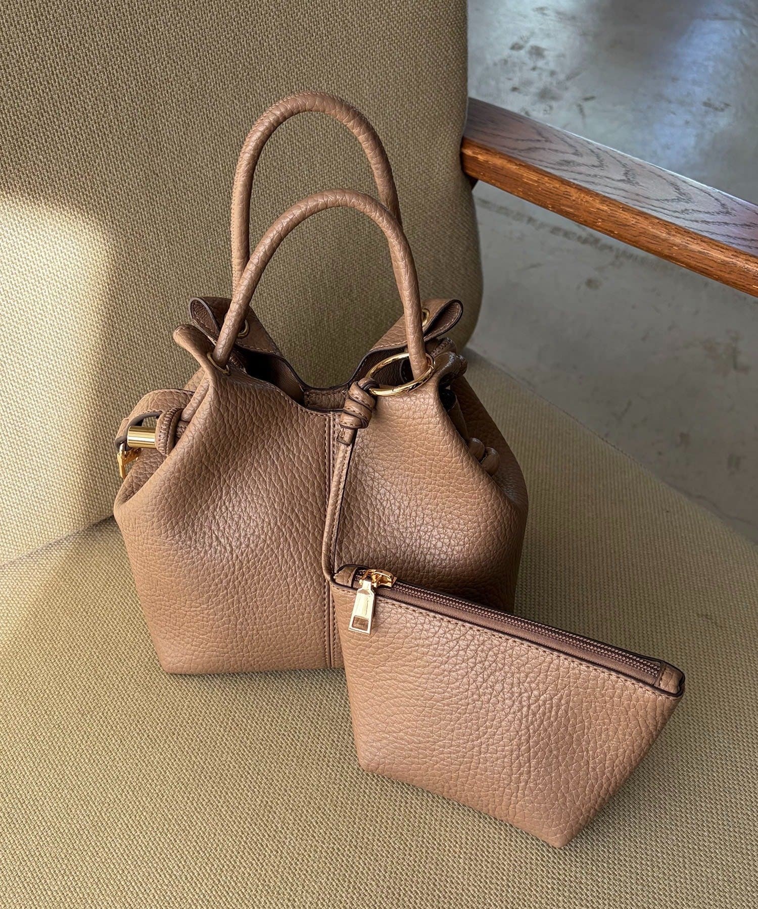 ・同素材のポーチがセットに