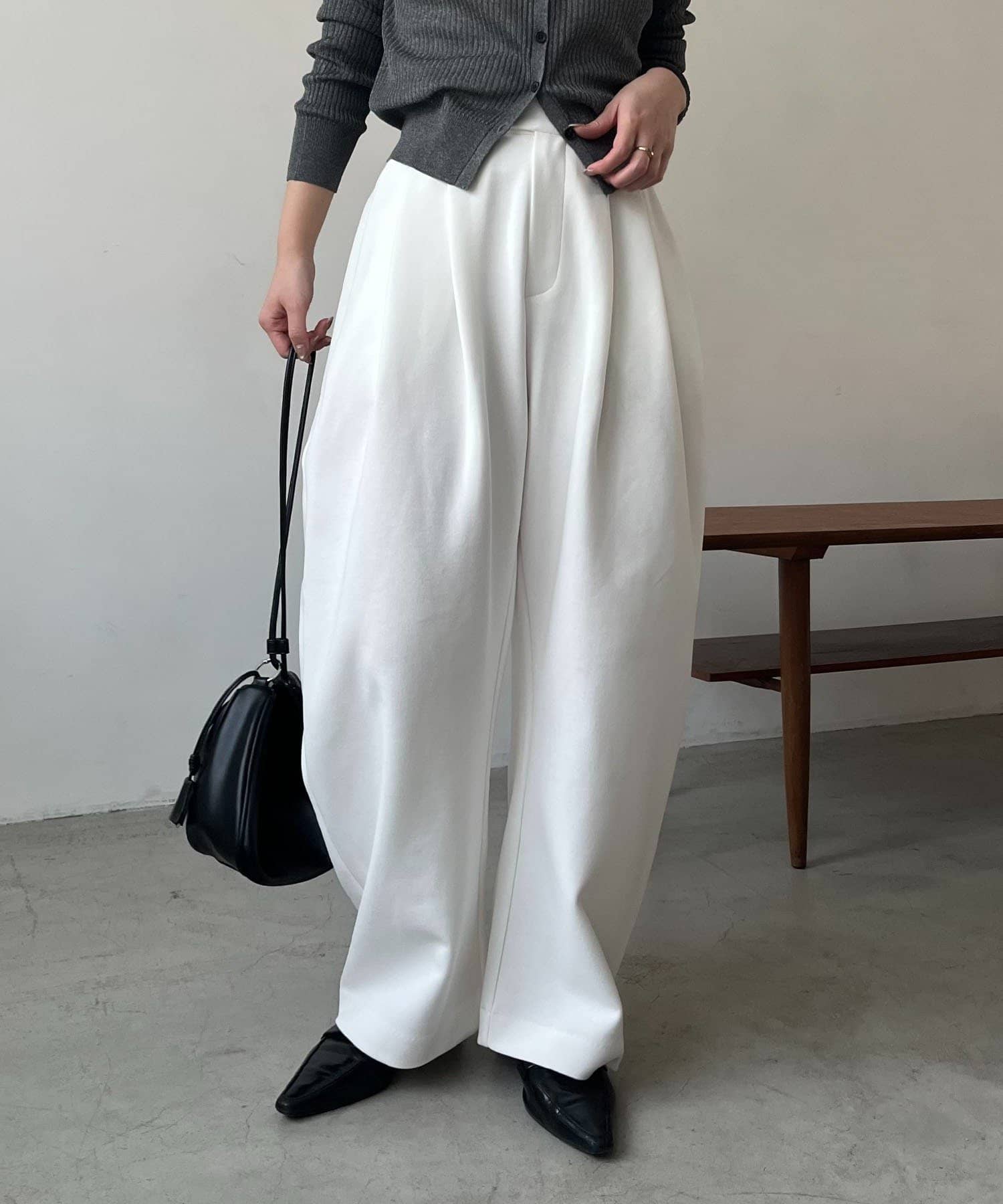 立体的なカーブラインでこなれた大人カジュアルスタイルに