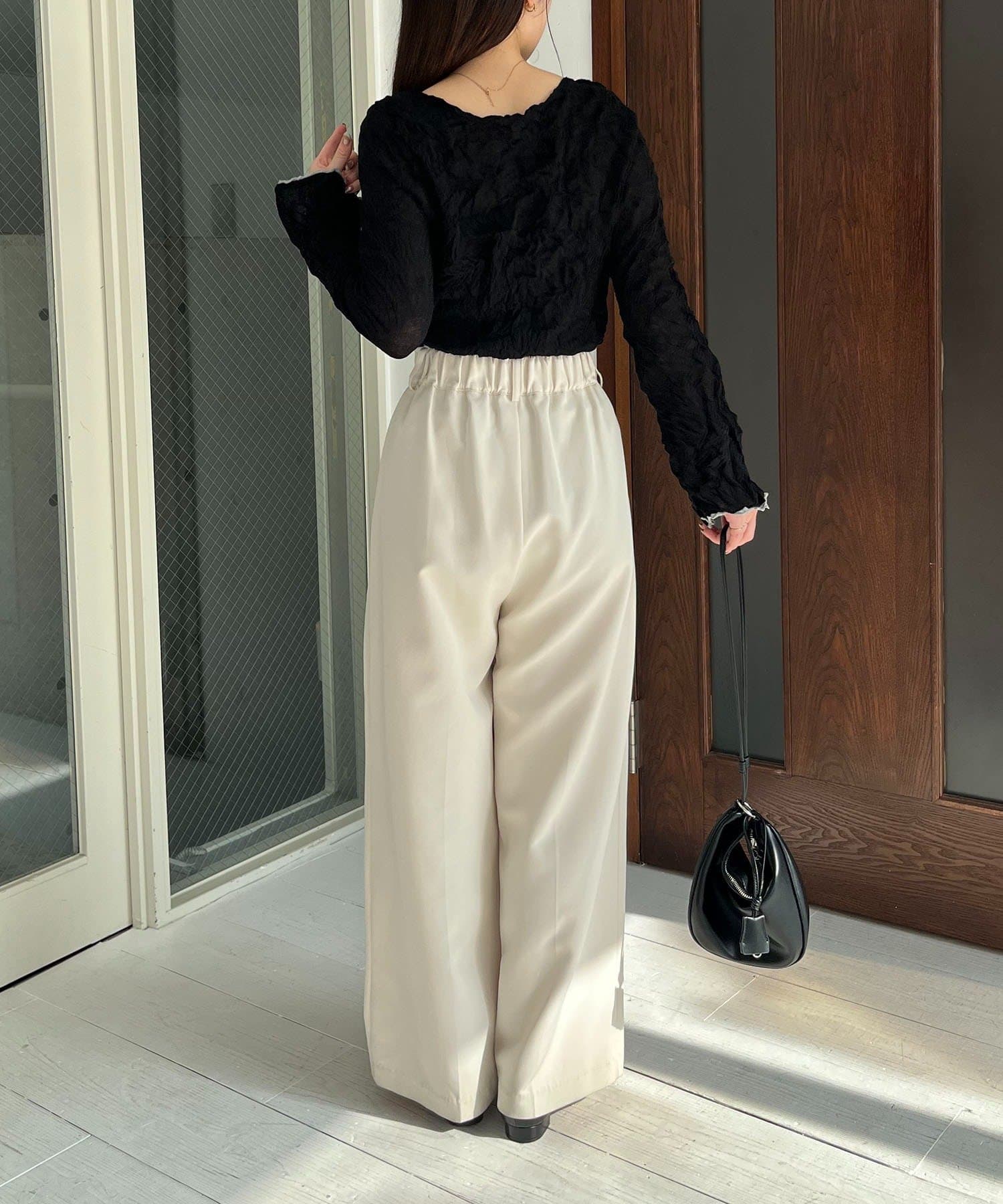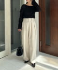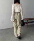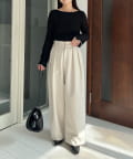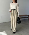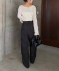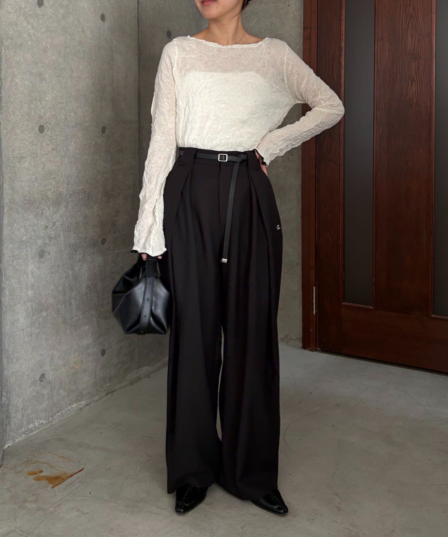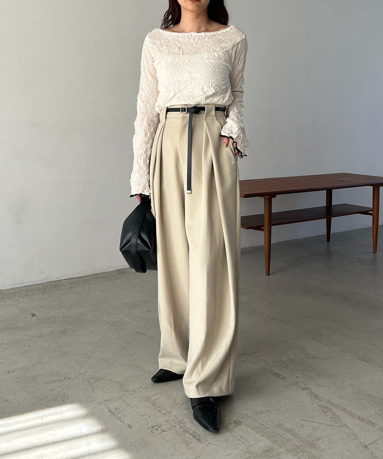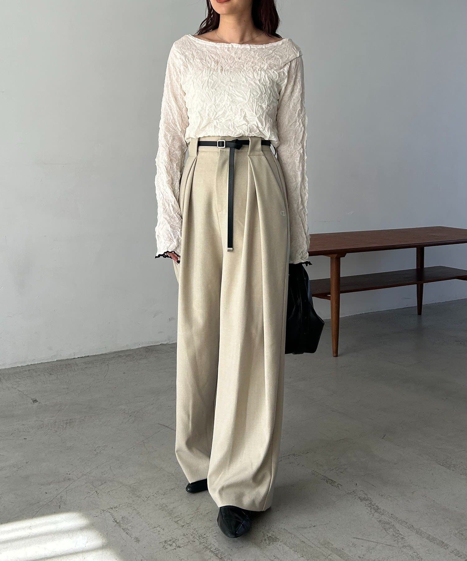 【エクリュ着用アイテム①②】レザーベルト付変形タックパンツ