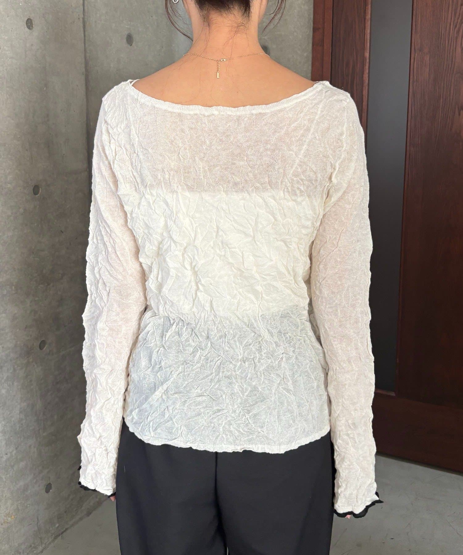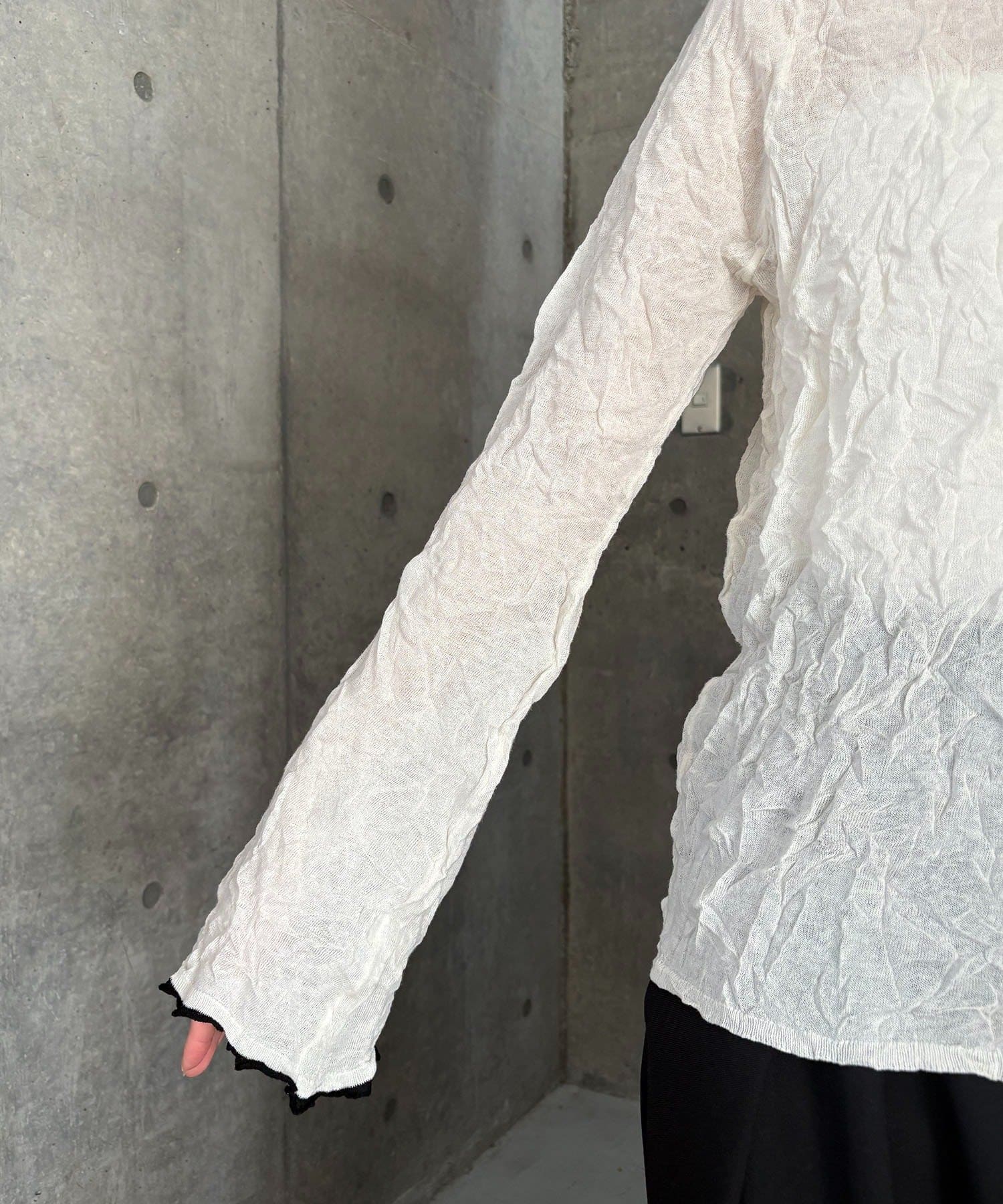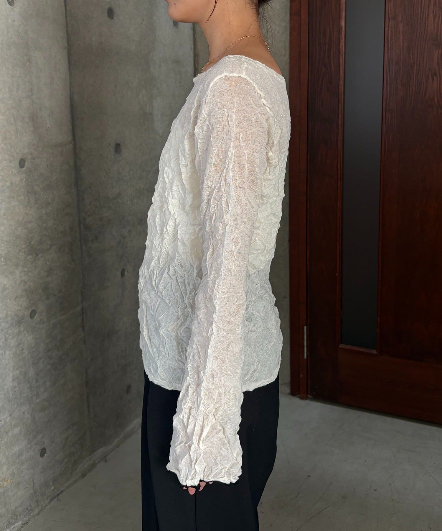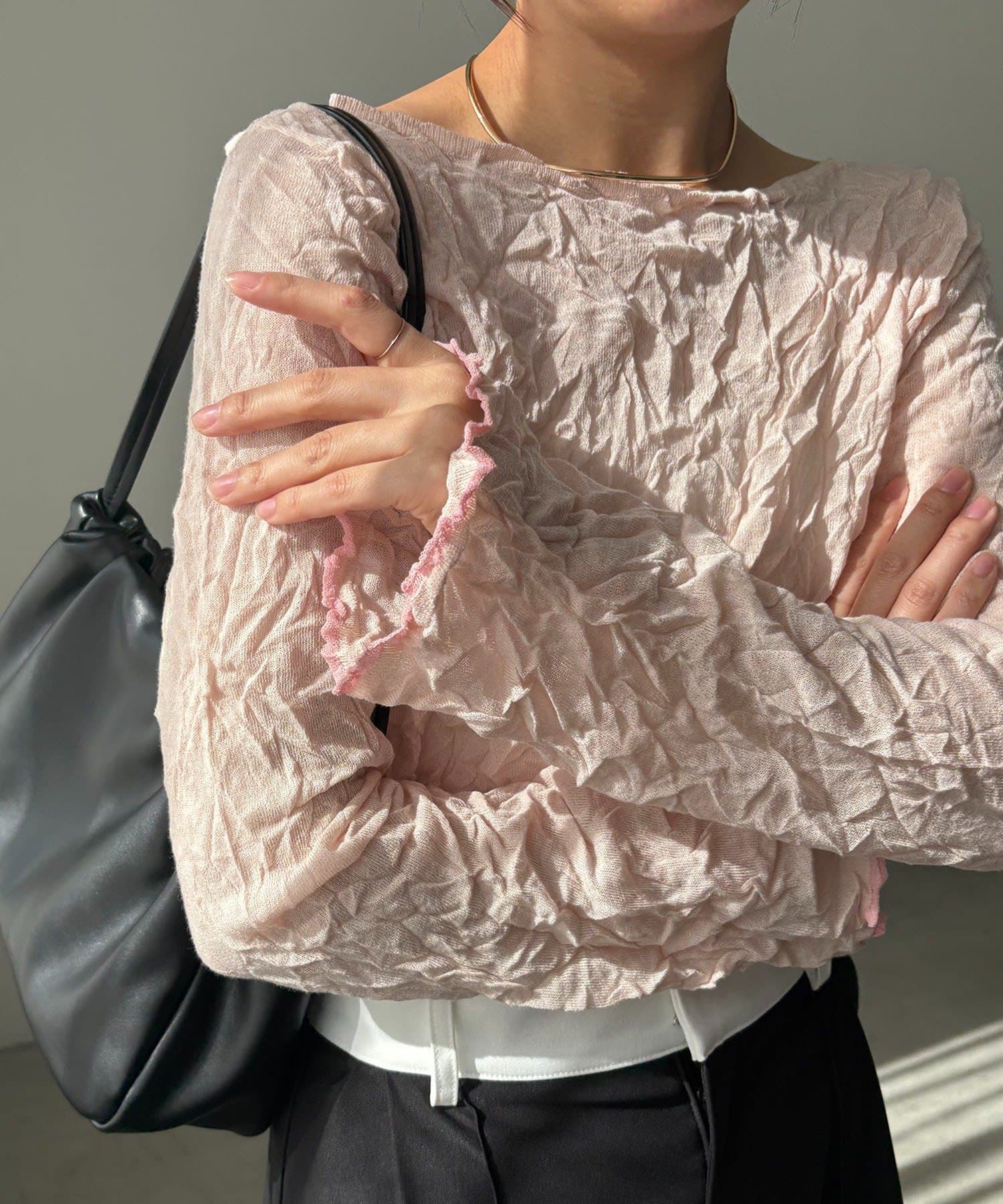 ハイゲージのニットにシワ加工を施した他にない1枚