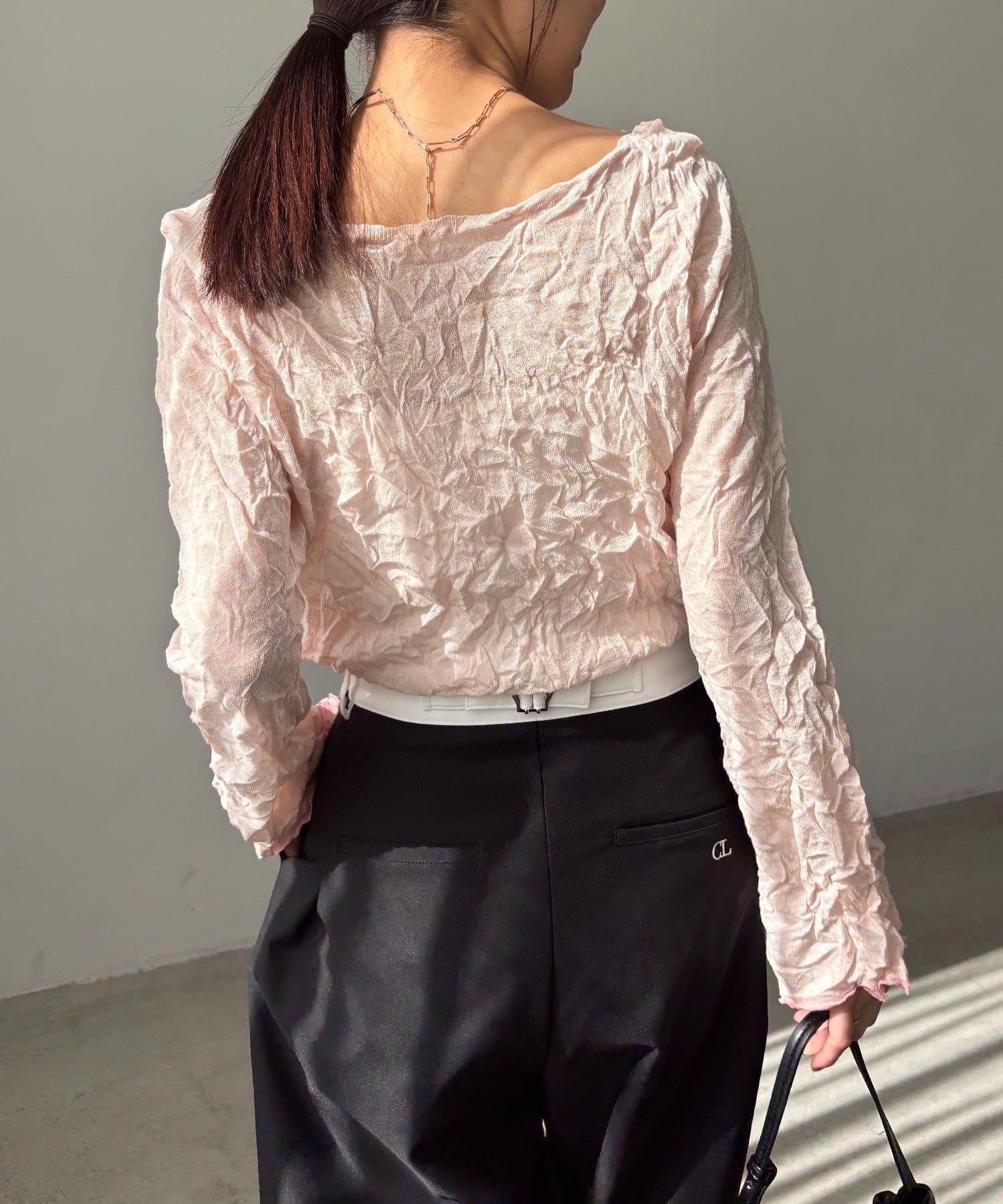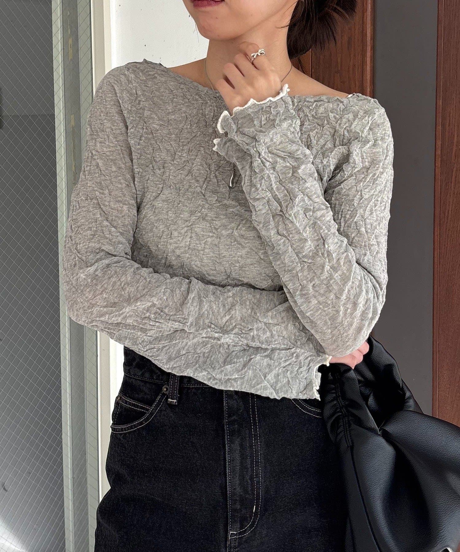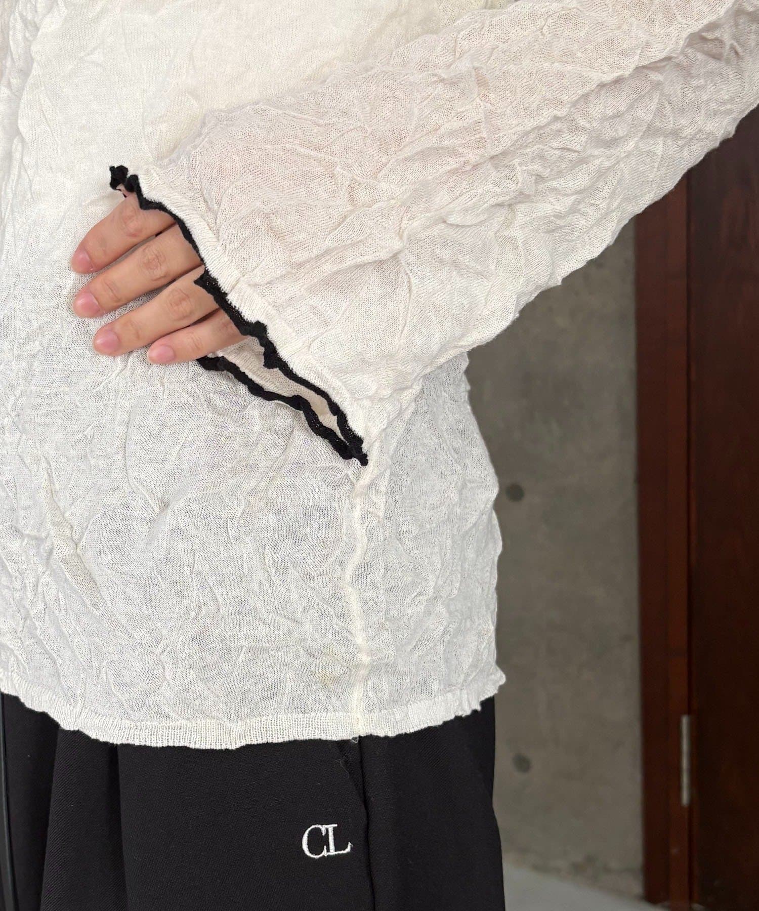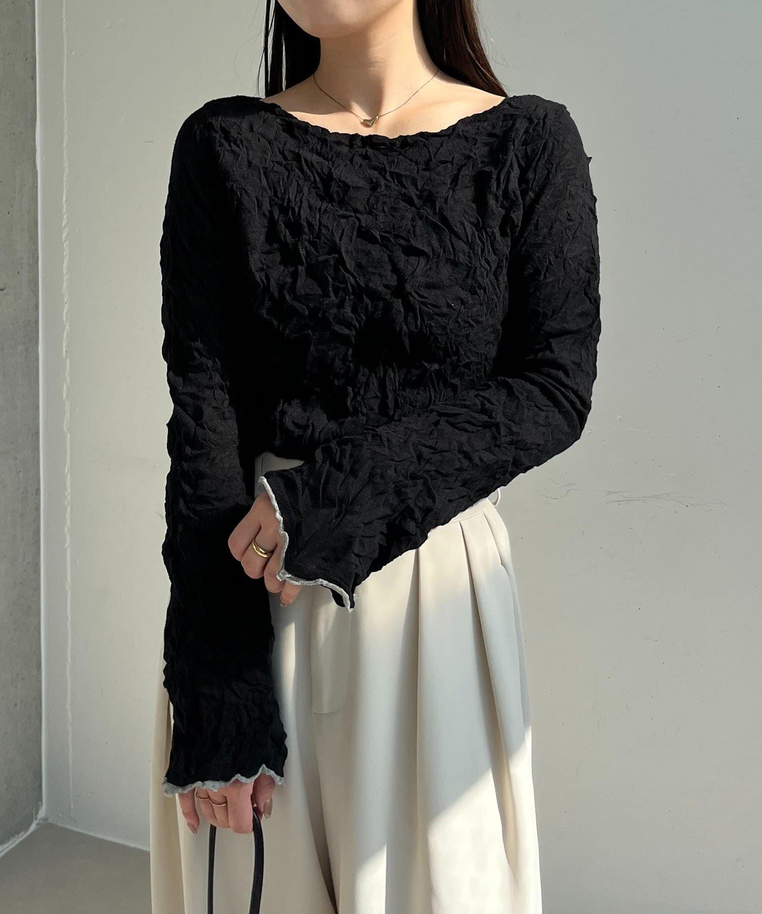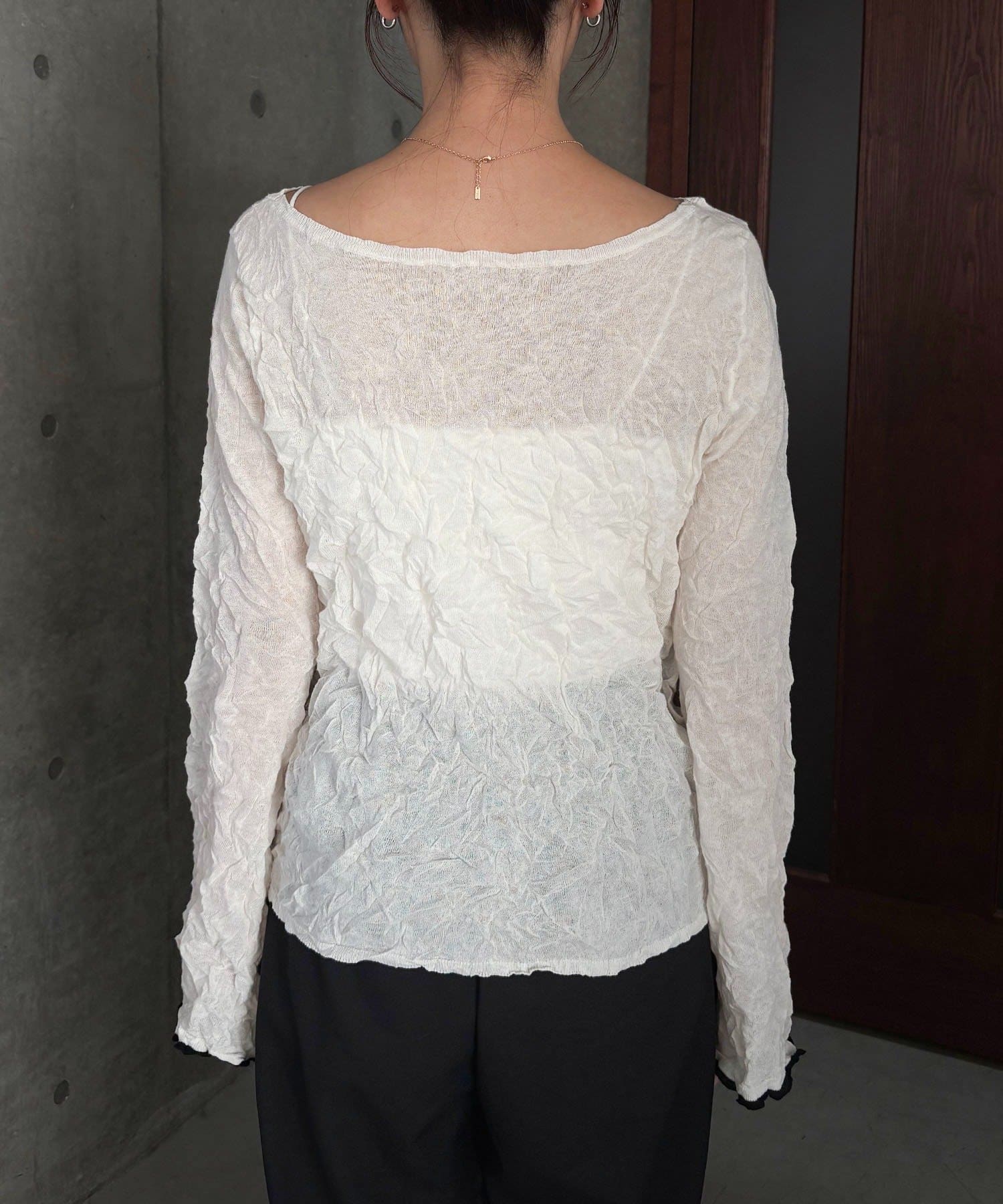 ハイゲージのニットにシワ加工を施した他にない1枚