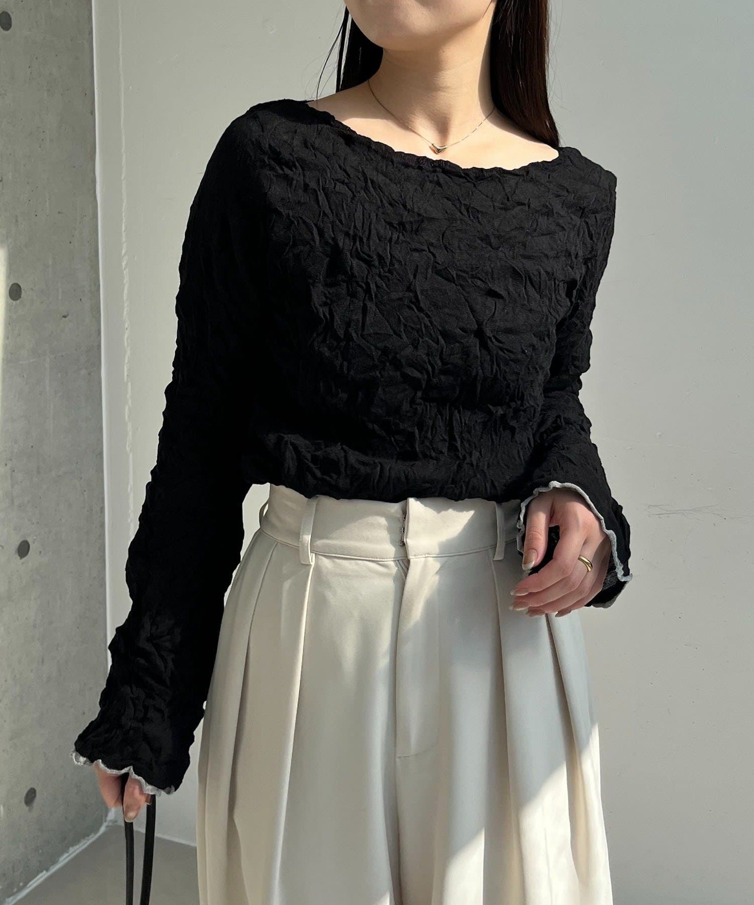 ※シワ加工は永久的なものではなく、洗濯や着用を繰り返すことでシワの表情が変化し、消失することがあります。