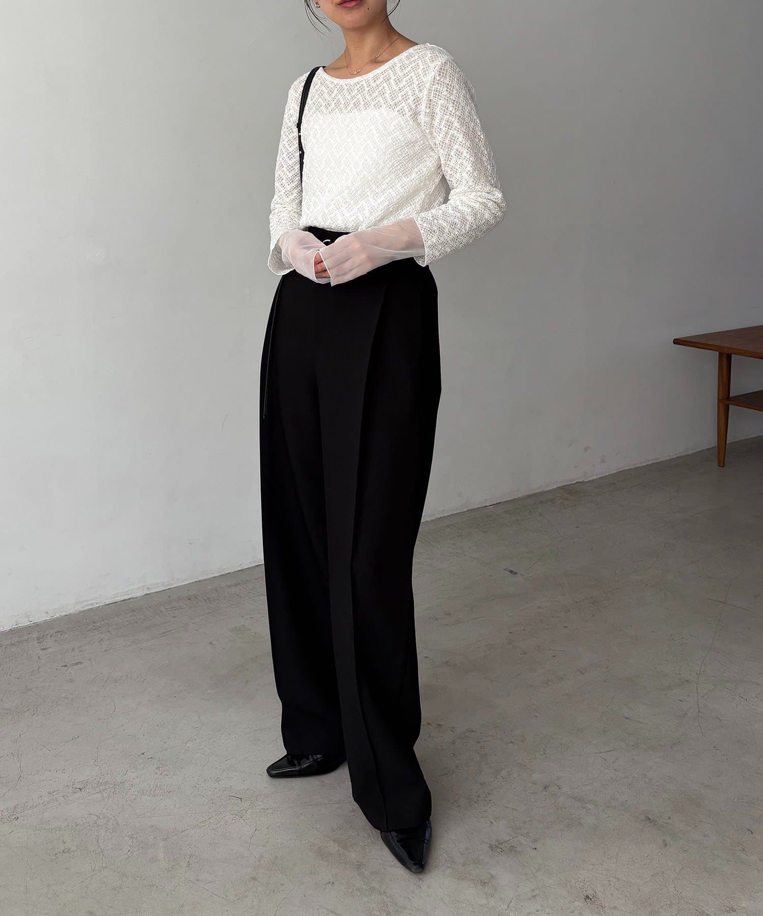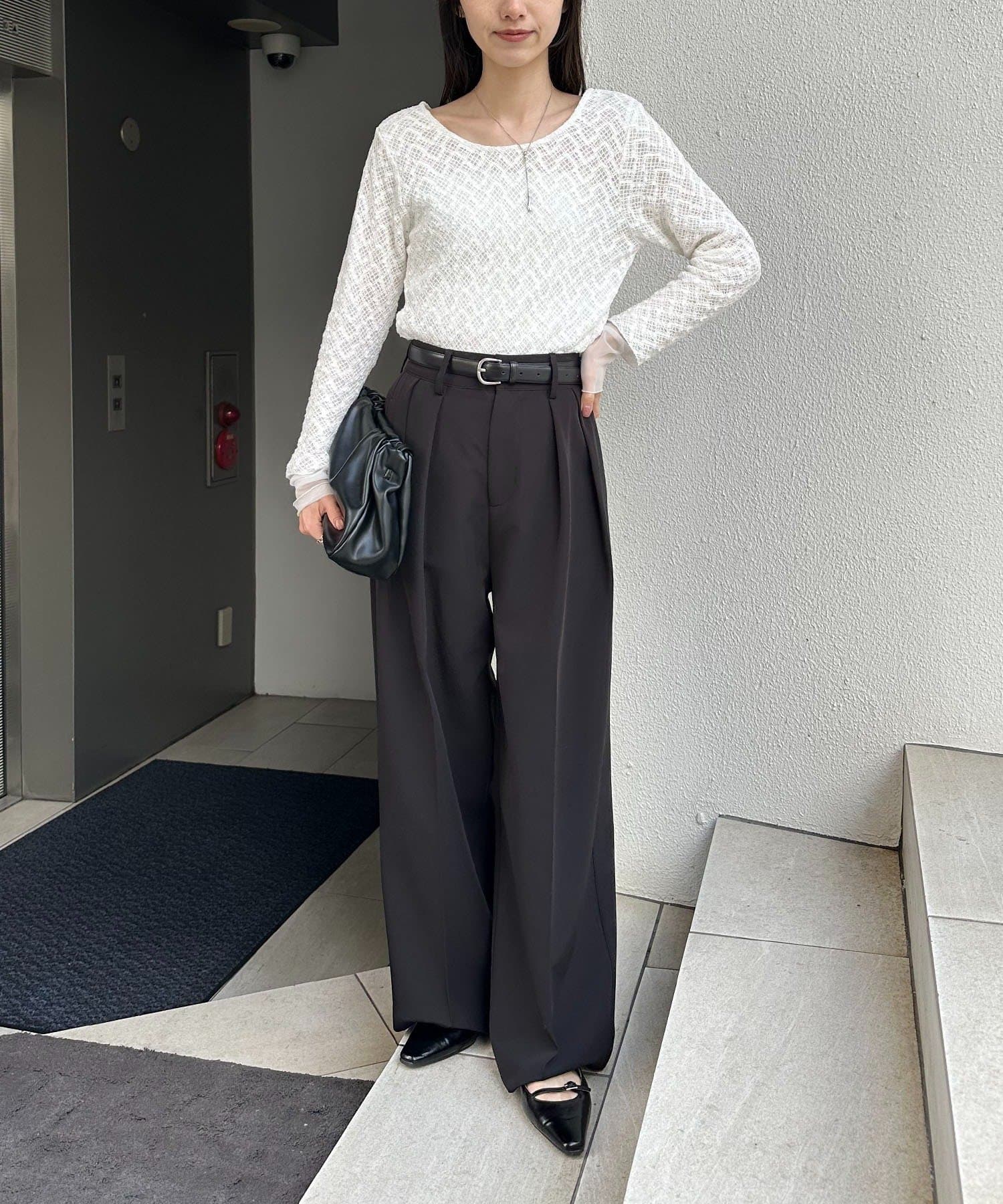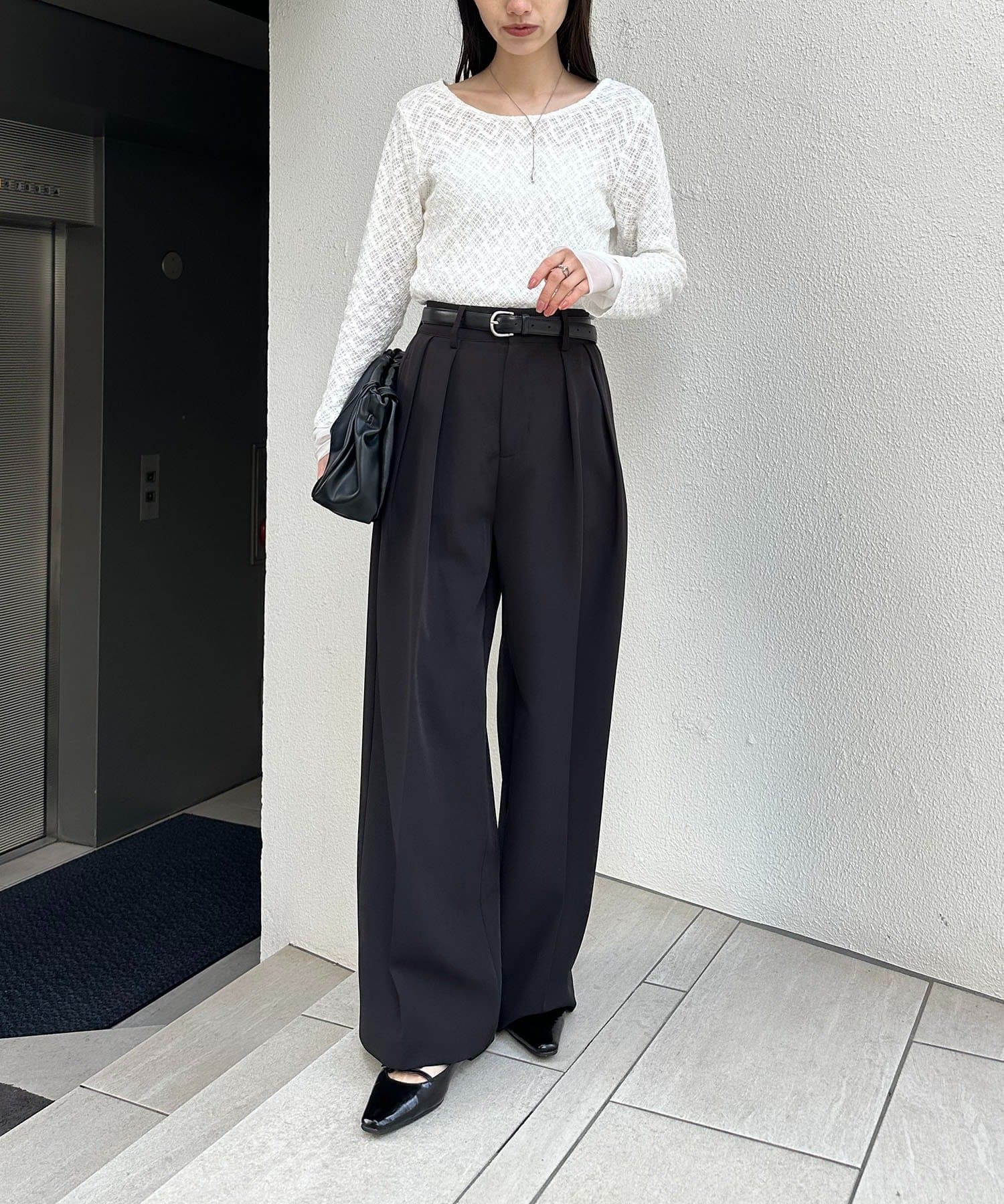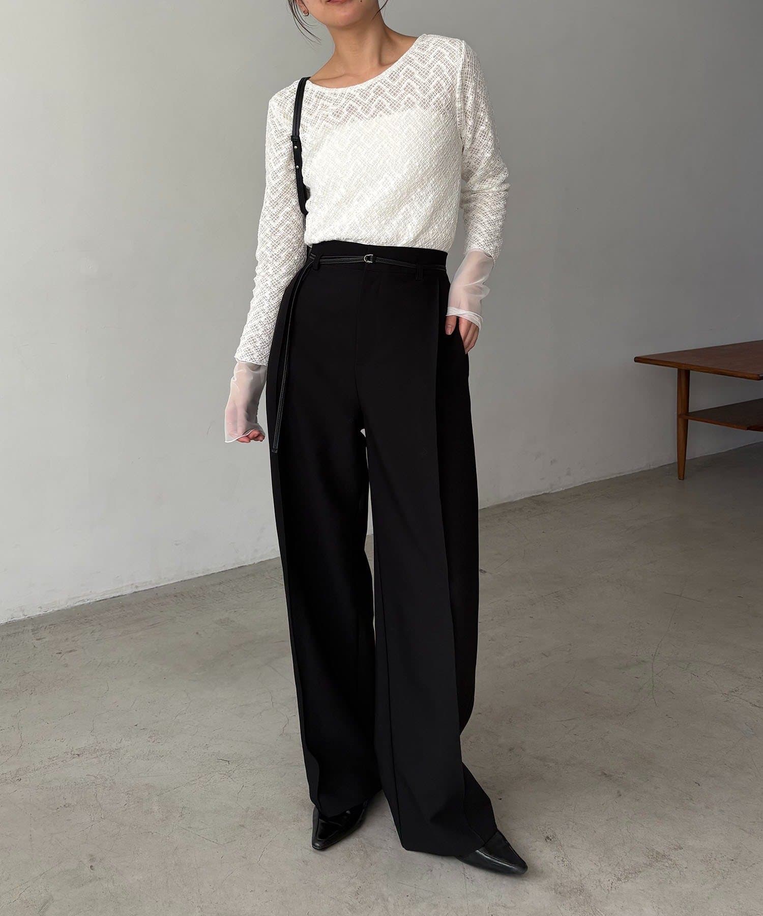 【ホワイト着用アイテム】カーブタックベルト付パンツ