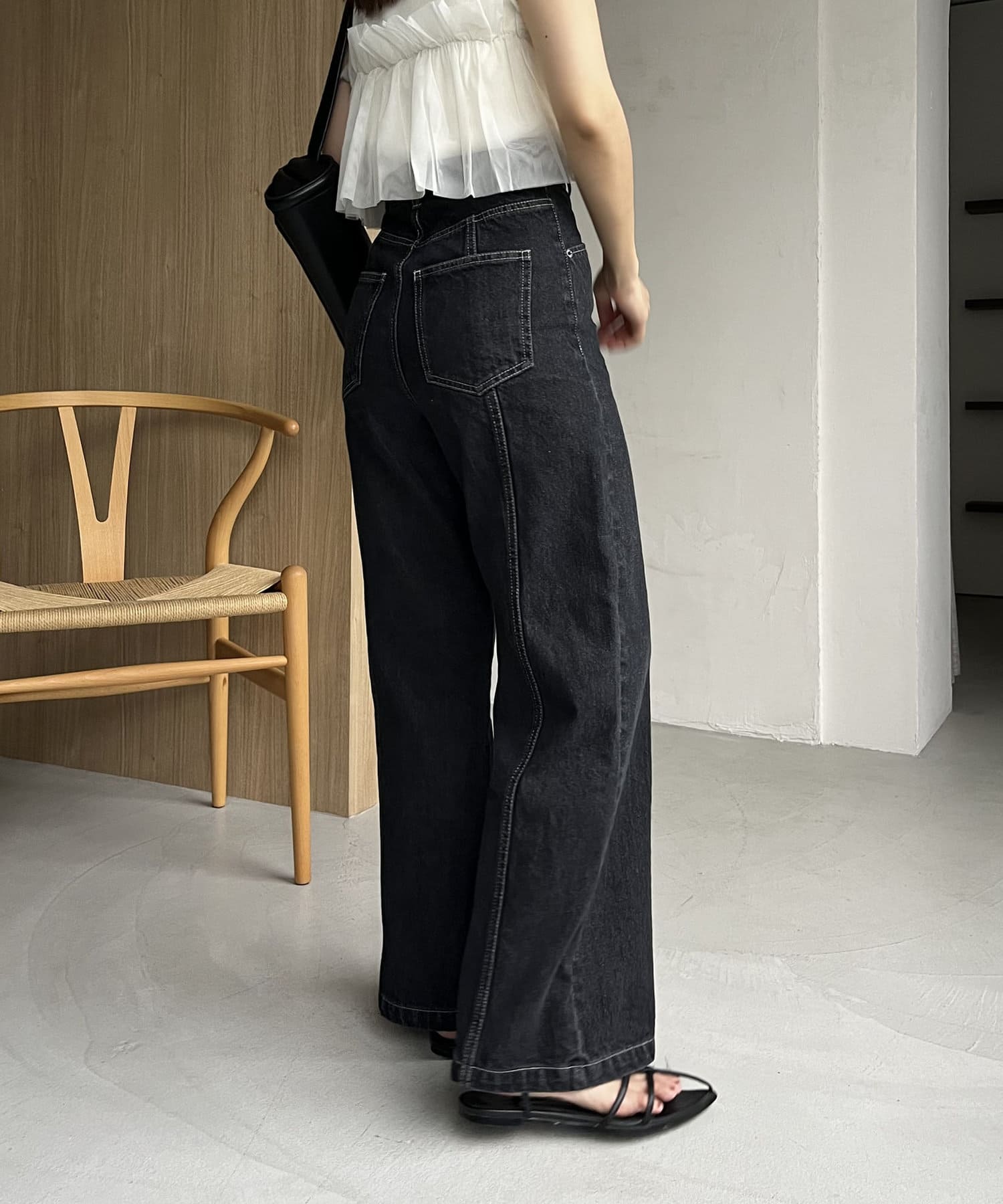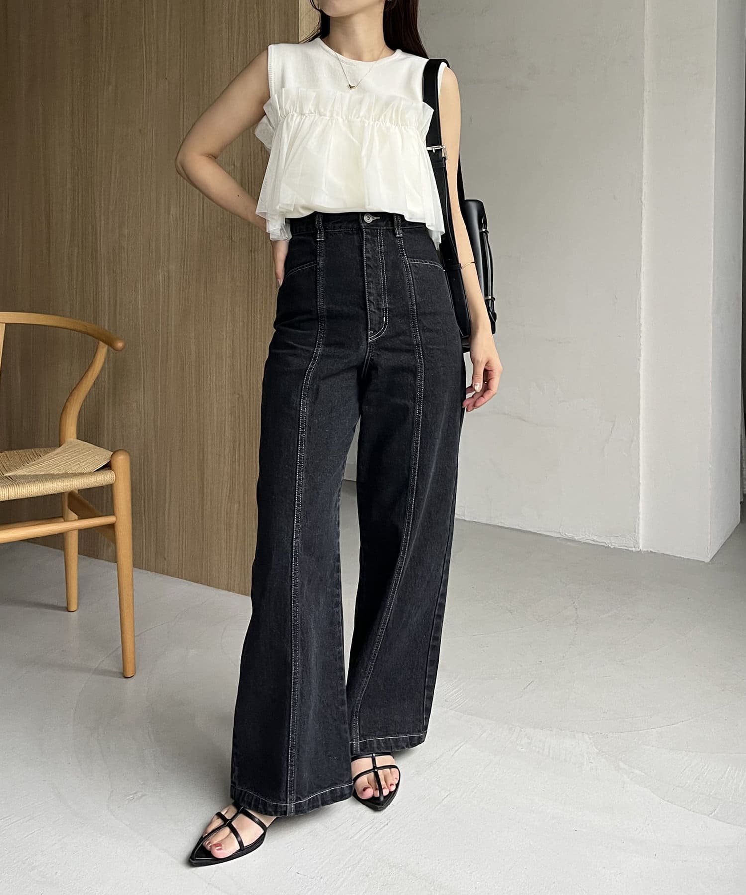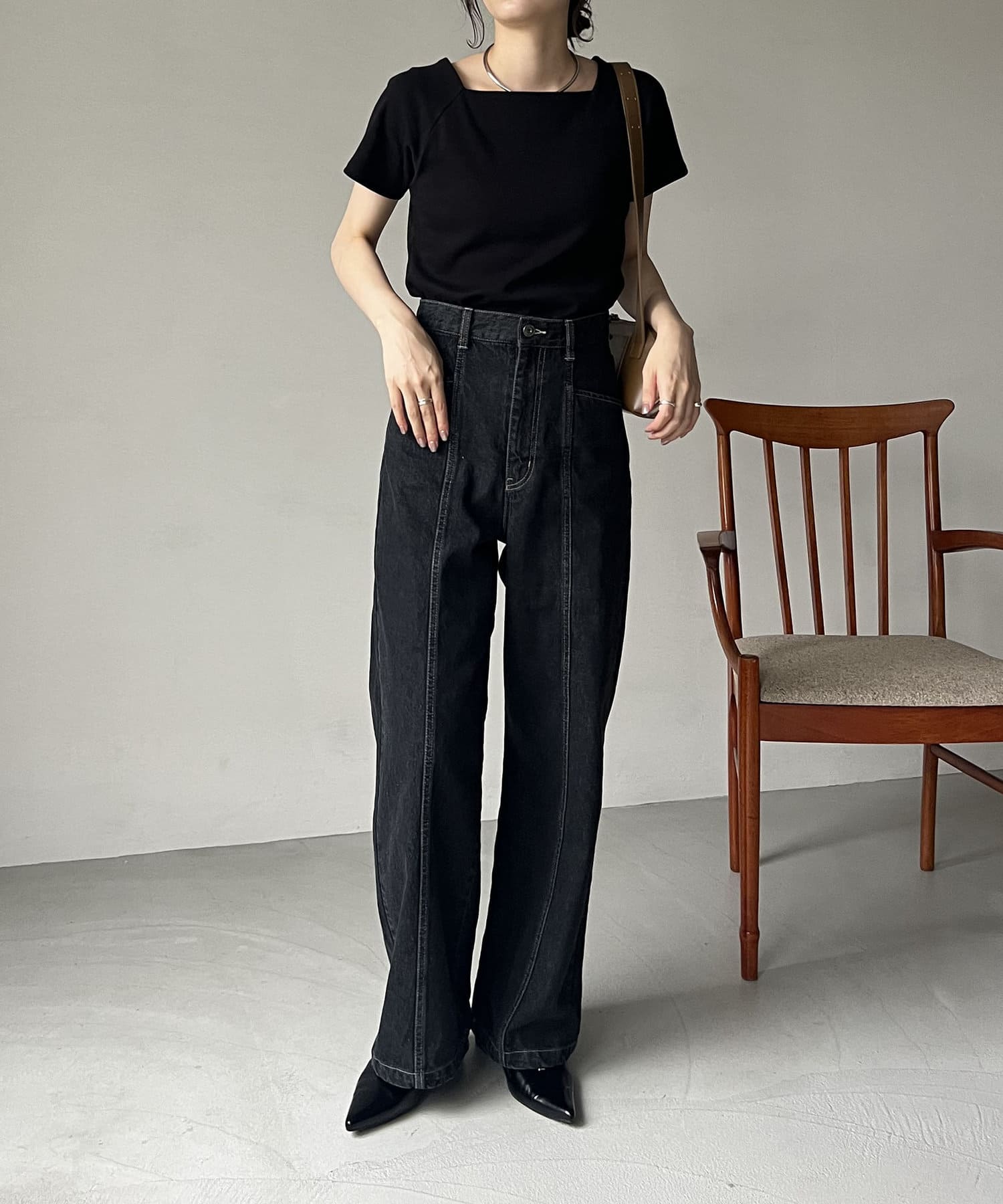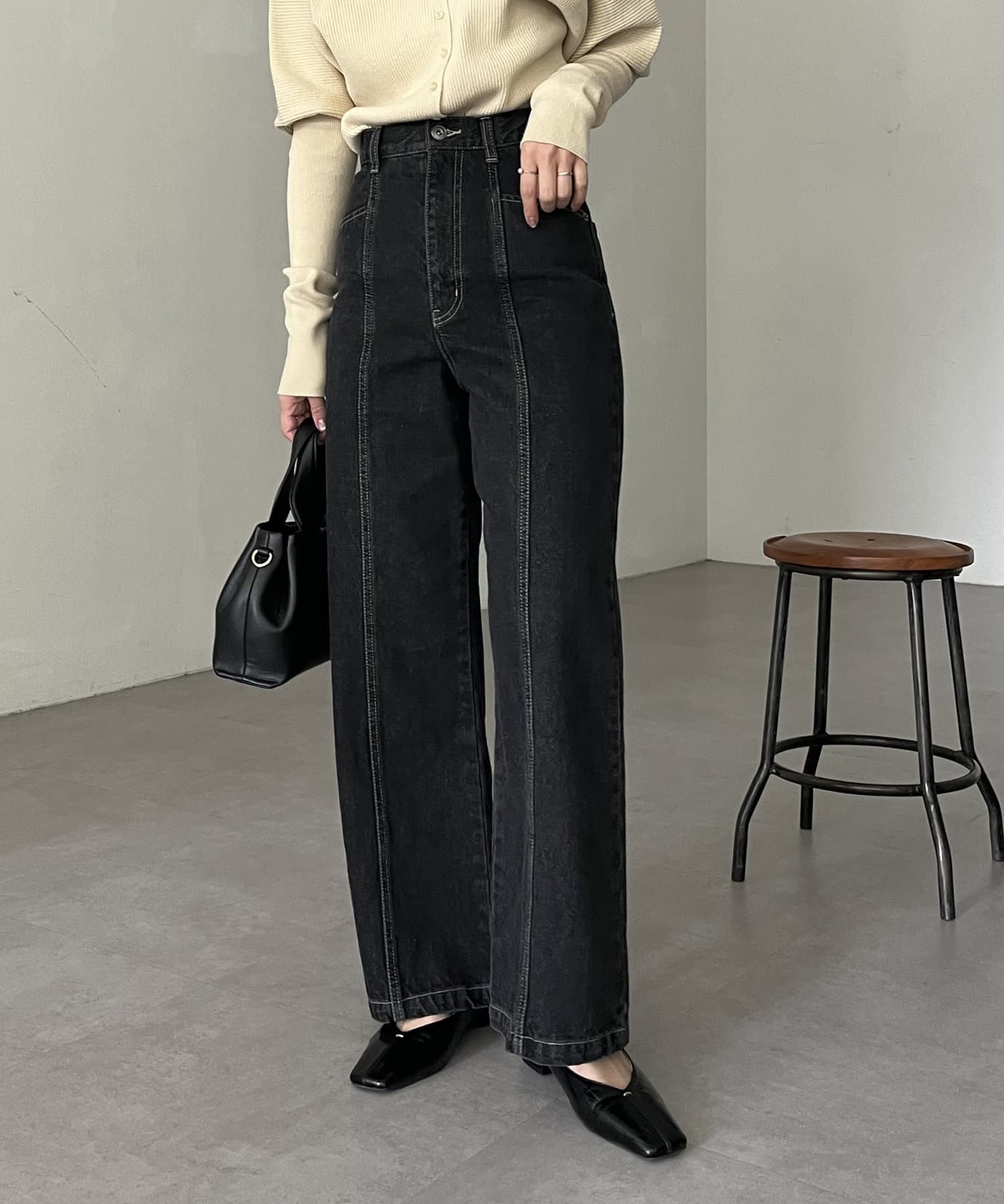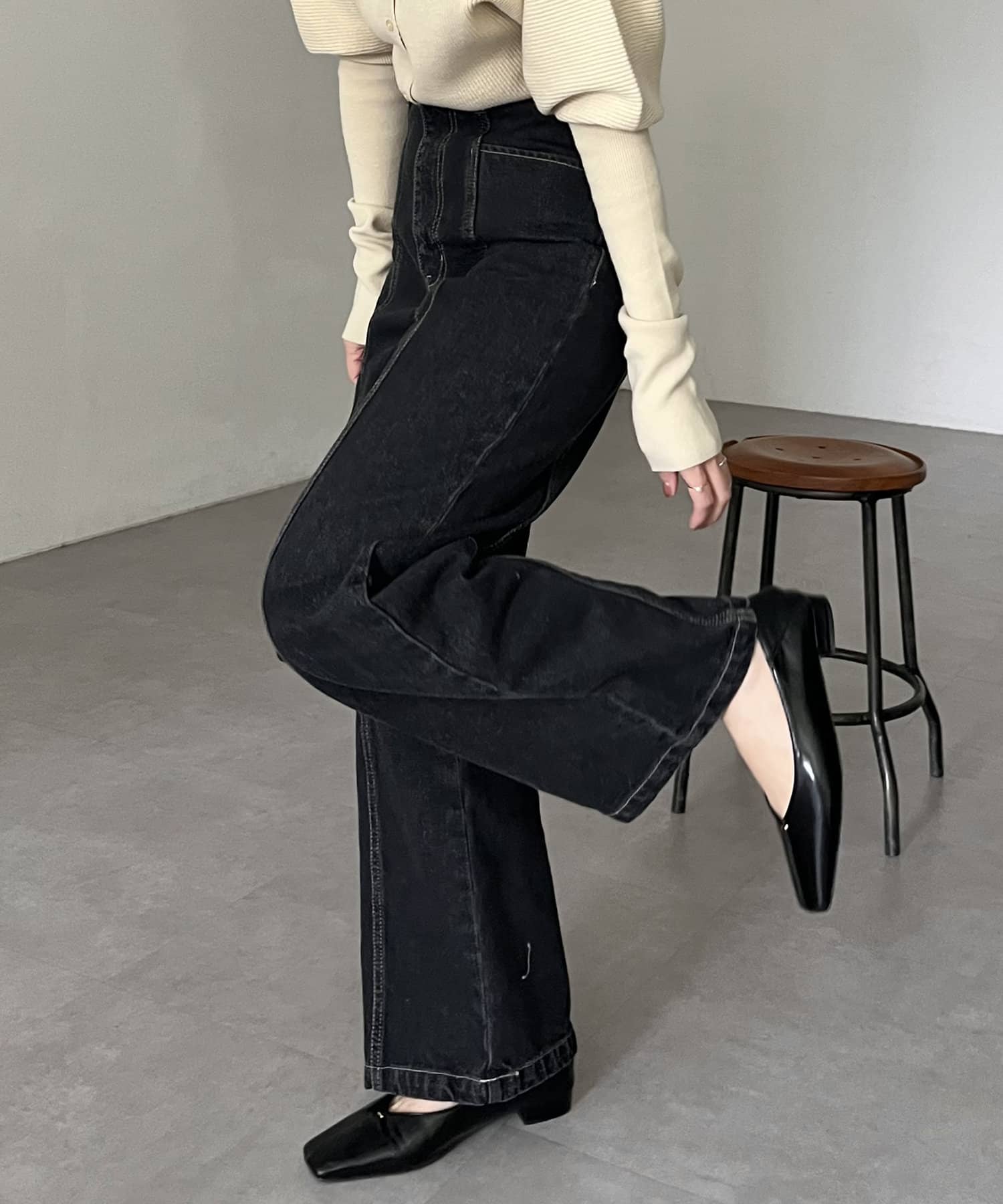 購入場所:パルクローゼット骨格ウェーブのためフレアタイプになってないカジュアルな見た目のデニムは苦手でしたが、こちらのデニムはハイウエストとセンターラインでとってもスタイル良く見せてくれます!