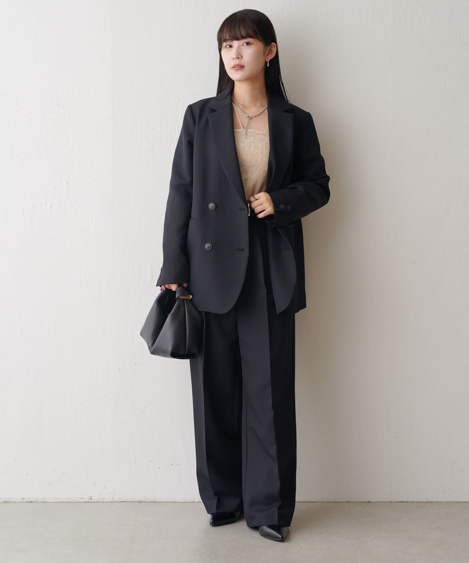 【セットアップ対応】ストレッチツイルワイドパンツ