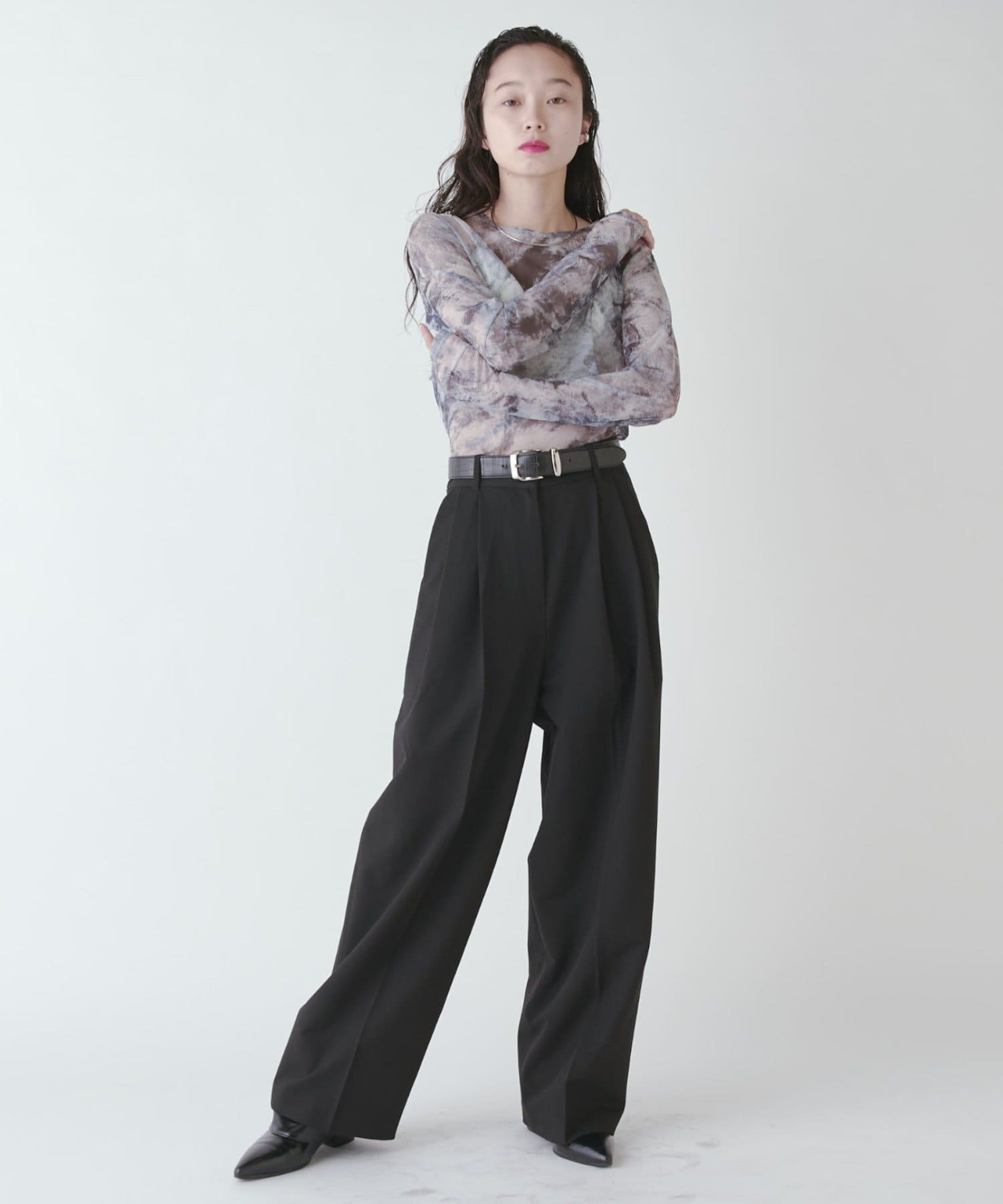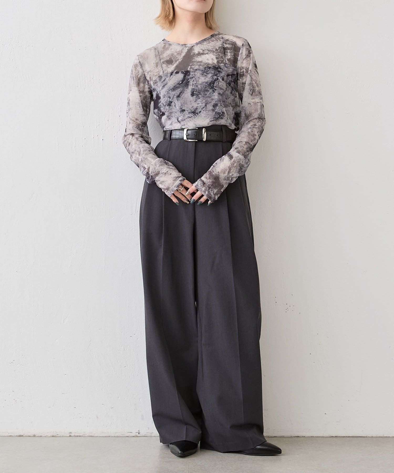 ・シアートップスを合わせれば、トレンドライクなこなれ感のある着こなしも◎