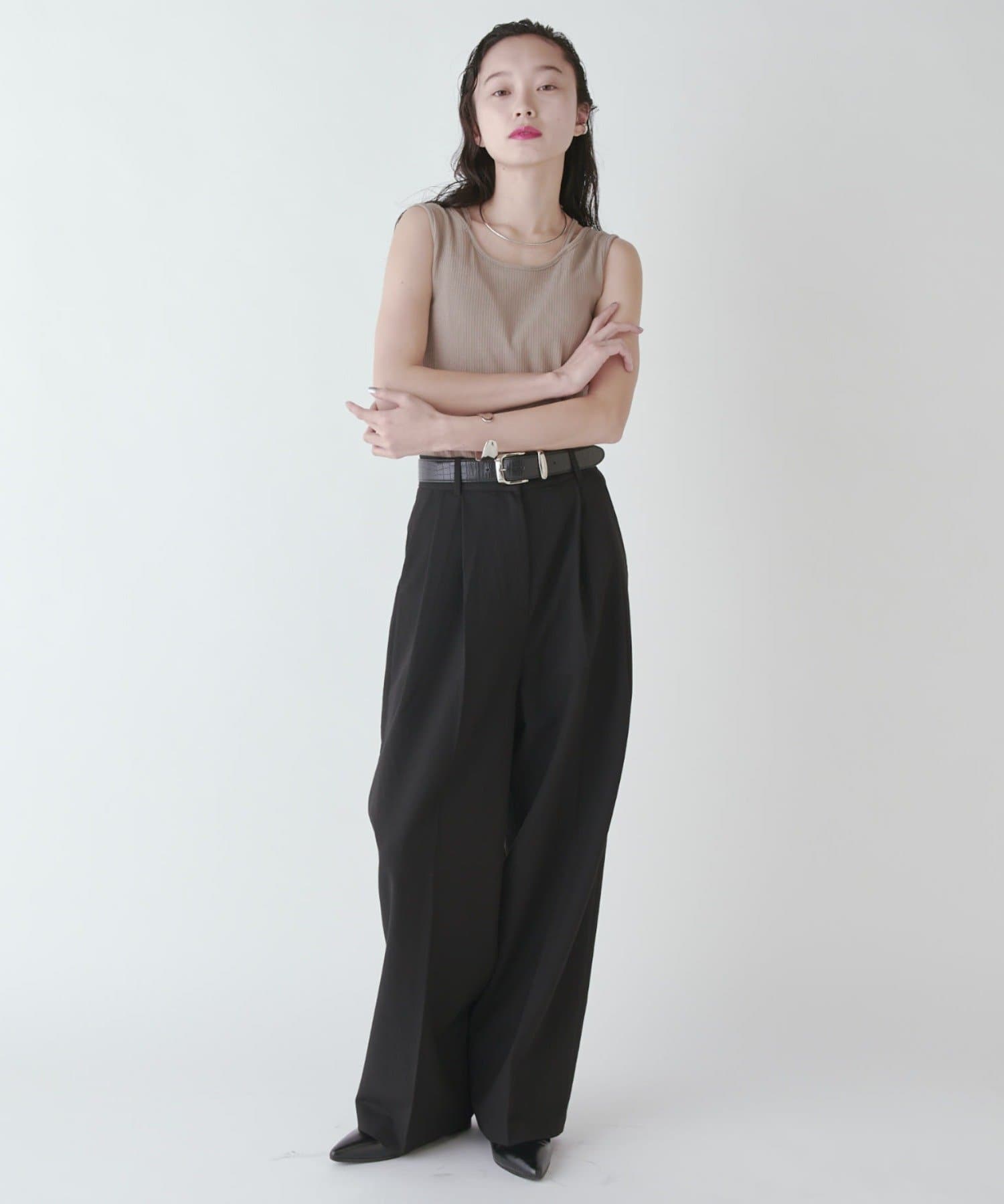 ・ウエストにはベルトループが付いているのでお持ちのベルトで様々なスタイリングをお楽しみいただけます。