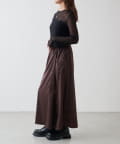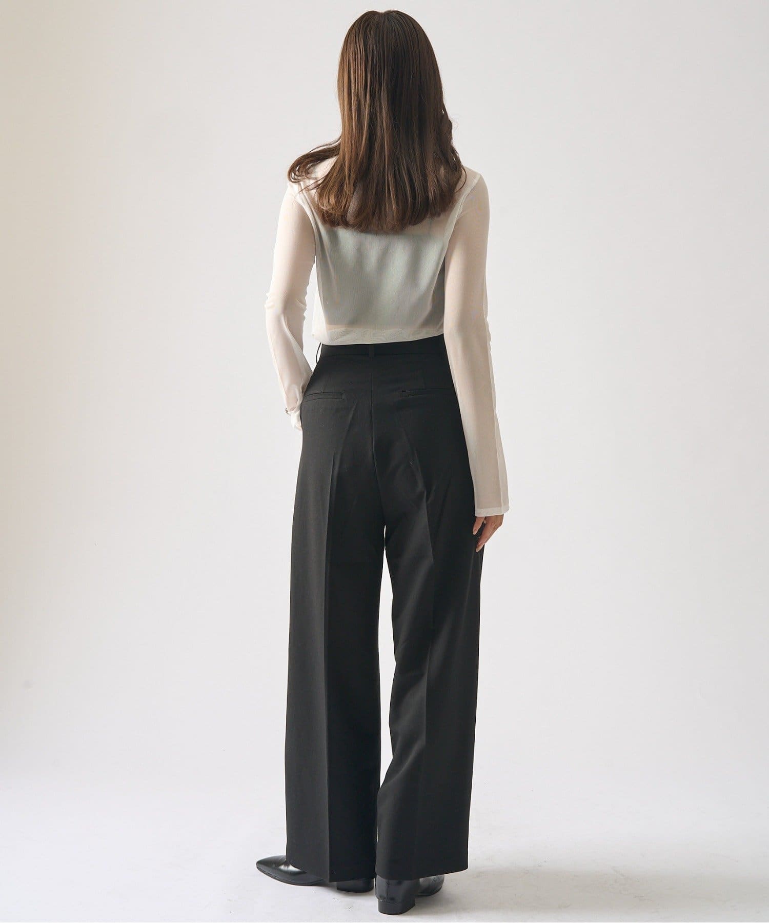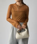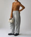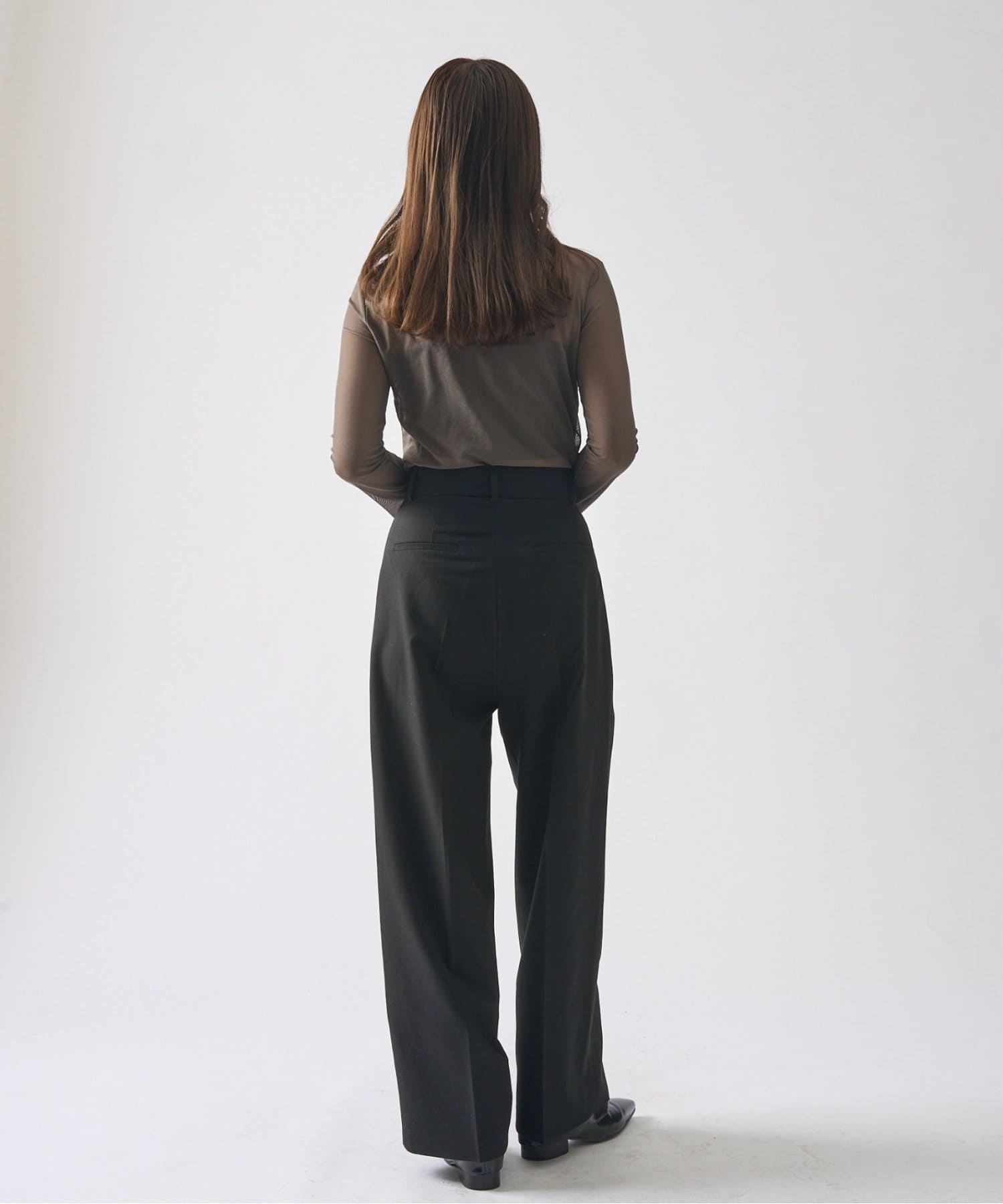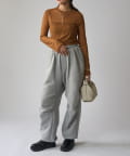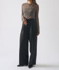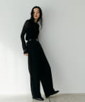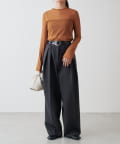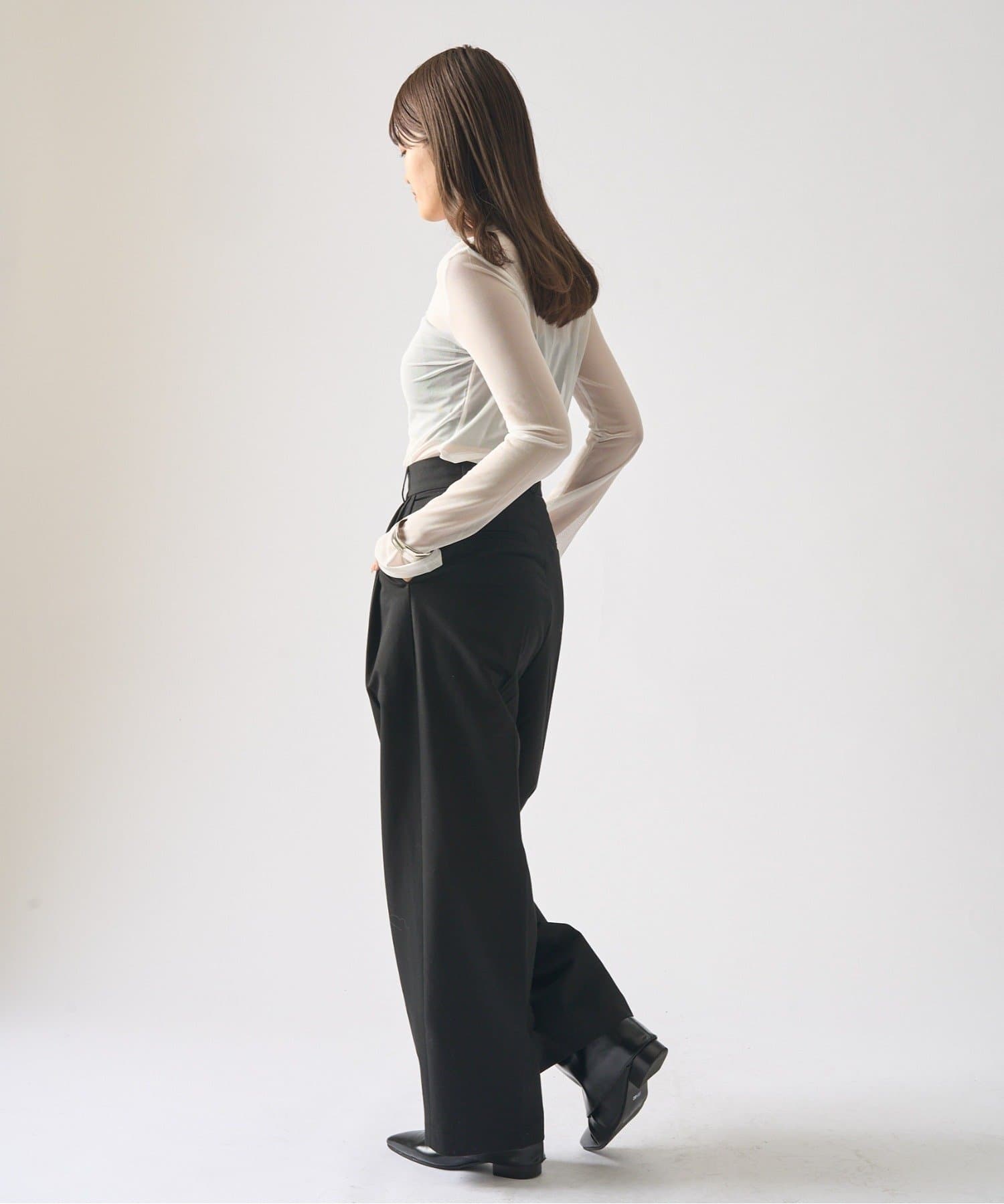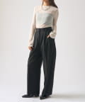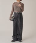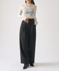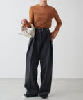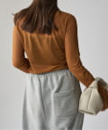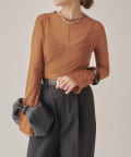 シンプルになりすぎないよう前見頃に切り替えを入れアクセントをプラス。やや詰まり気味のネックと相まってモードっぽさを演出しています。