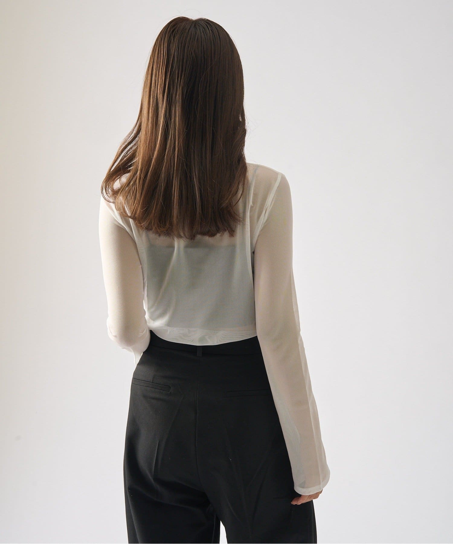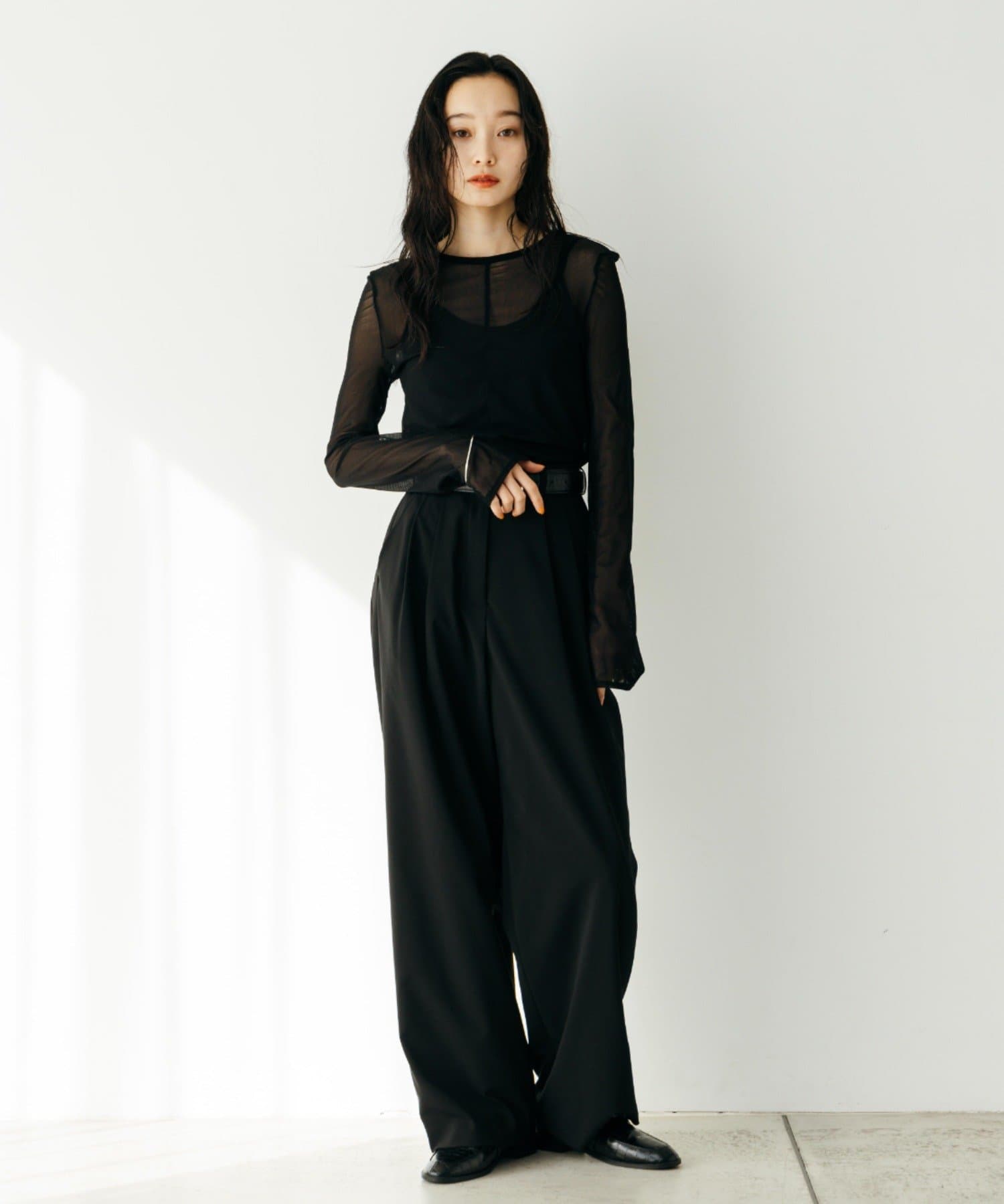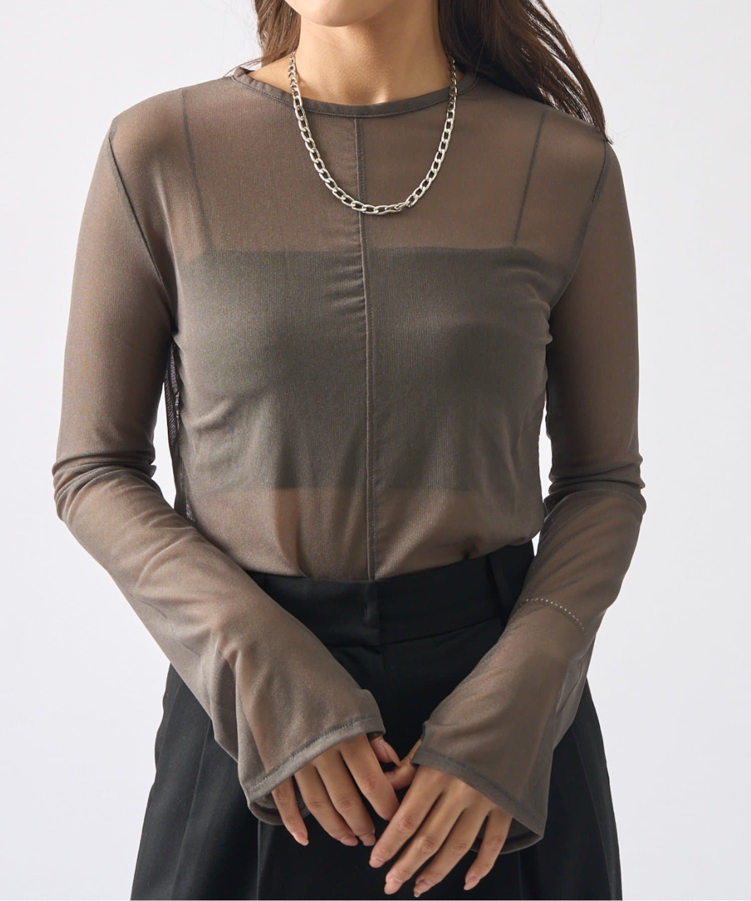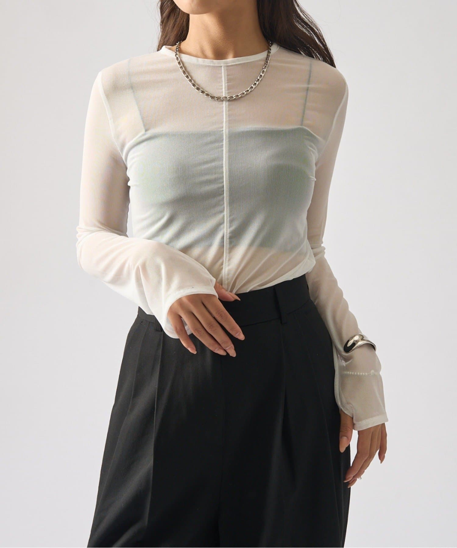 シアーの透け感が、今年らしい着こなしに欠かせないロンT。