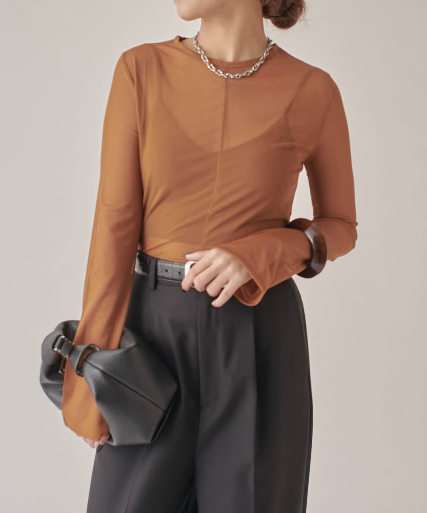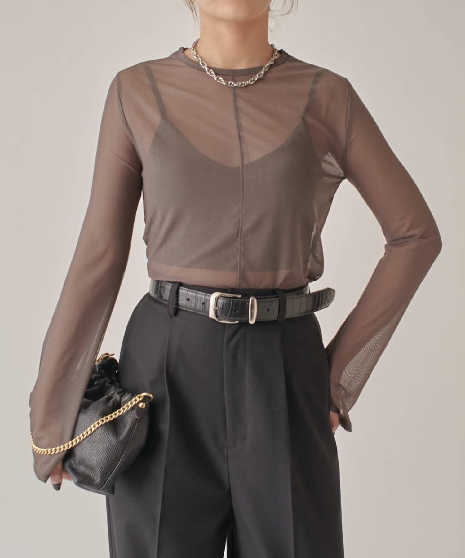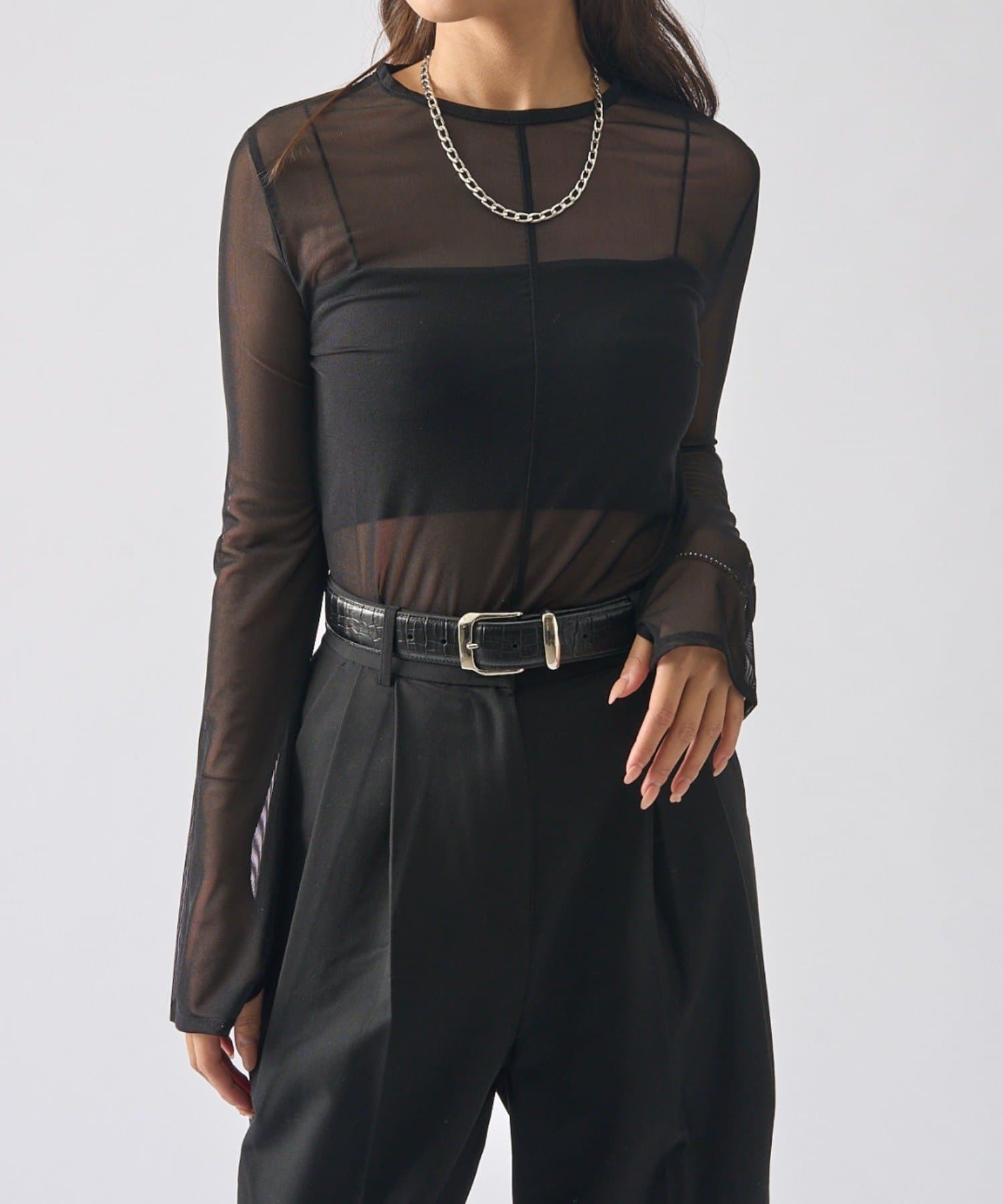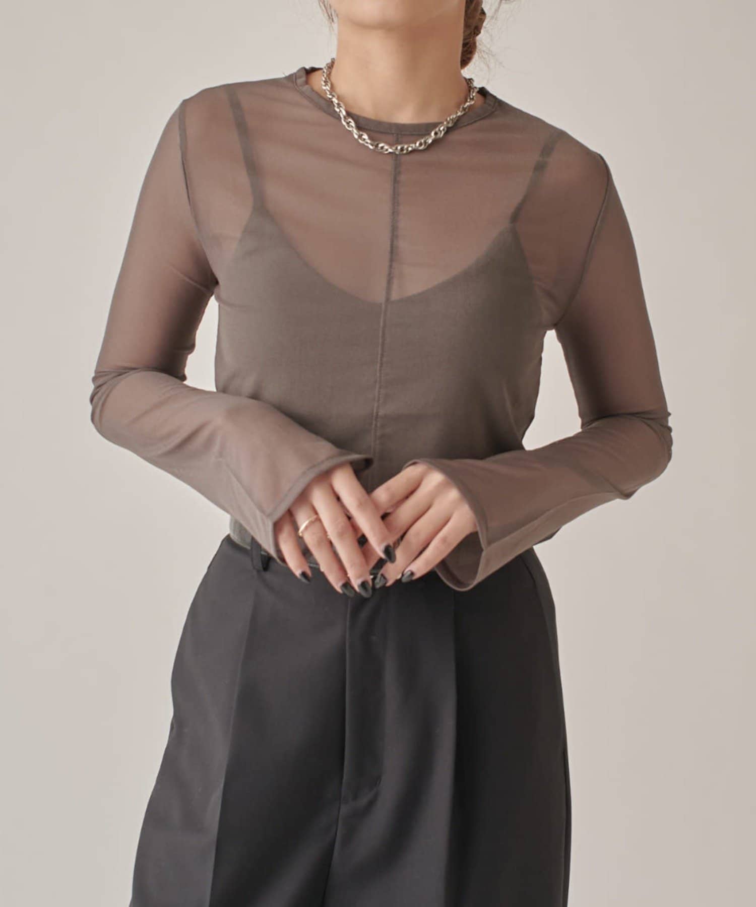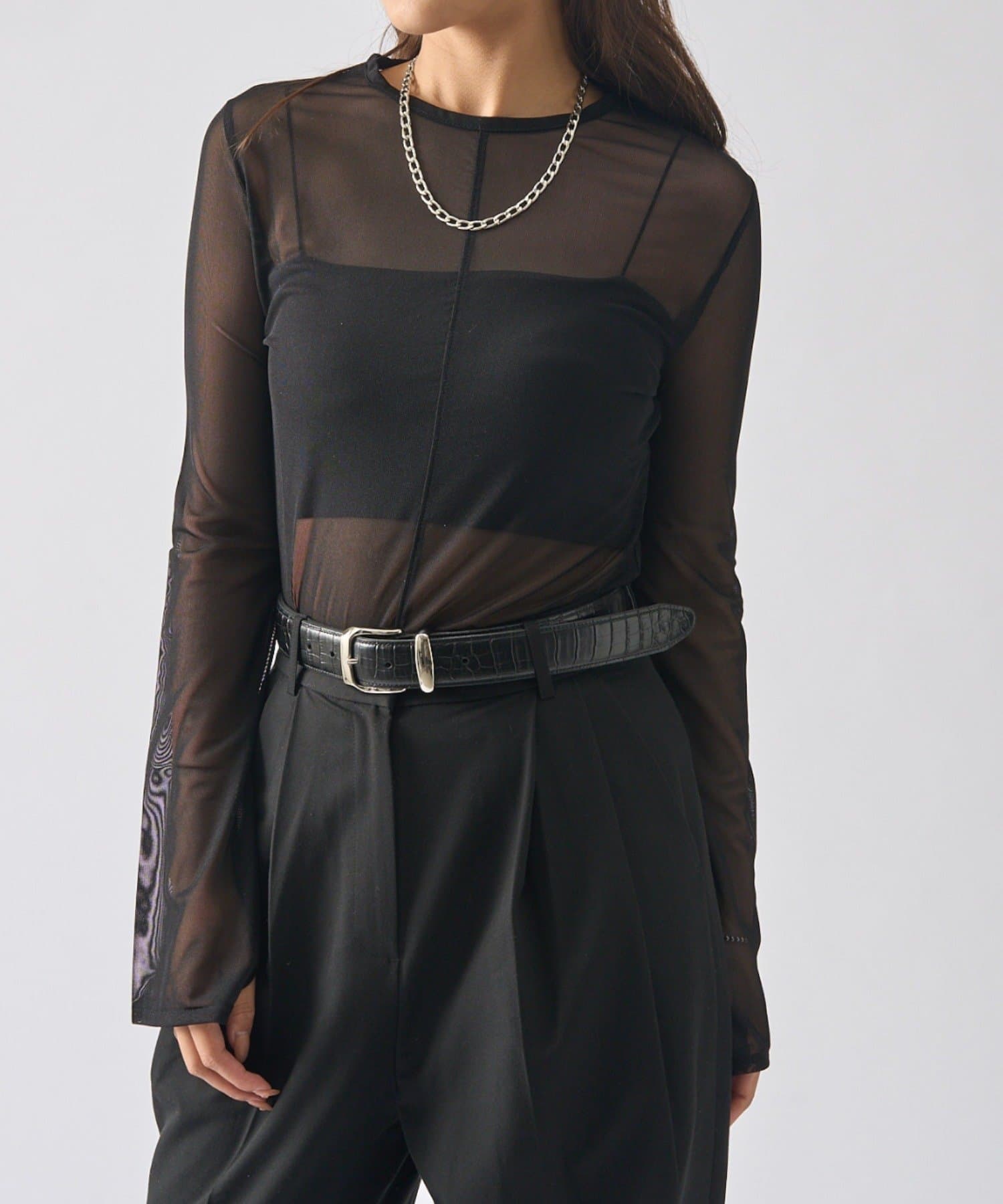 シアーの透け感が、今年らしい着こなしに欠かせないロンT。