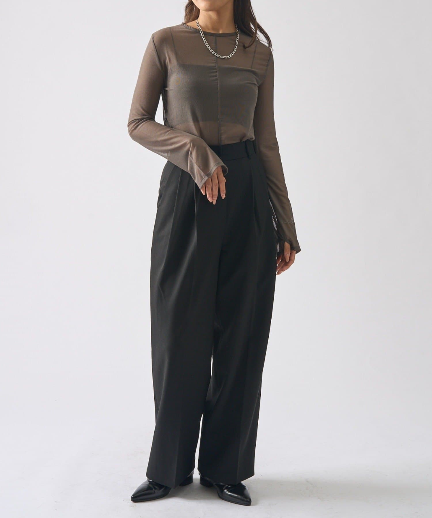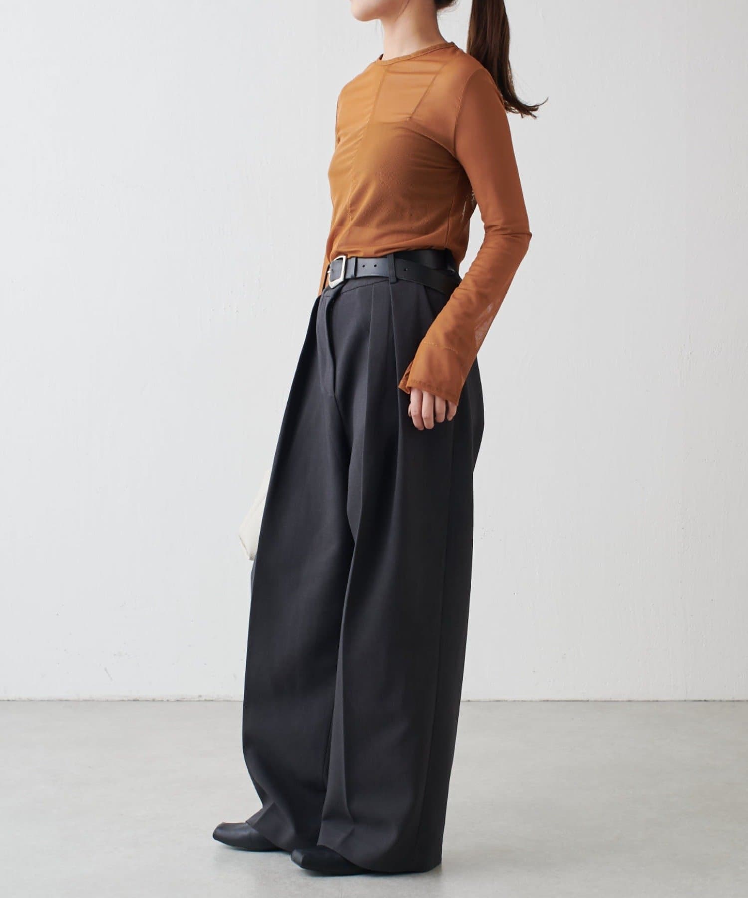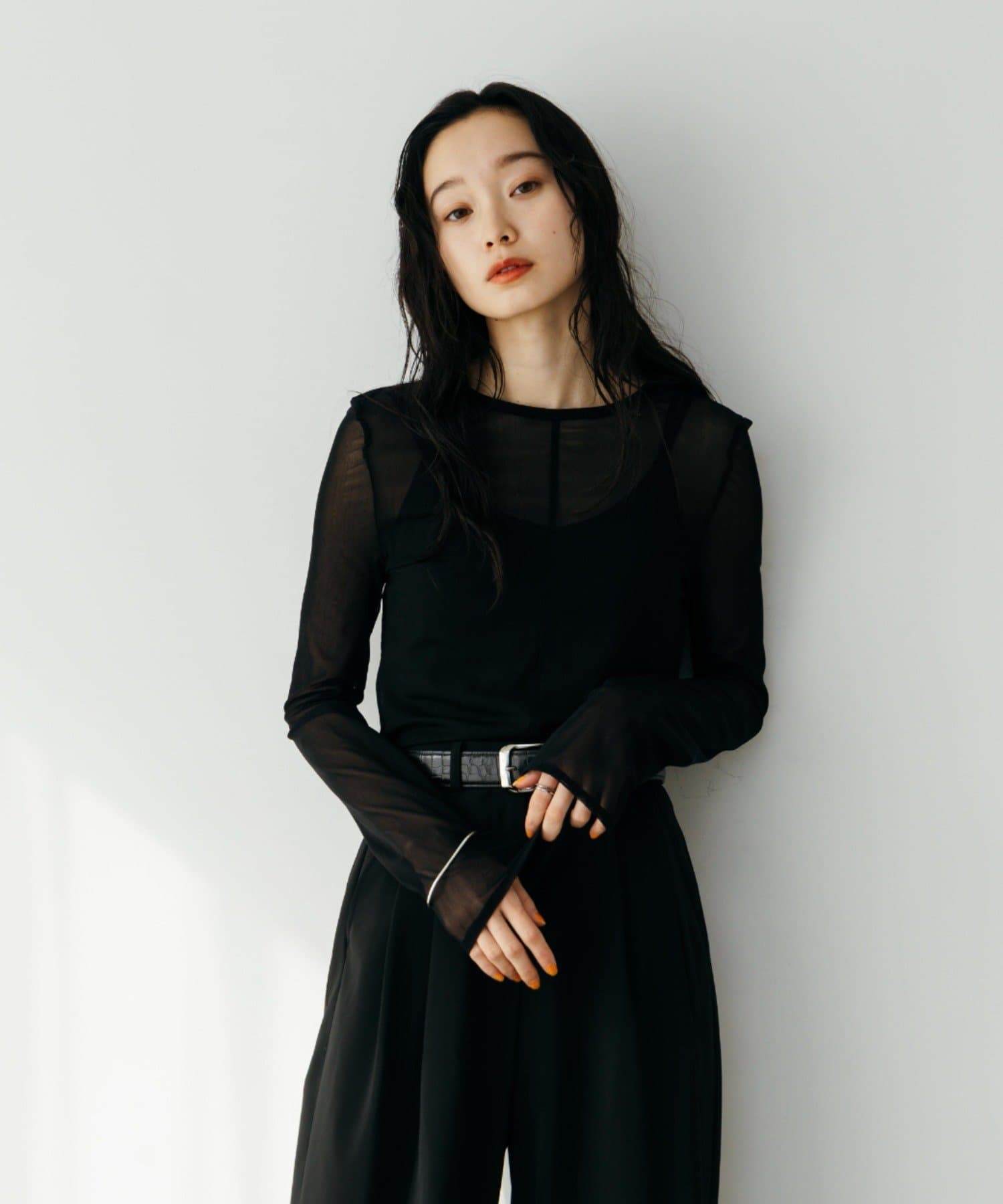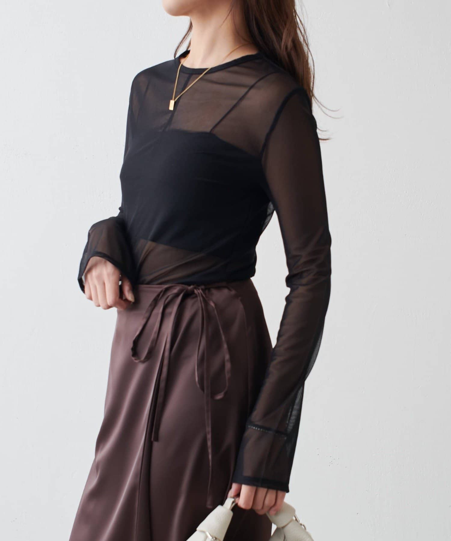 シアーの透け感が、今年らしい着こなしに欠かせないロンT。