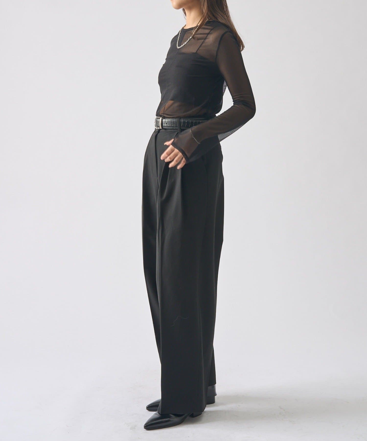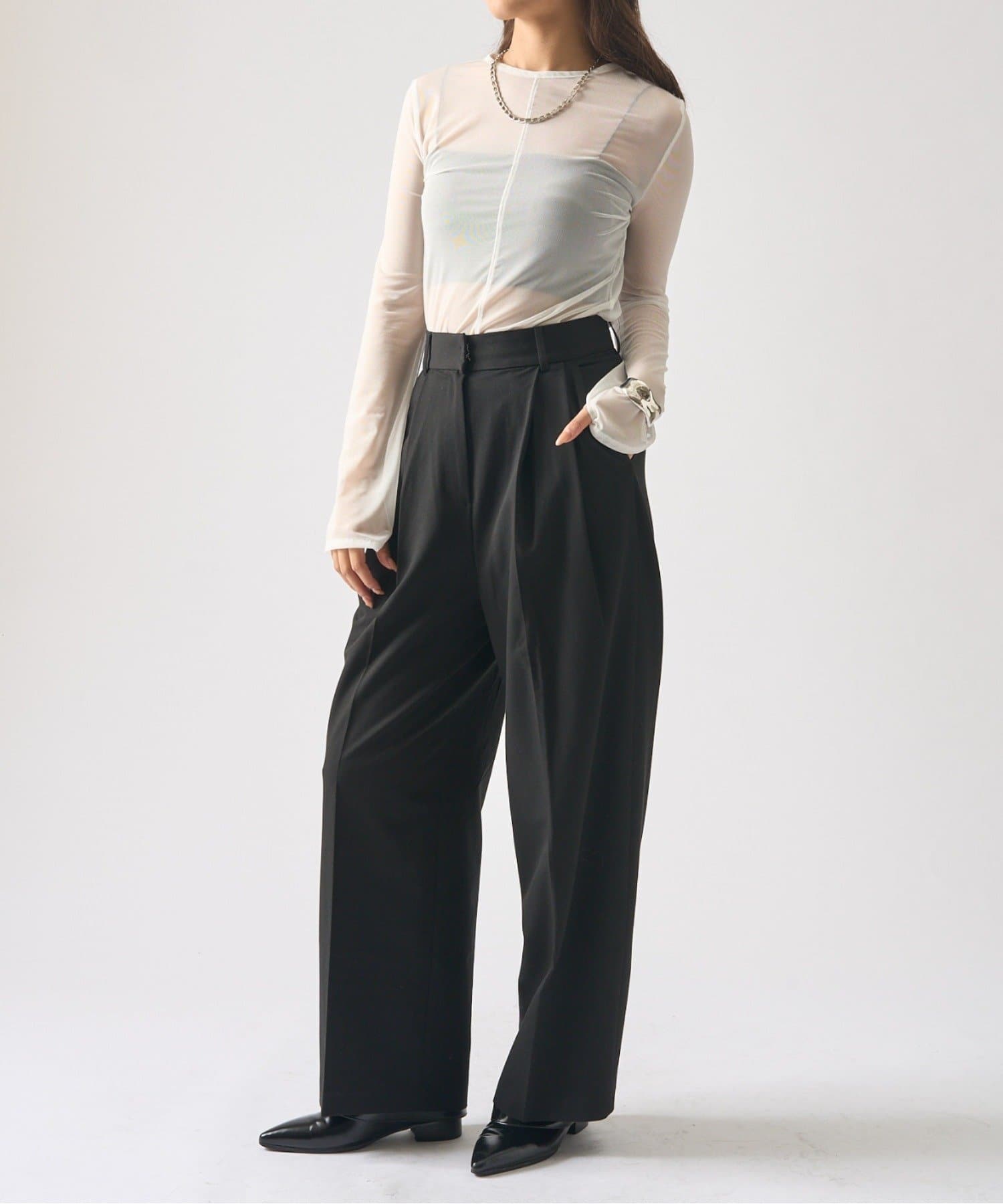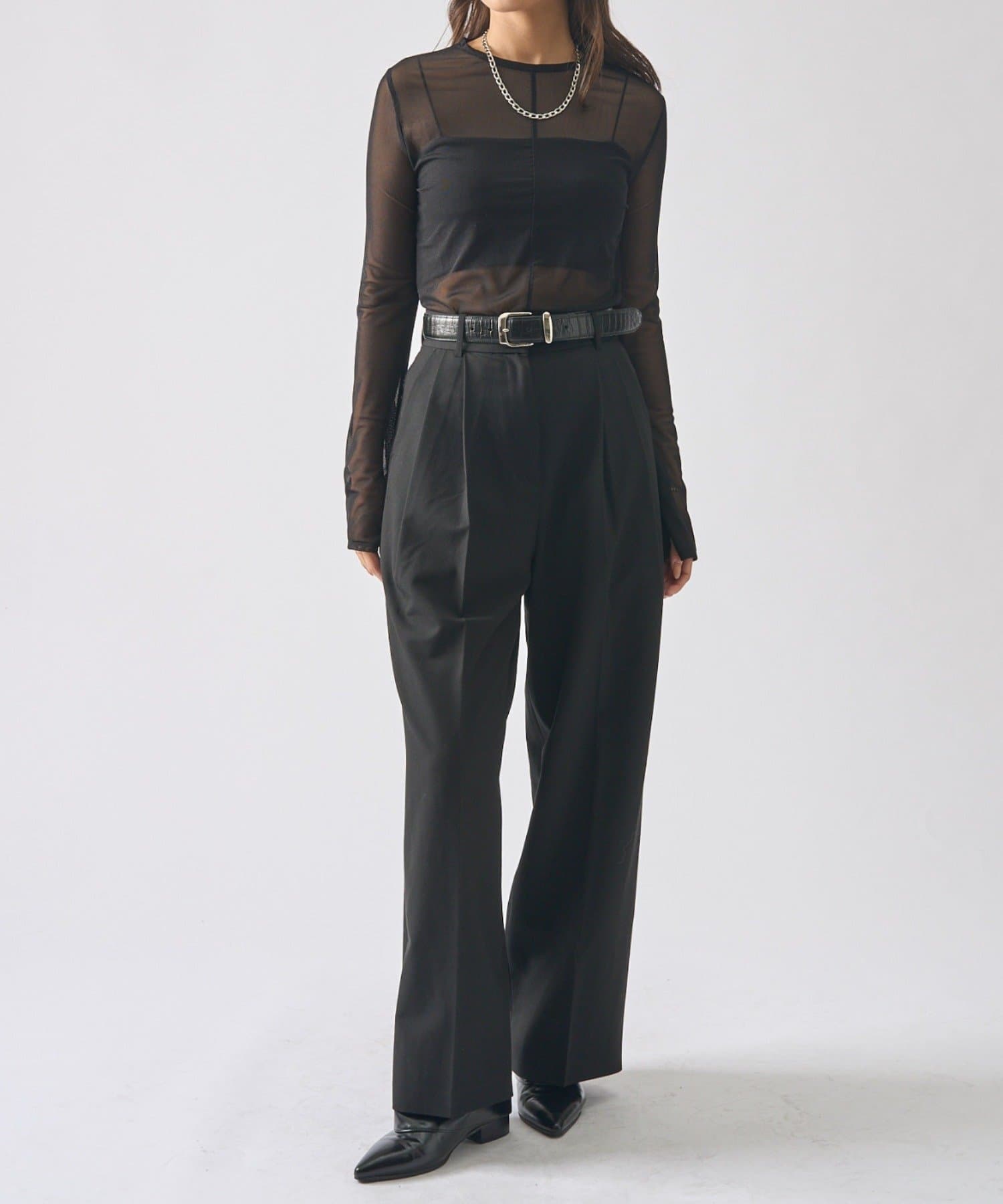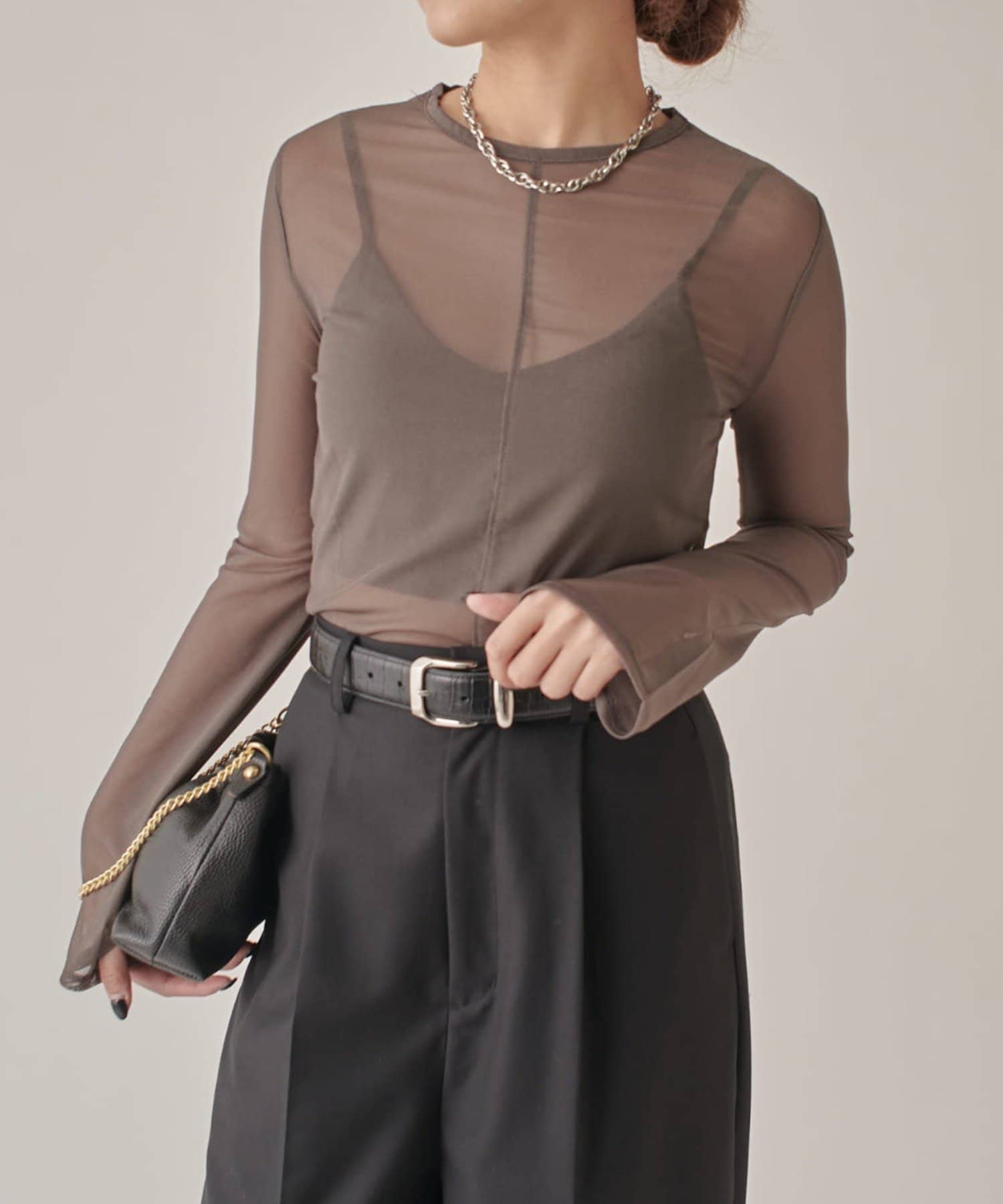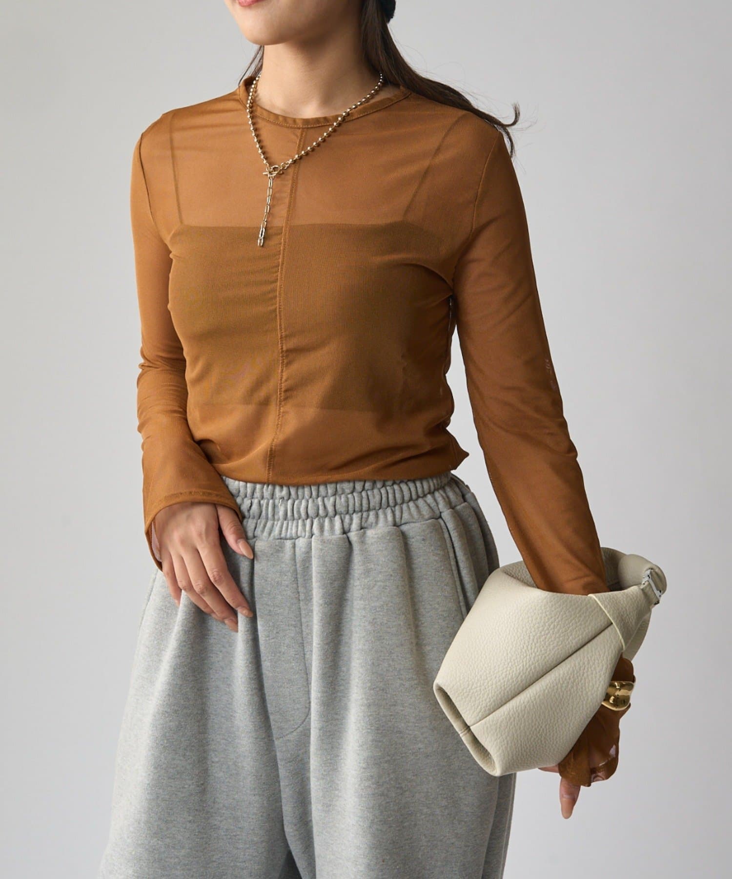 シアーの透け感が、今年らしい着こなしに欠かせないロンT。