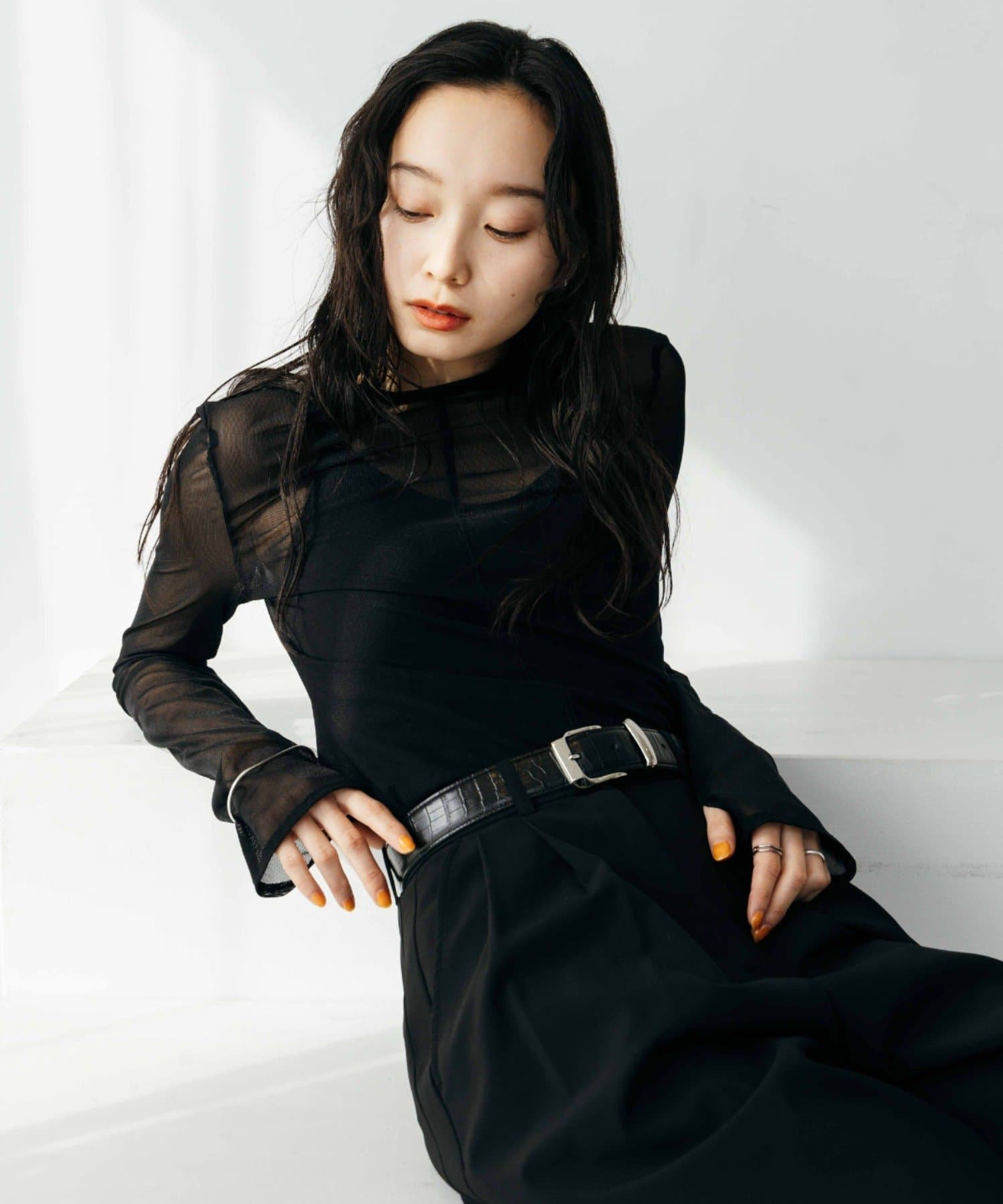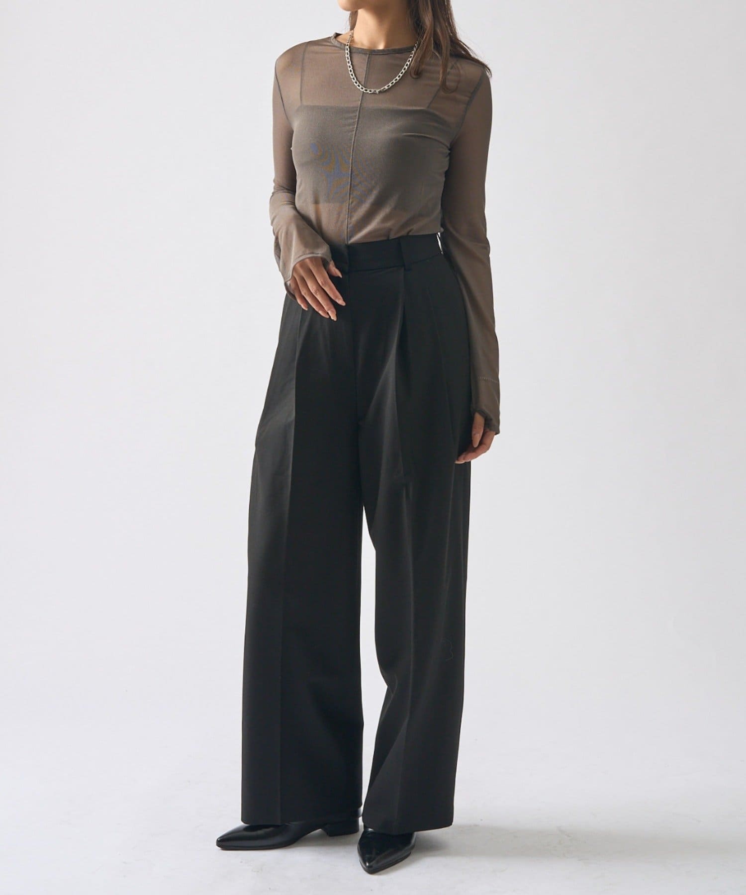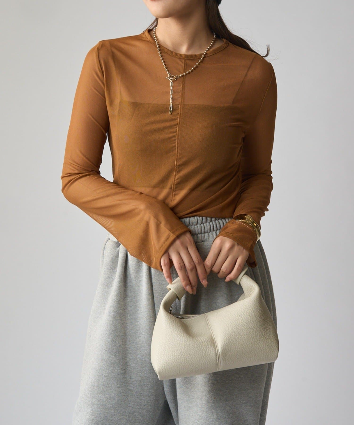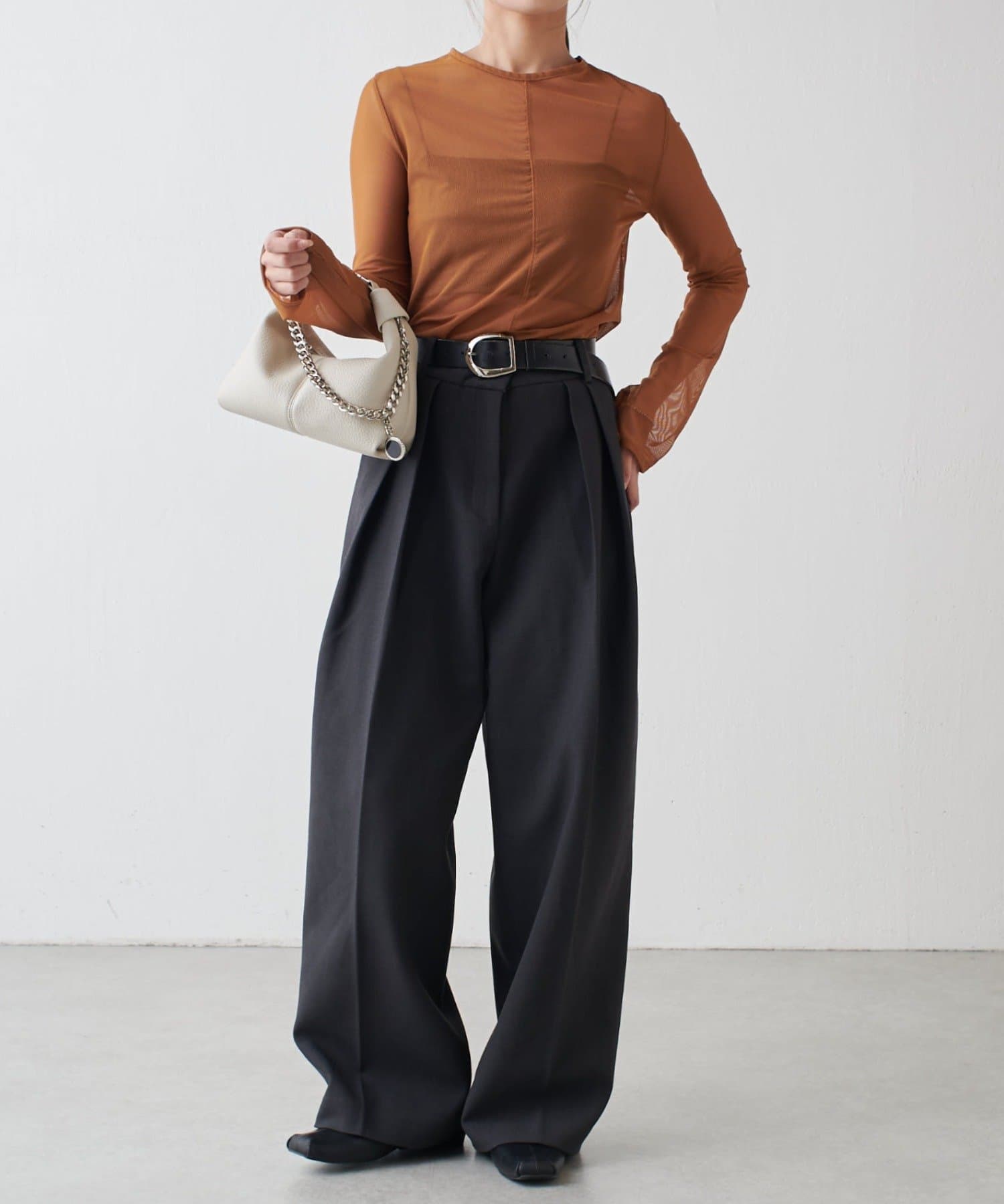 シアーの透け感が、今年らしい着こなしに欠かせないロンT。