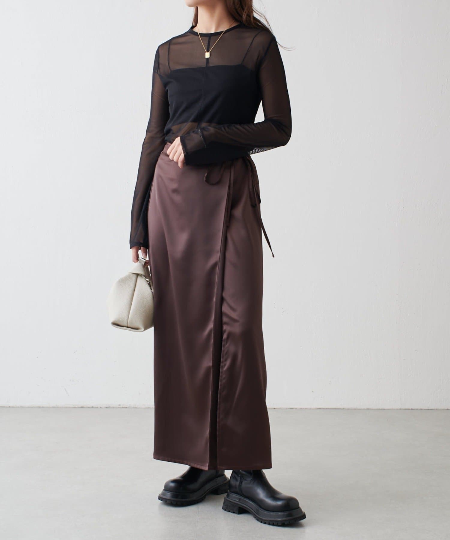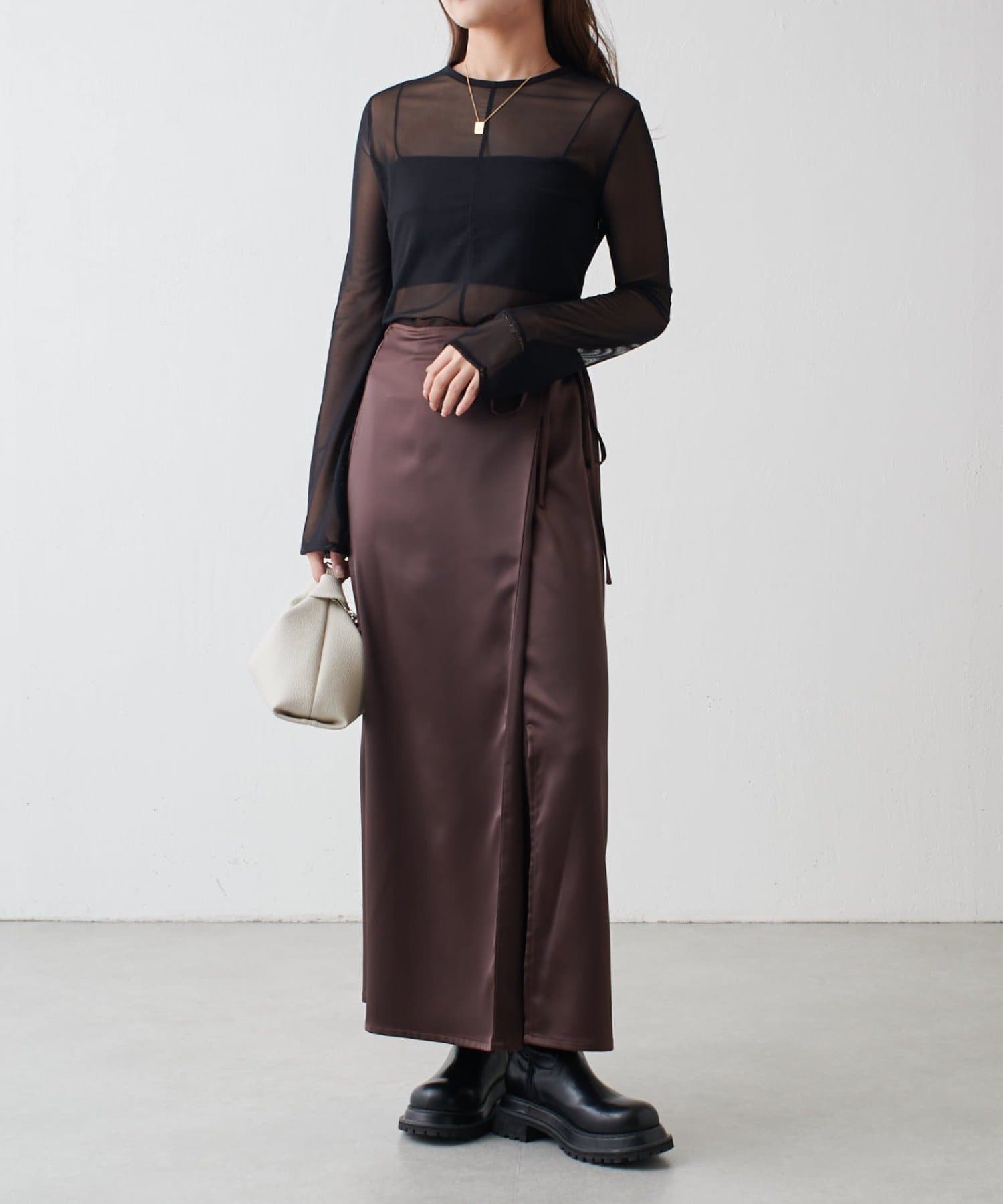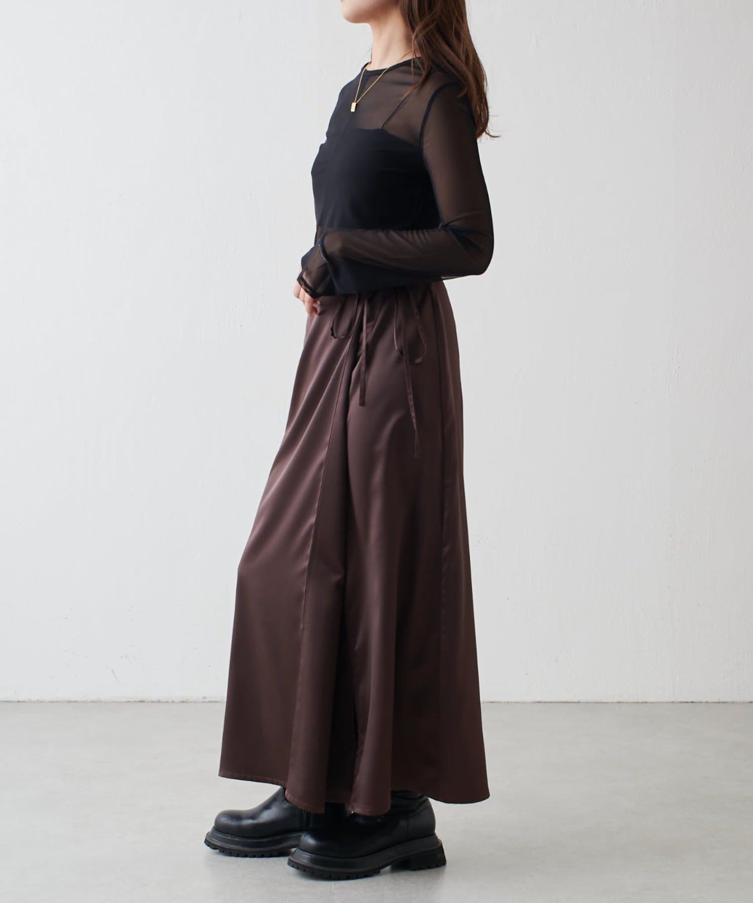 さらさらとした繊細な素材感の国内のシアー生地を使用。ほどよい透け感でやや光沢があり上品な印象です。