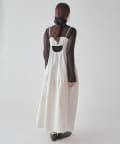 バスト下から広がるエレガントなシルエットに気分が上がる一品。胸元にはスラッシュカット、