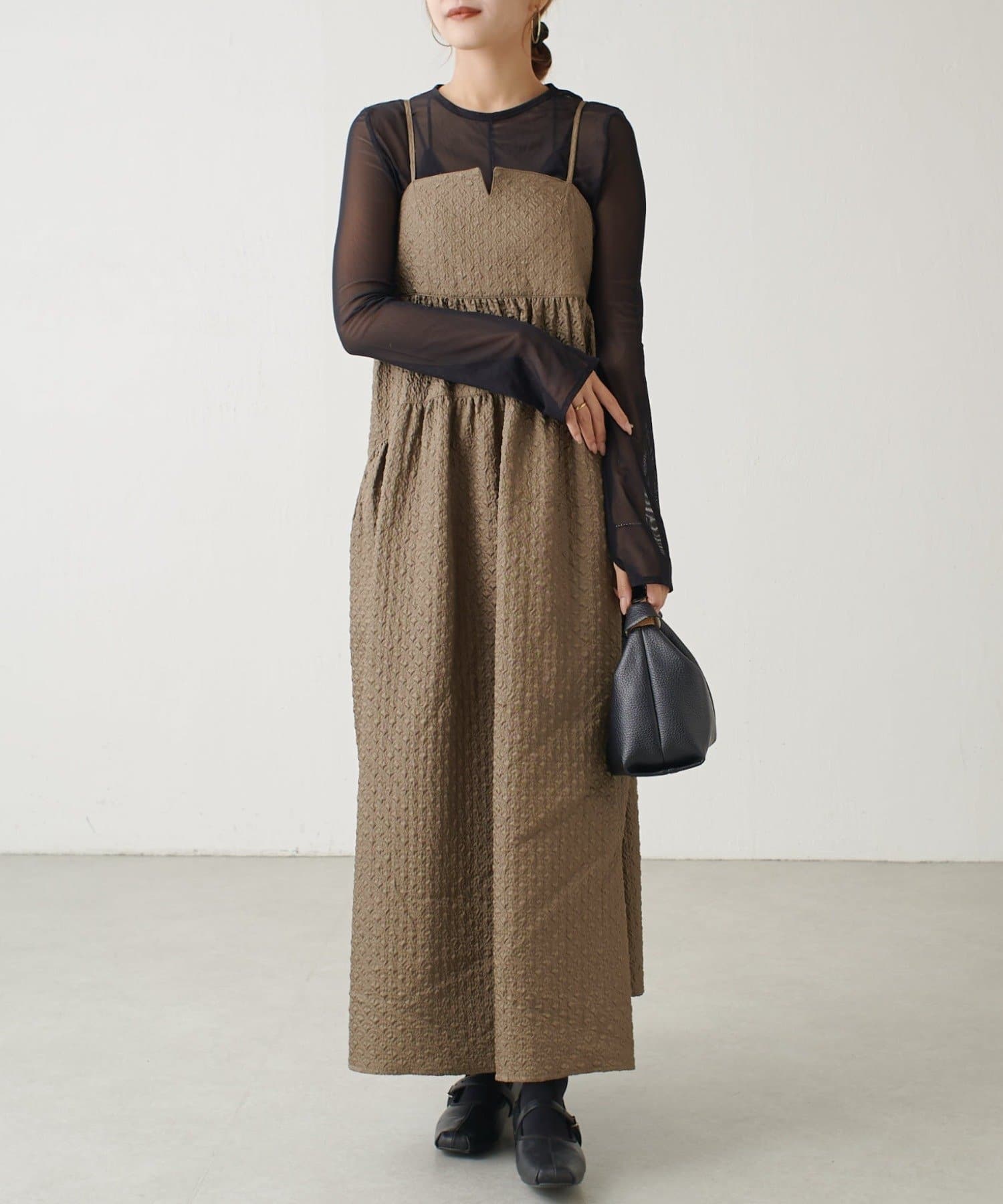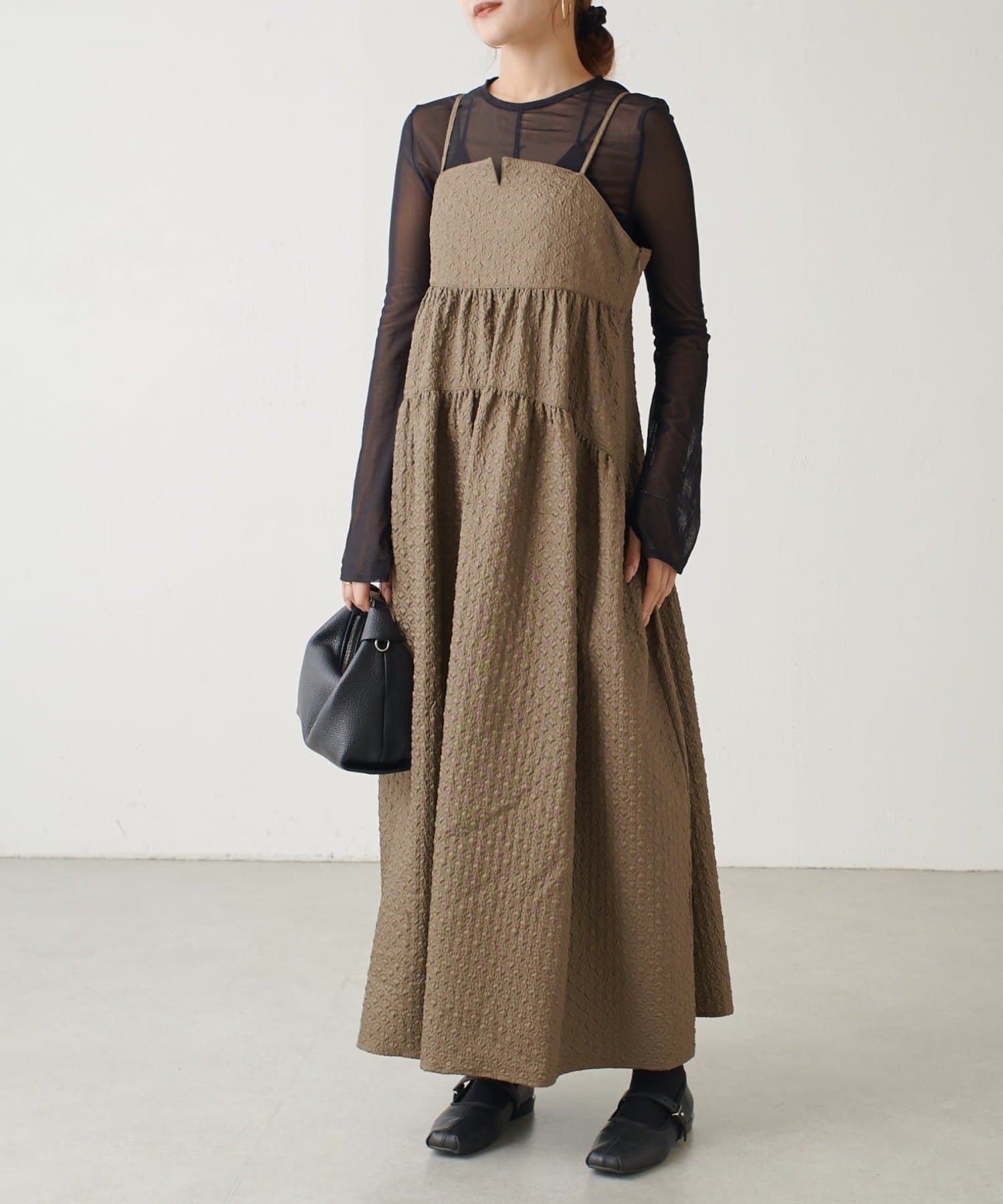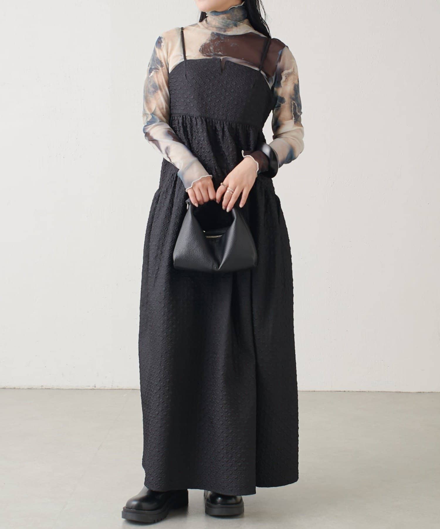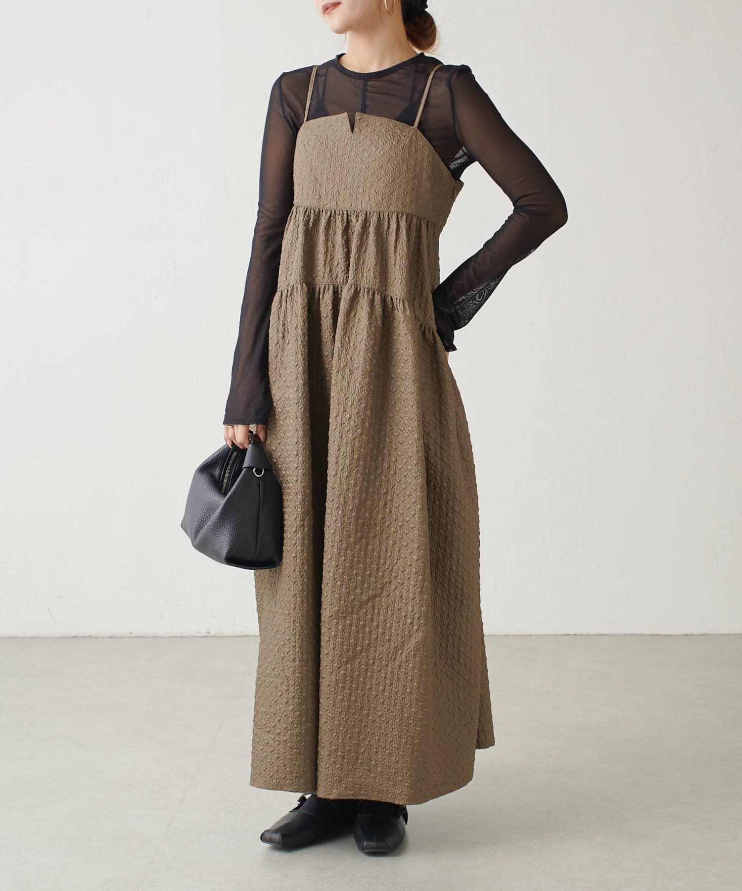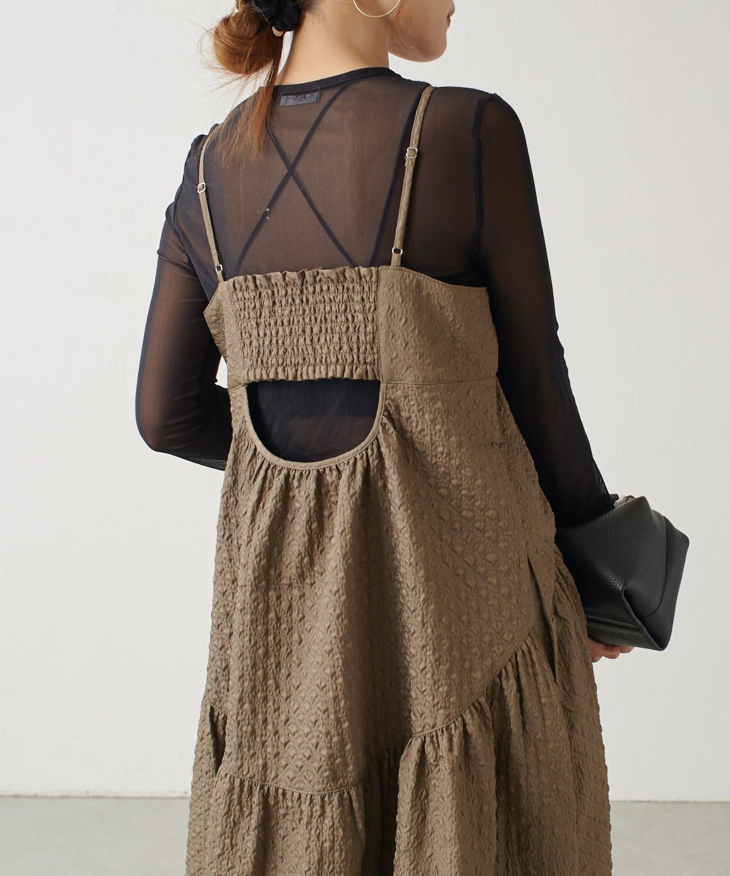 【ベストセラー】バックデザインジャガードキャミワンピース