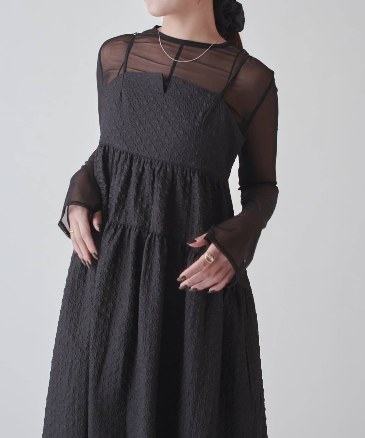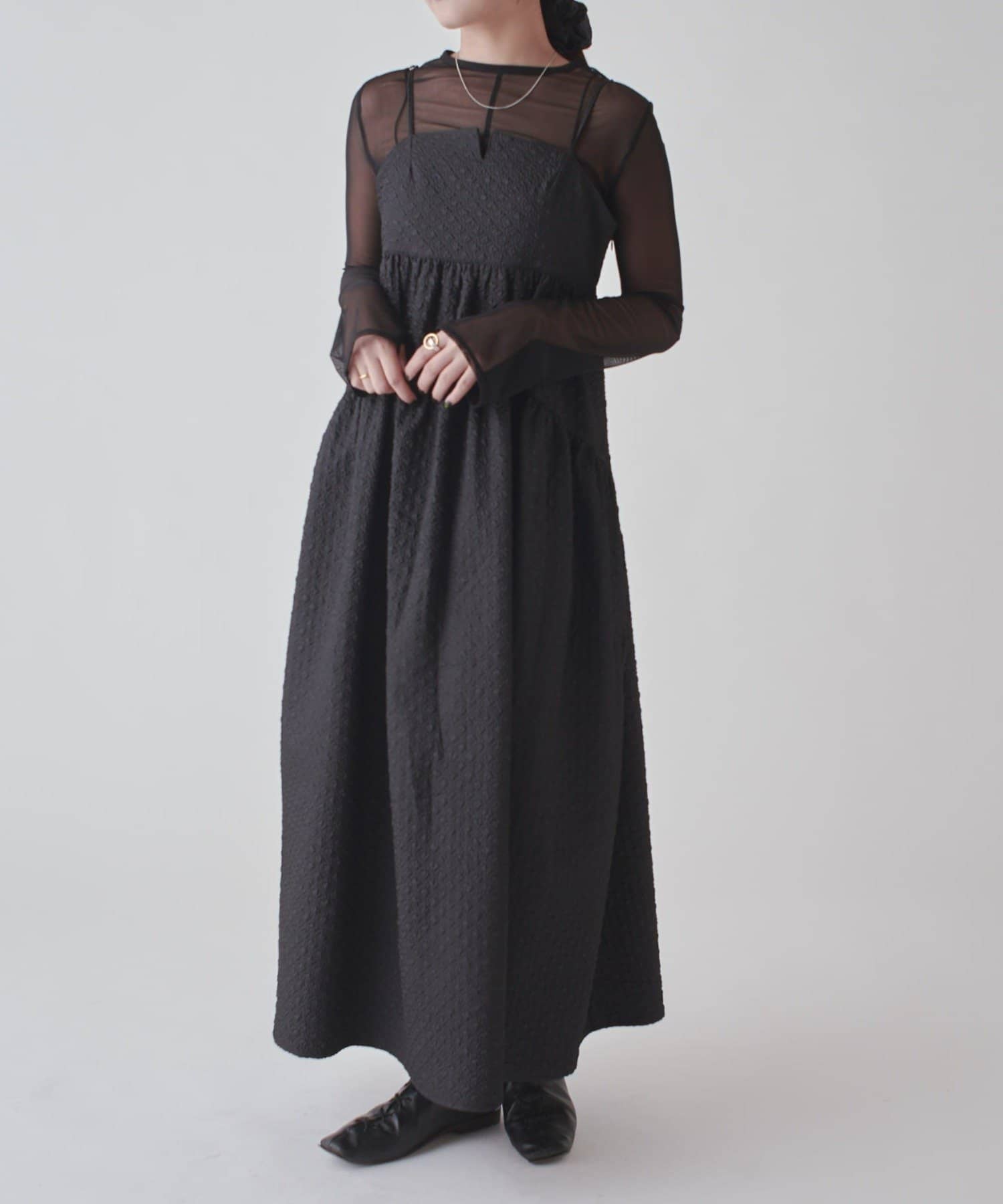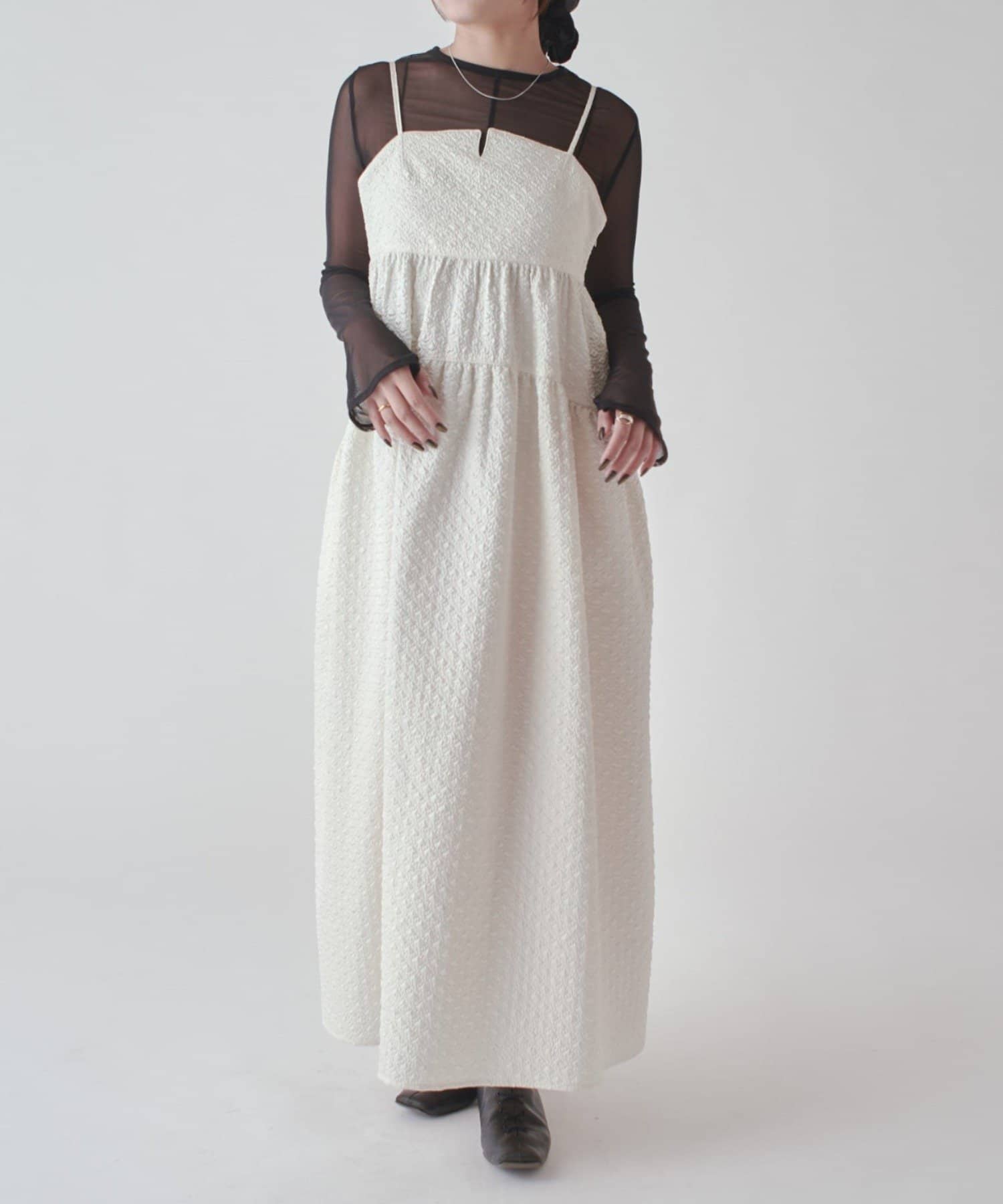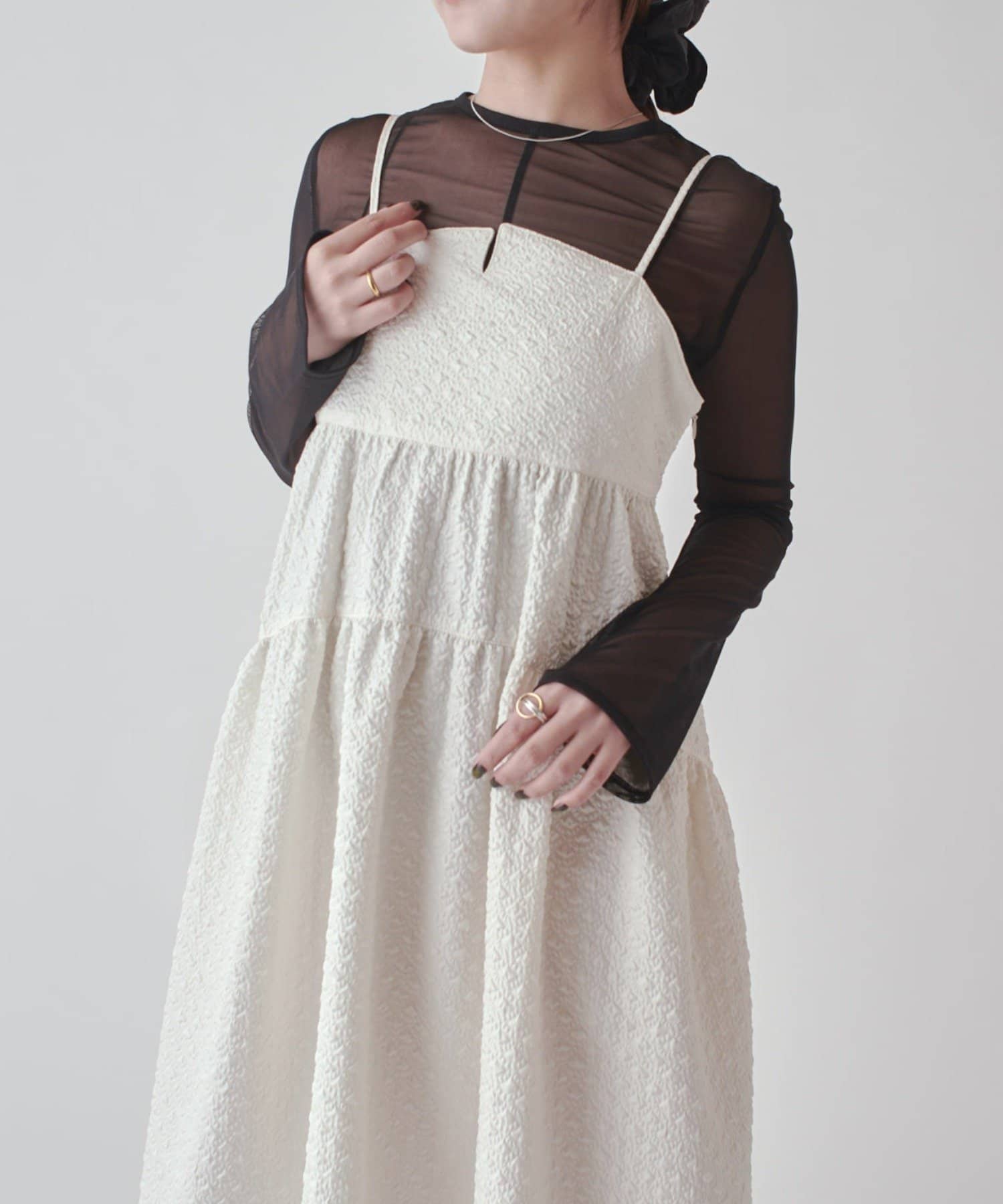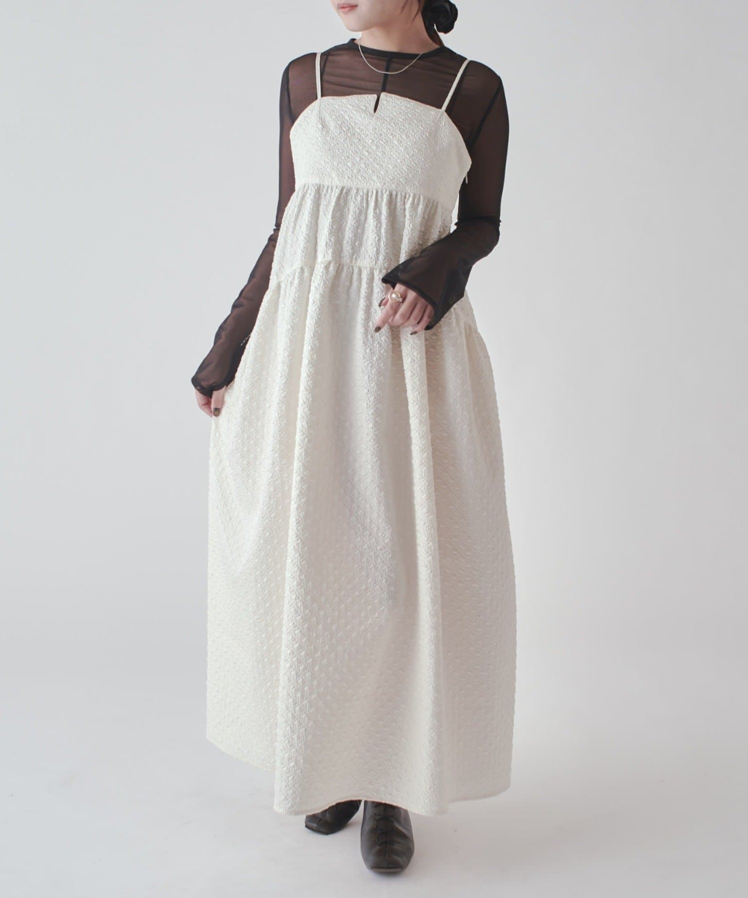 【ベストセラー】バックデザインジャガードキャミワンピース