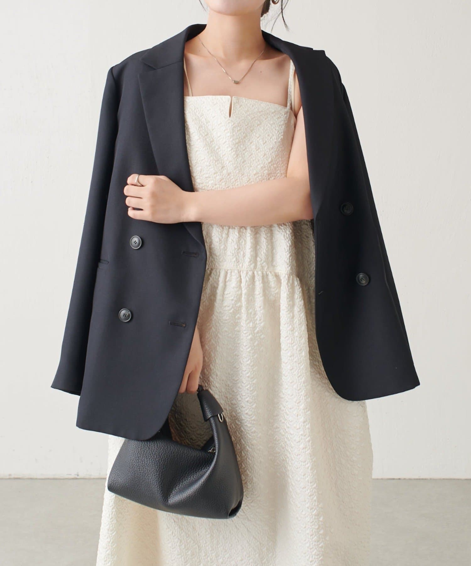 女性らしいデザインを詰め込んだシーズンムード盛り上がる一着。