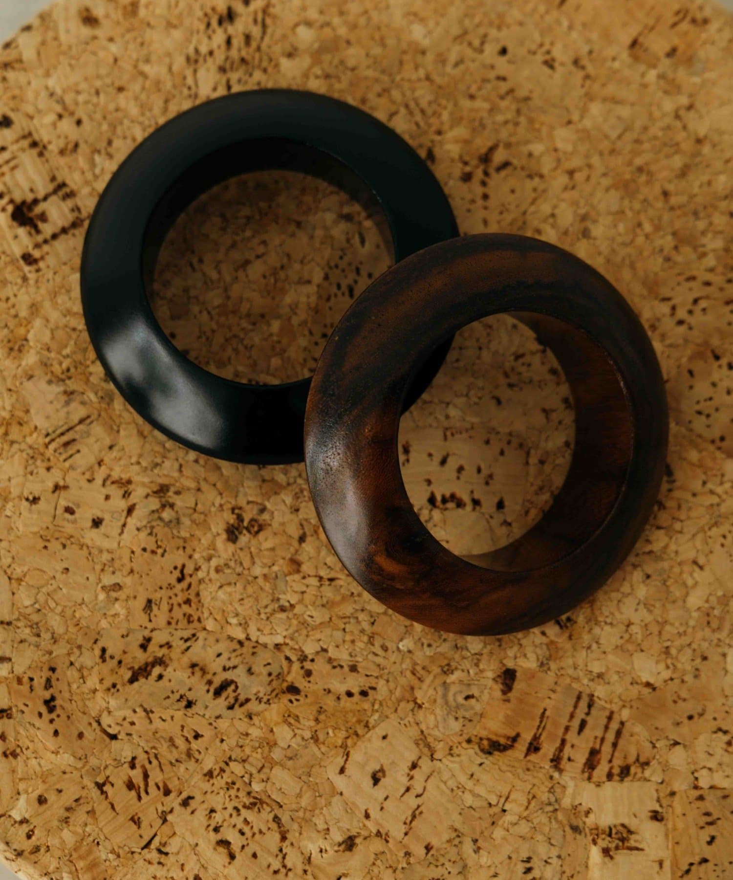 ウッド素材をジュエリーへと昇華さっせた木目が美しく、程よい抜け感を演出します。