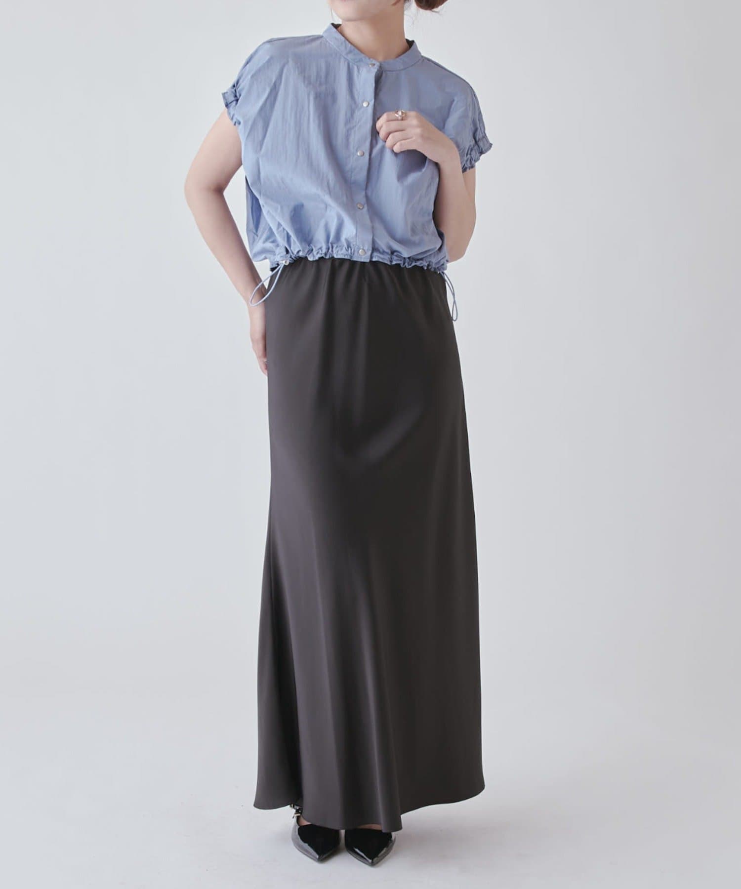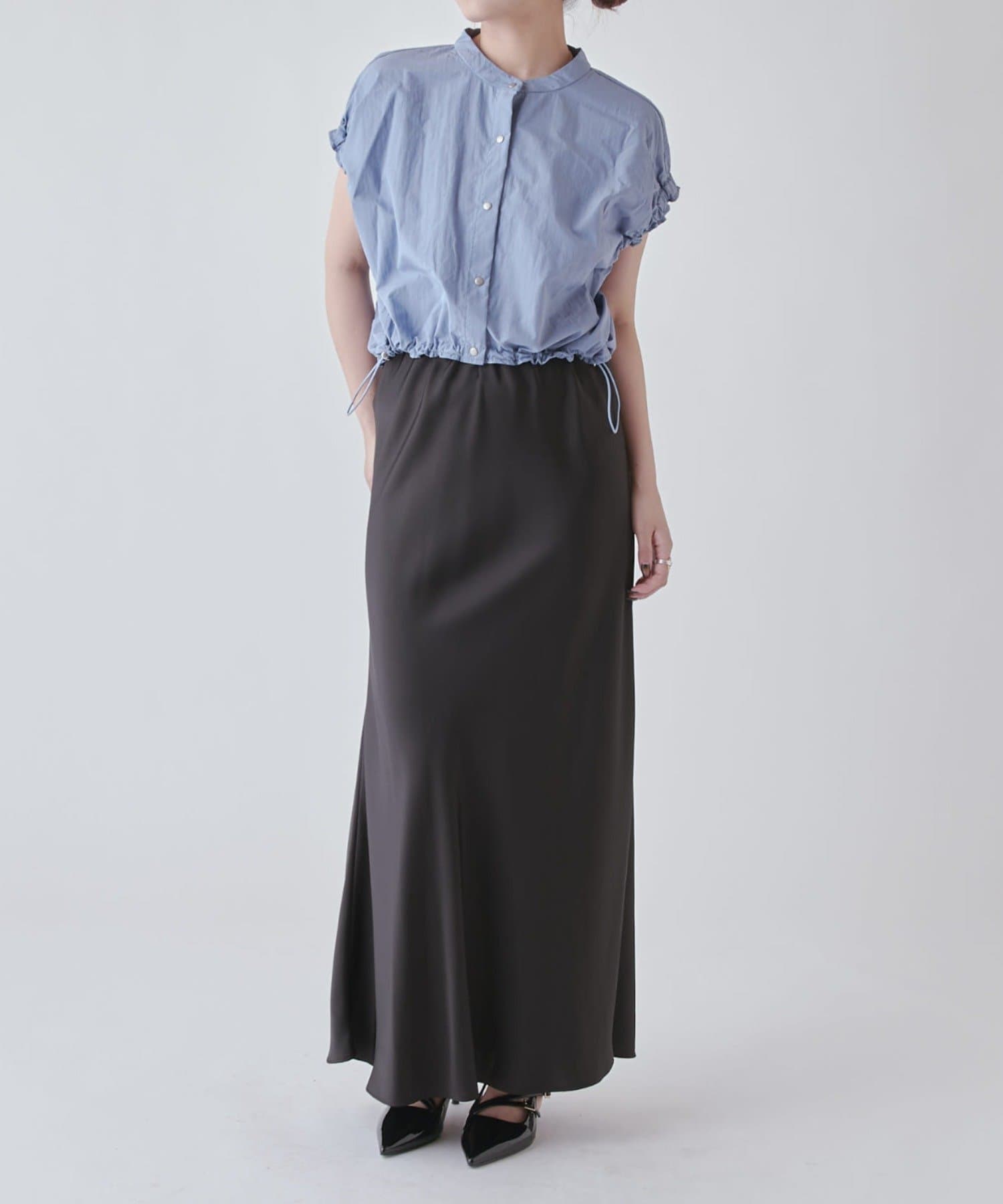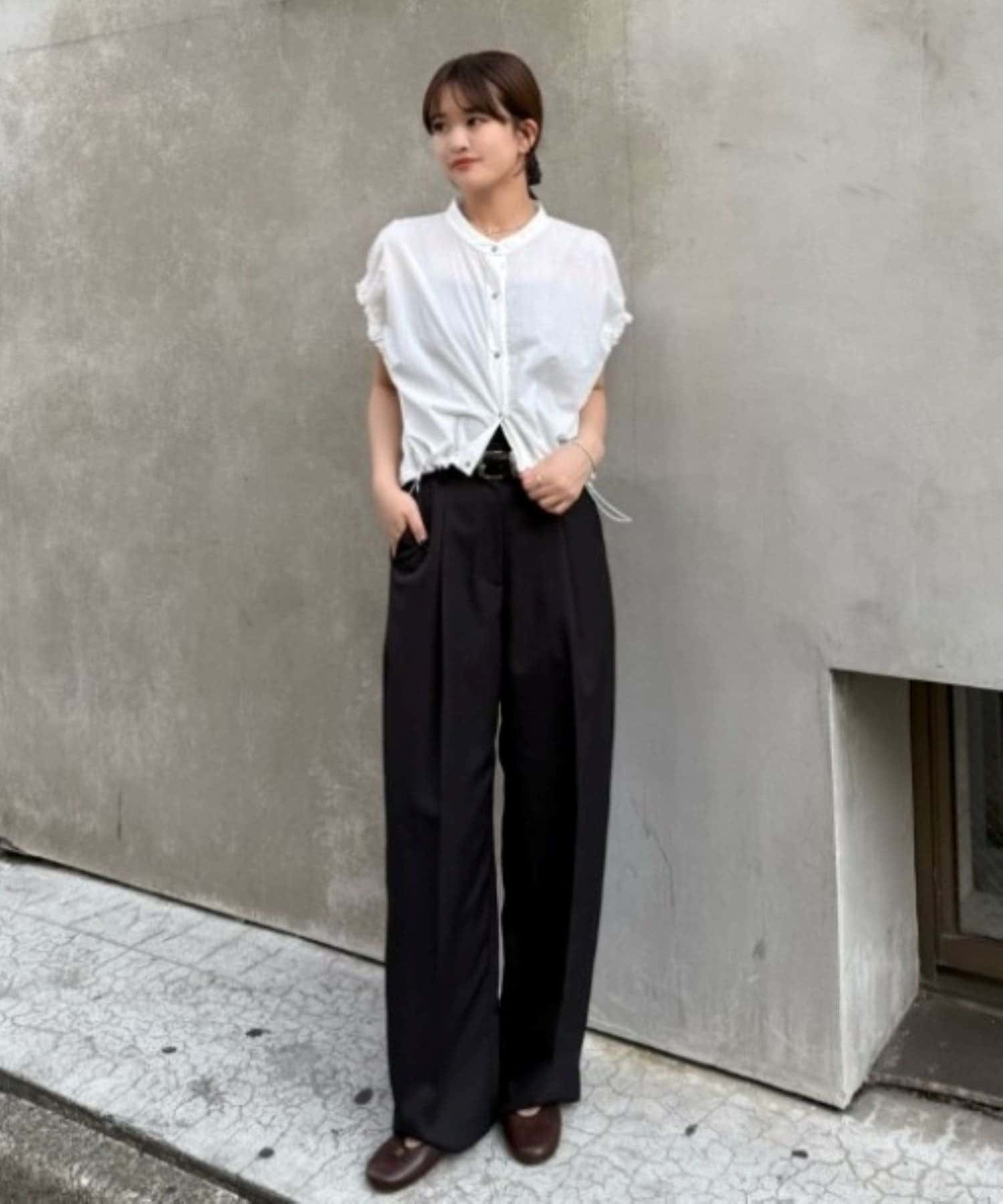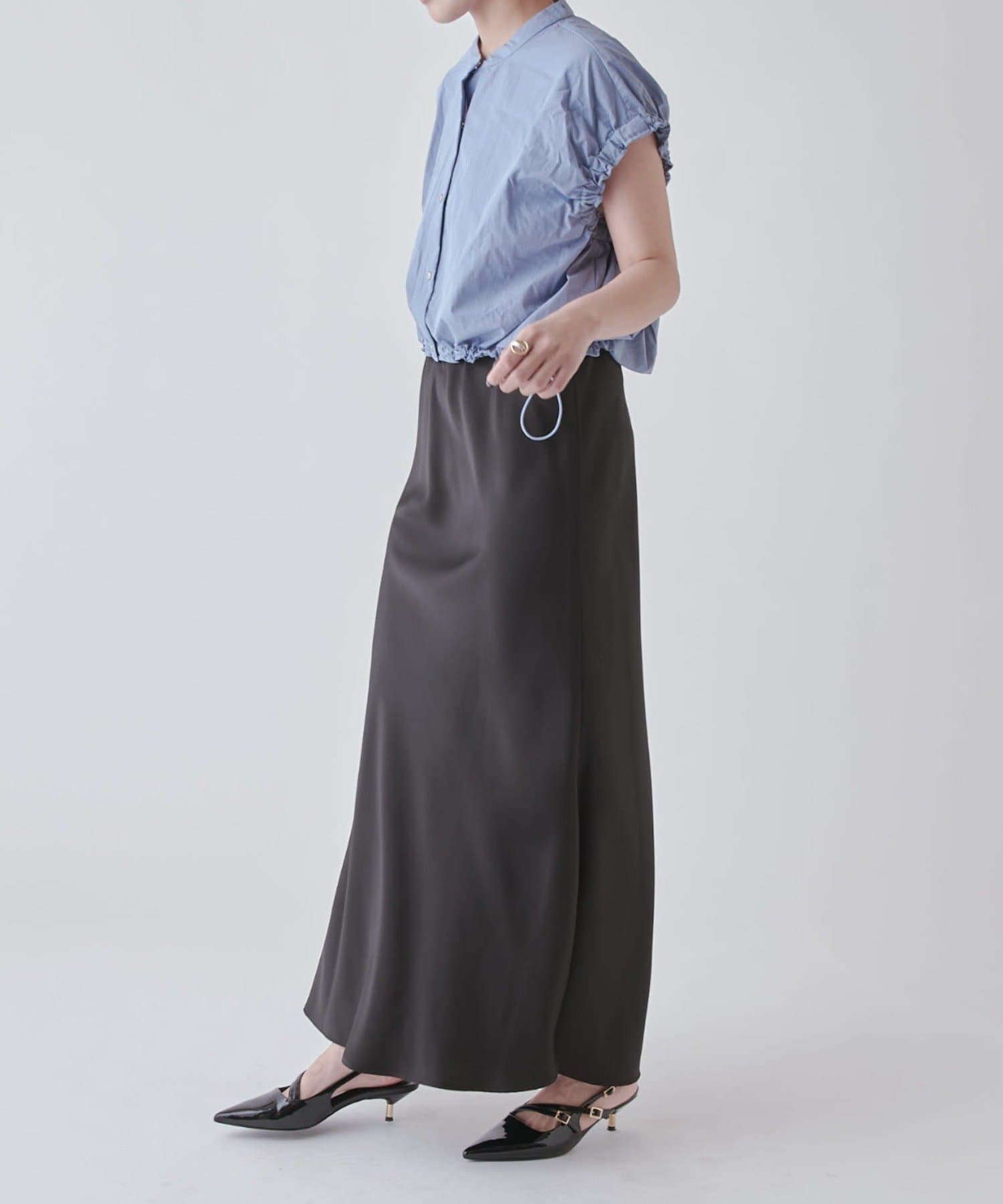 シンプルにスラックスで合わせるのはもちろん、シンプルなスカート合わせもオススメです。