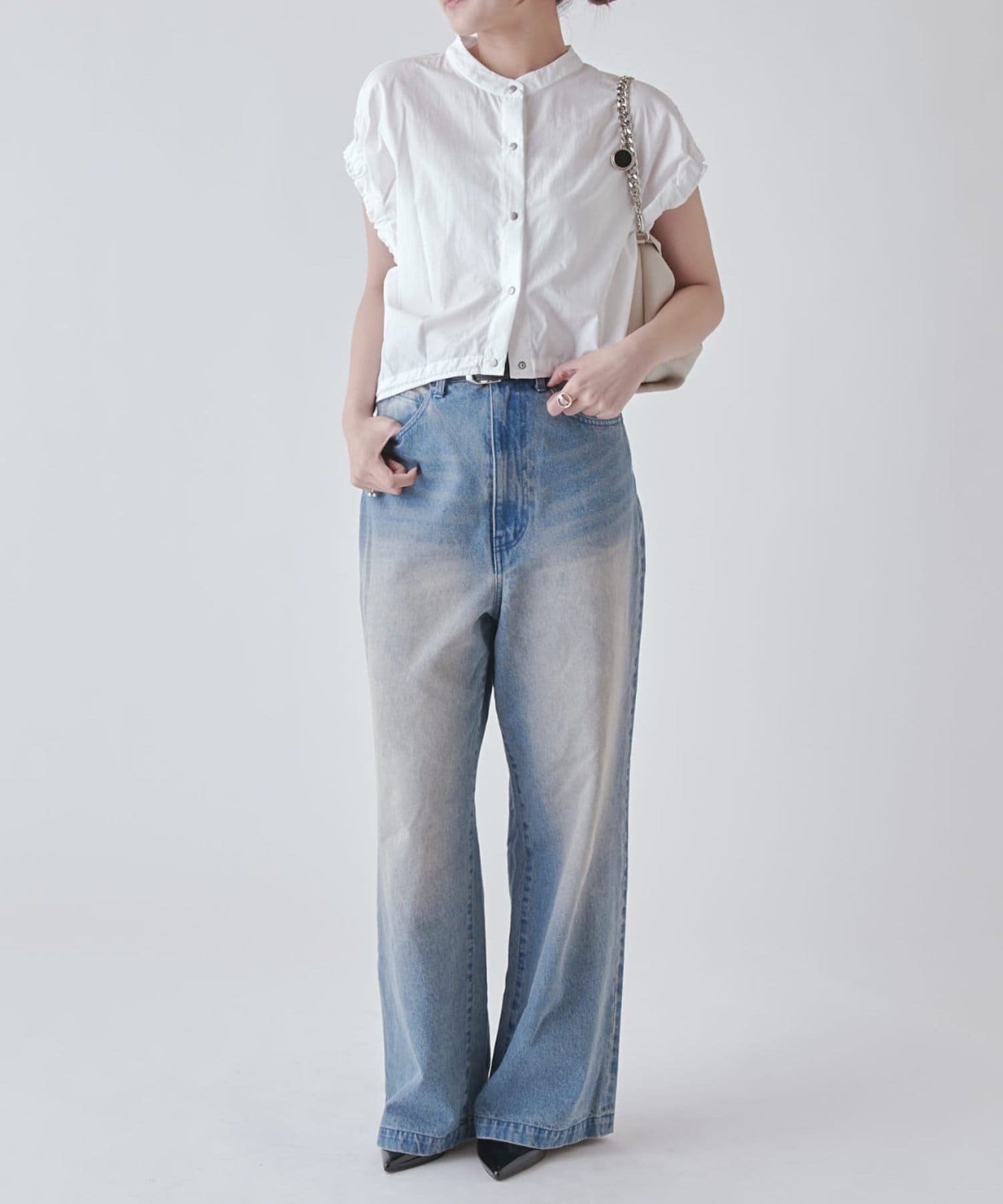 ジャストな丈感で、どのボトムスで合わせても脚長効果に◎