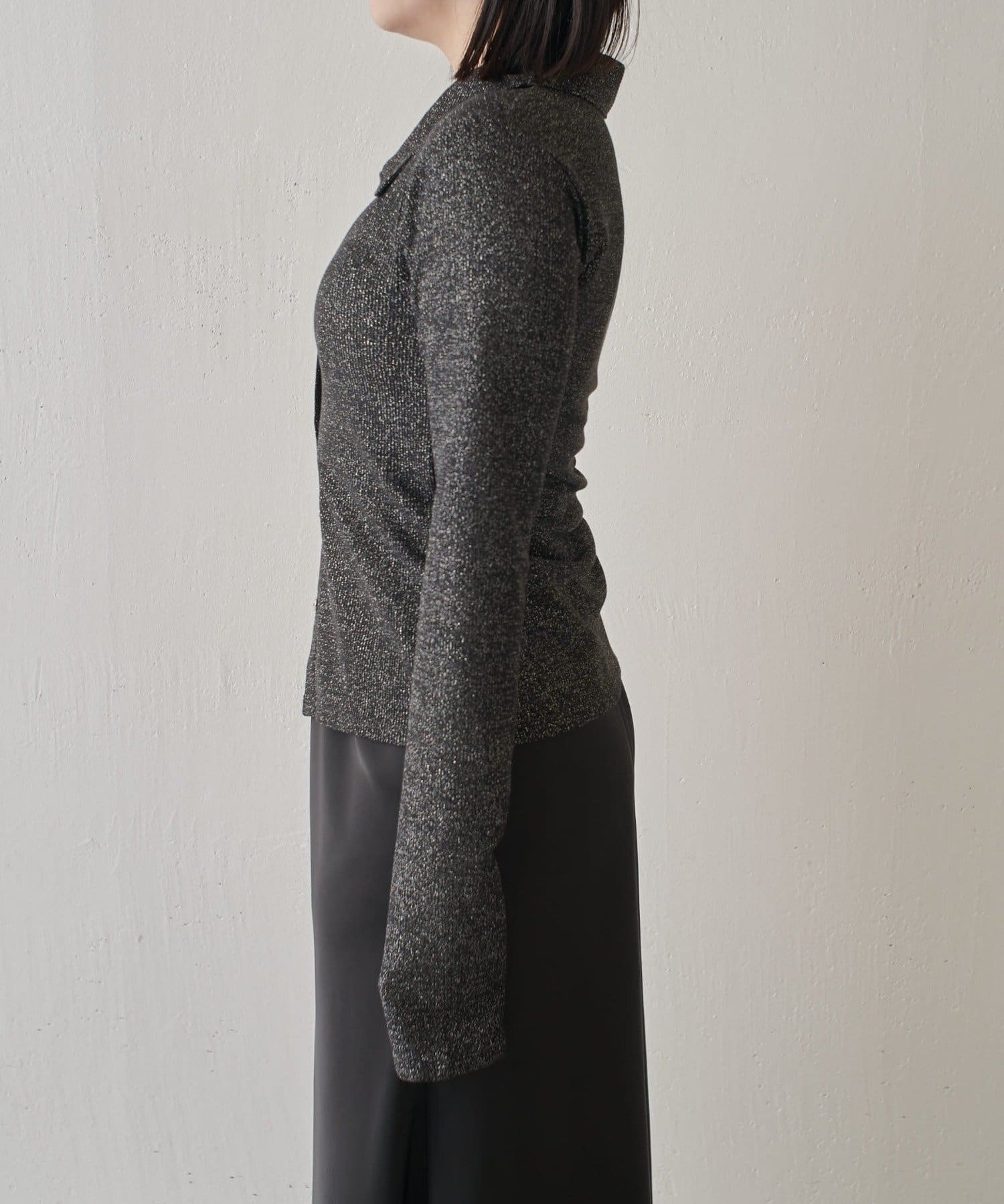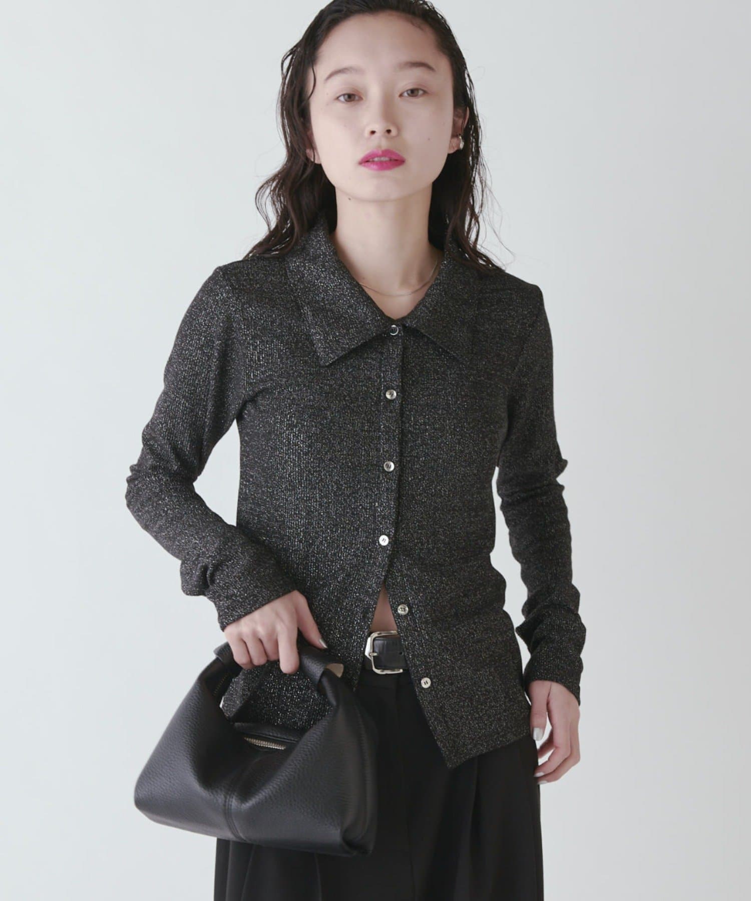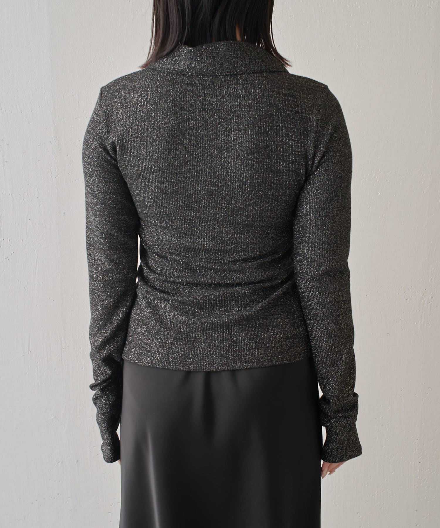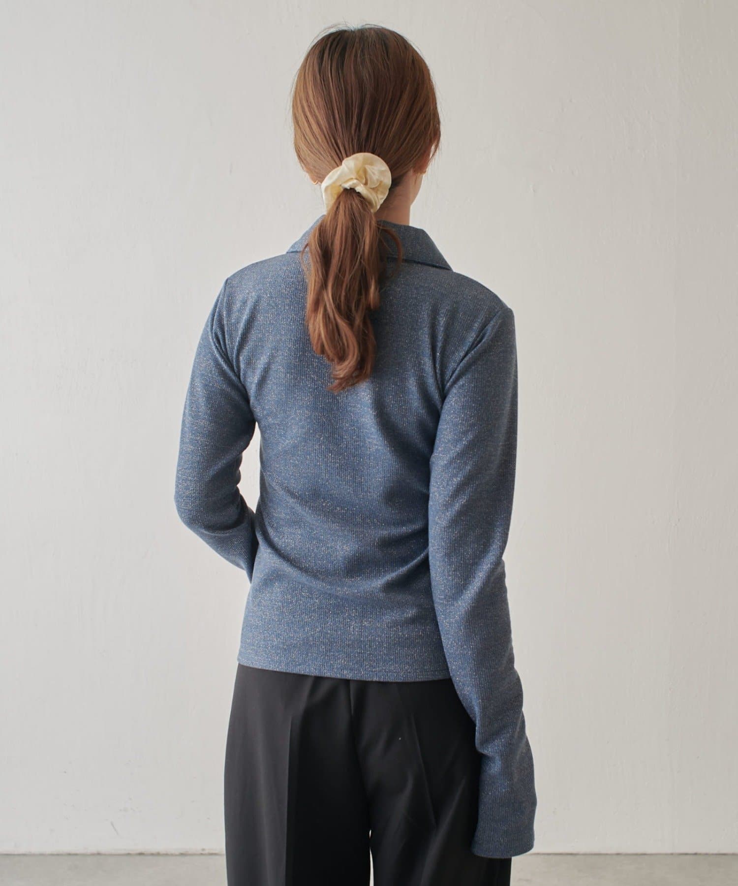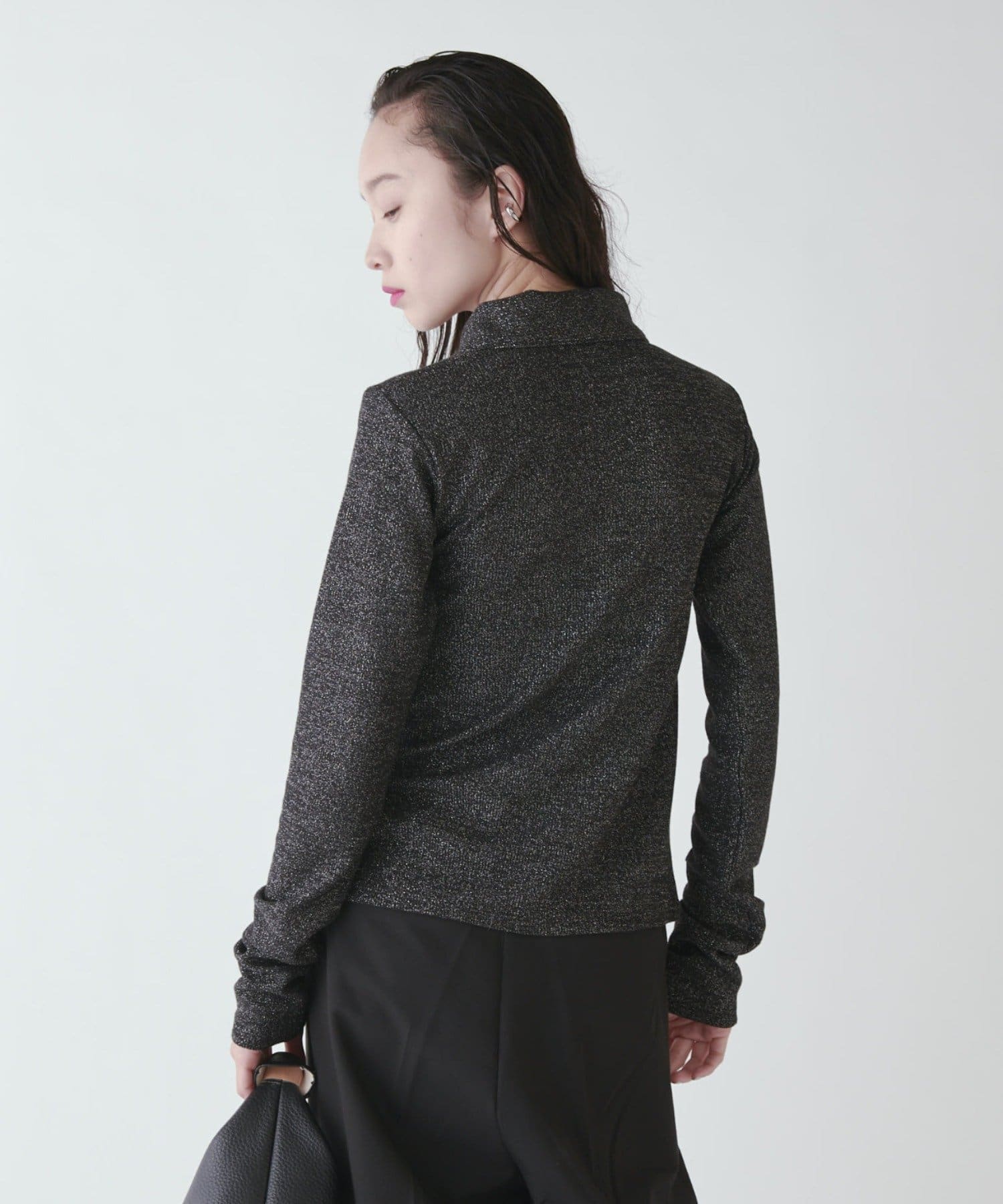 ラメが入っている素材で、さらっと一枚で着れるトップス。