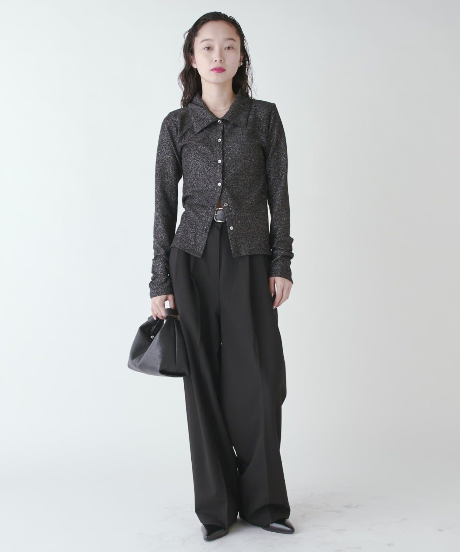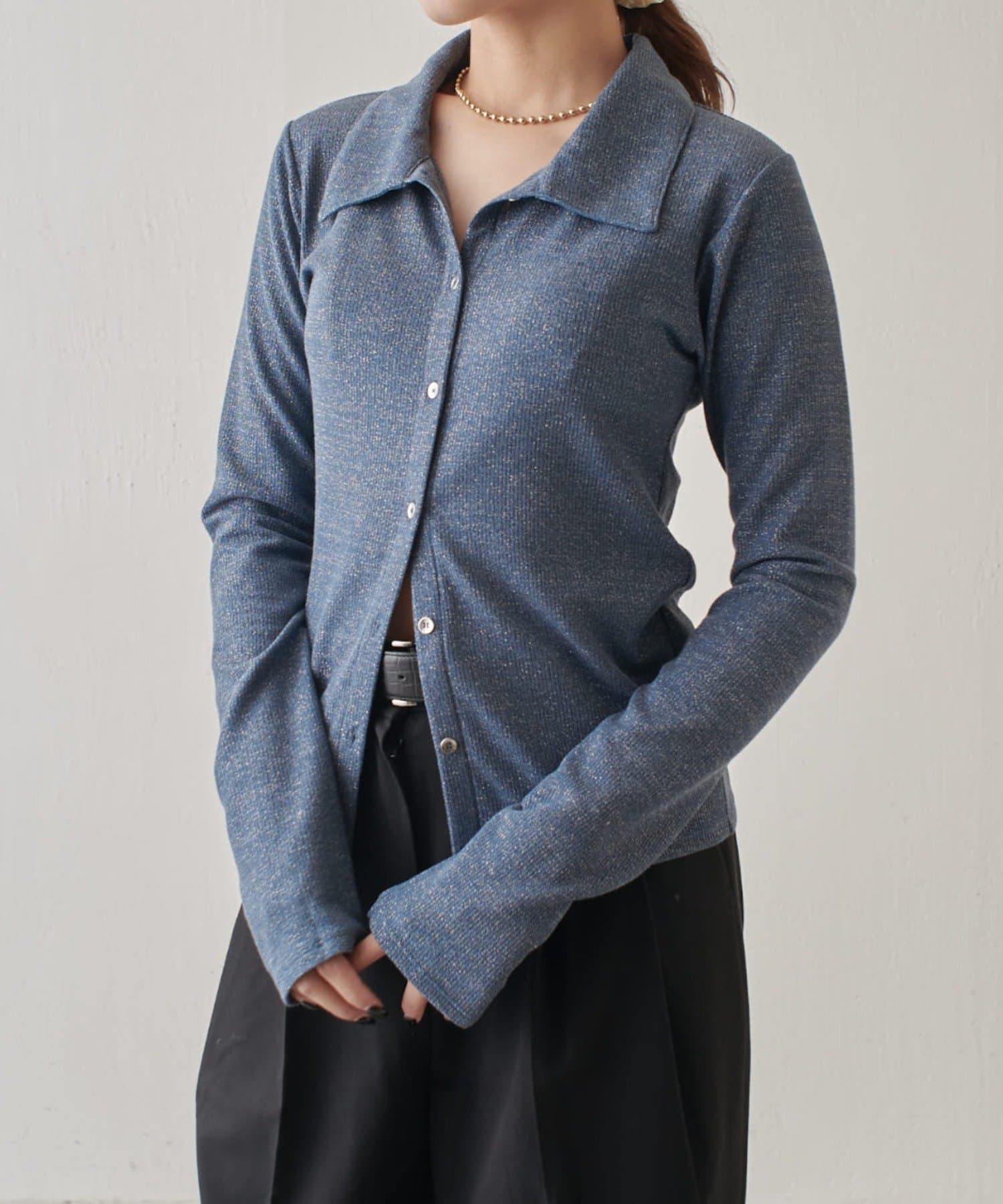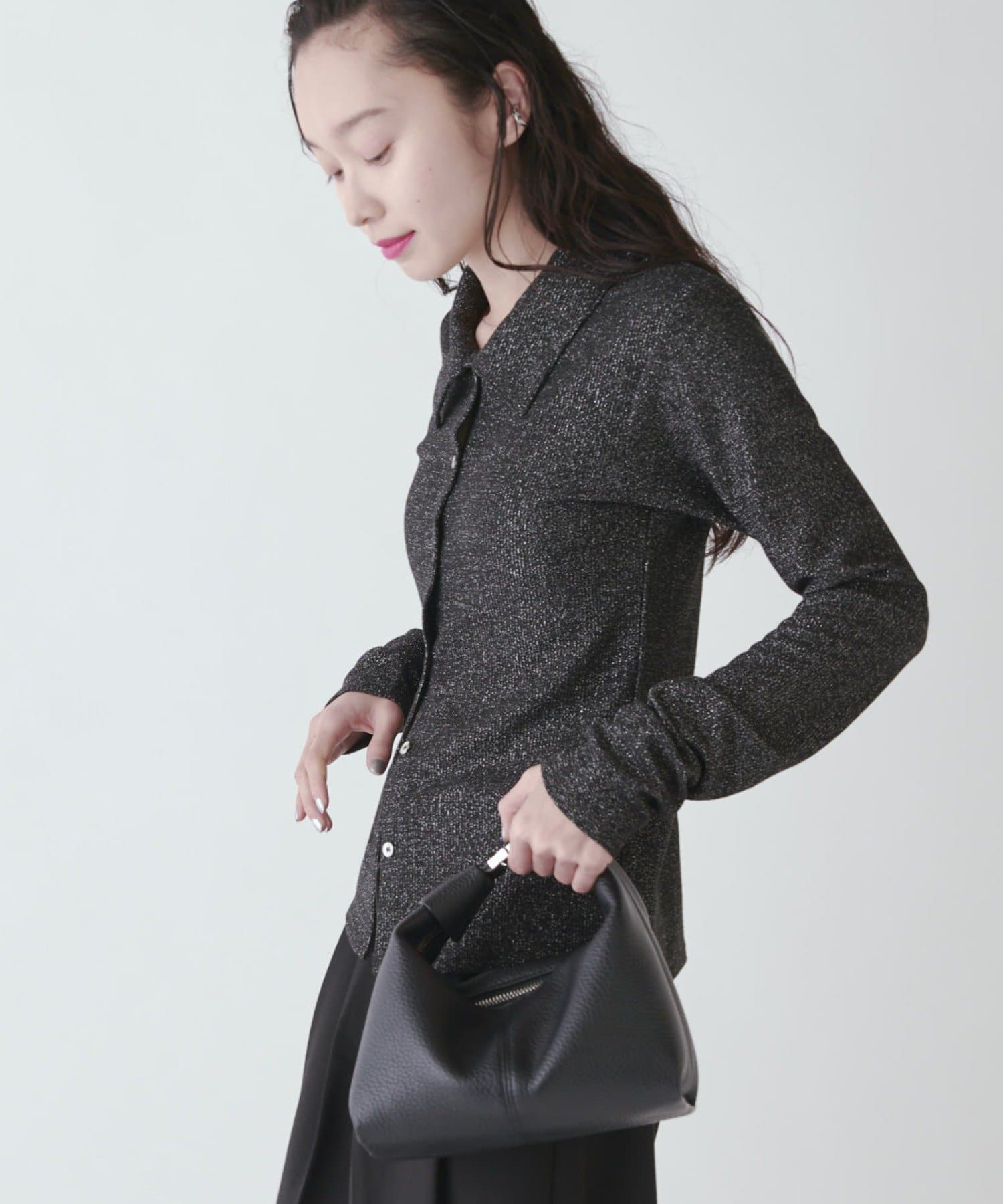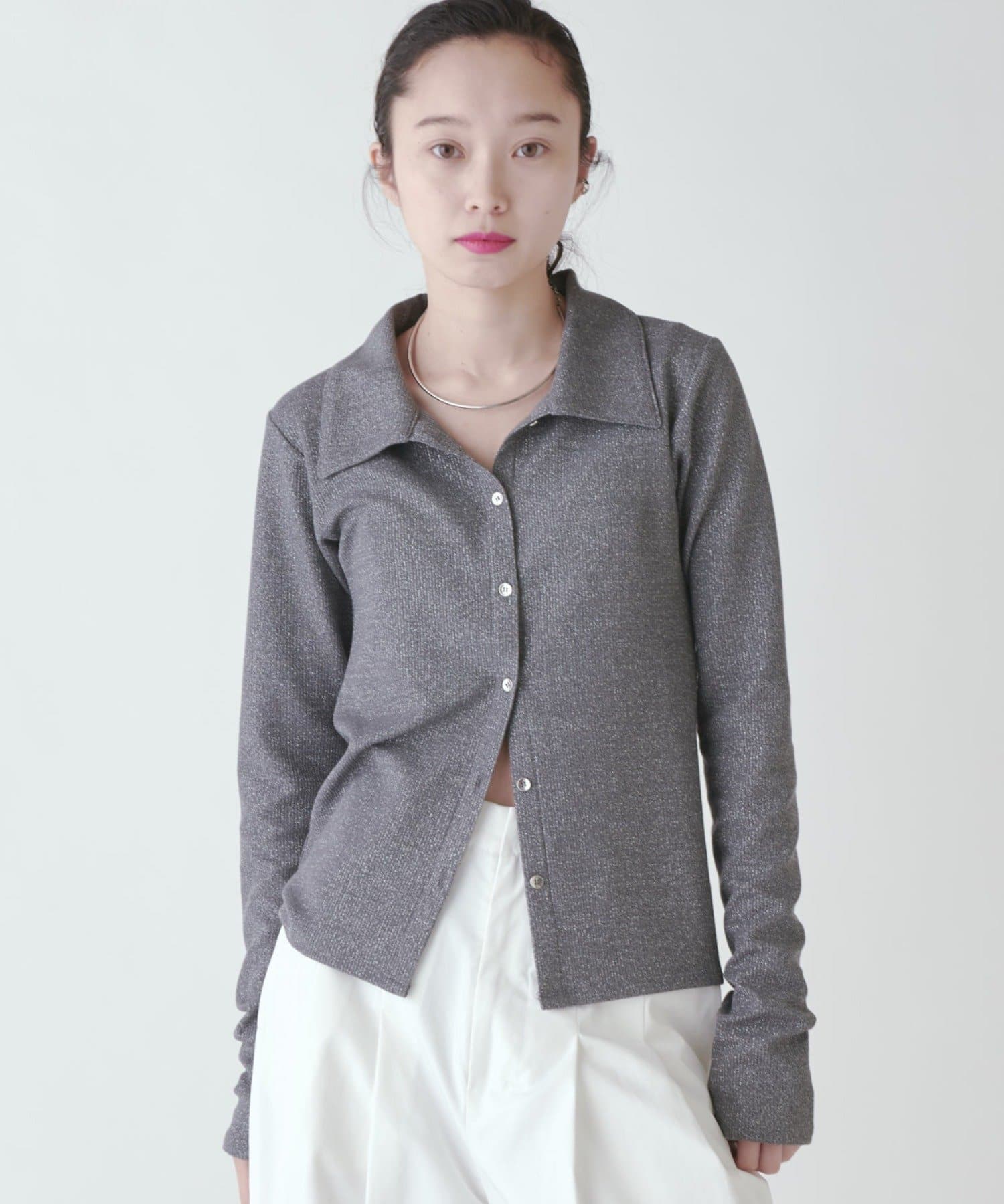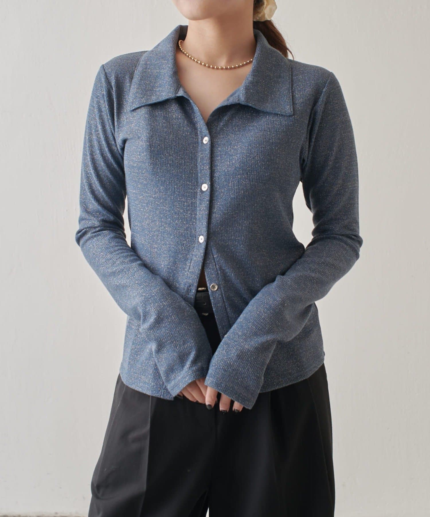 ラメが入っている素材で、さらっと一枚で着れるトップス。