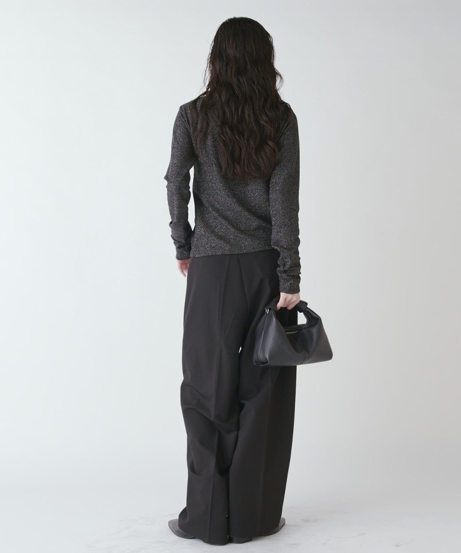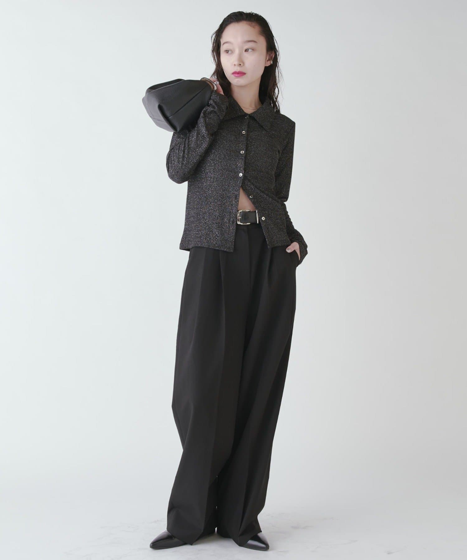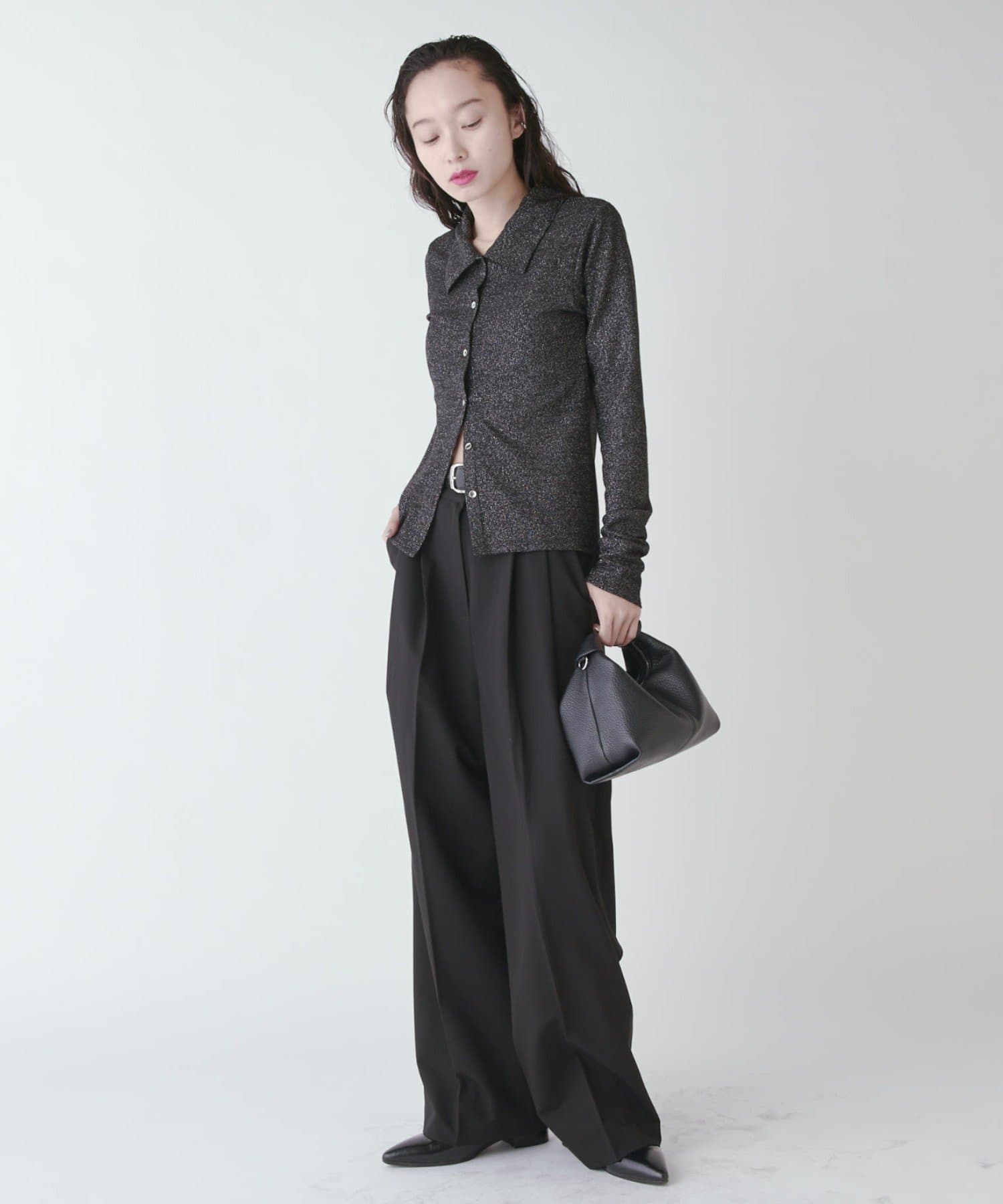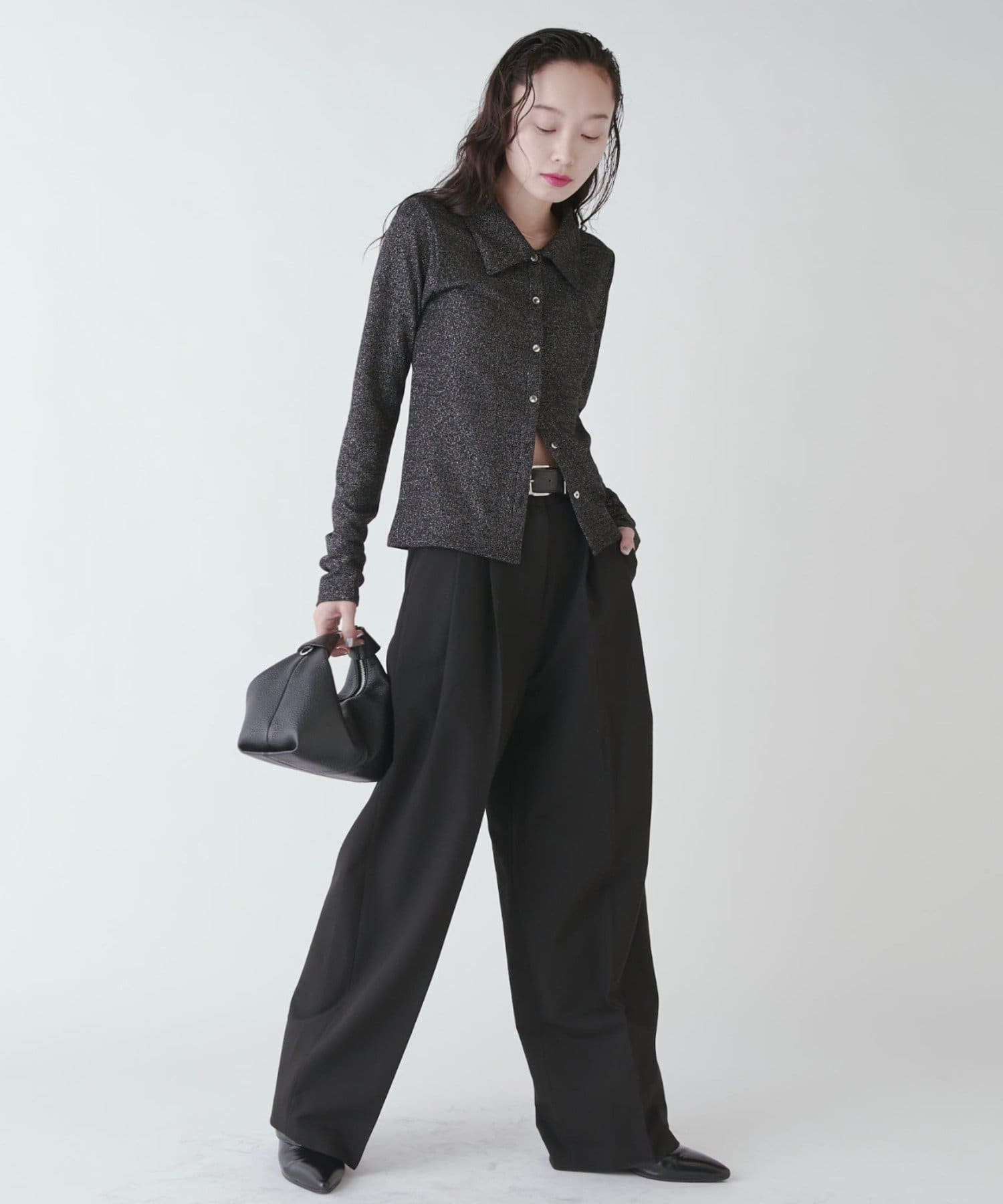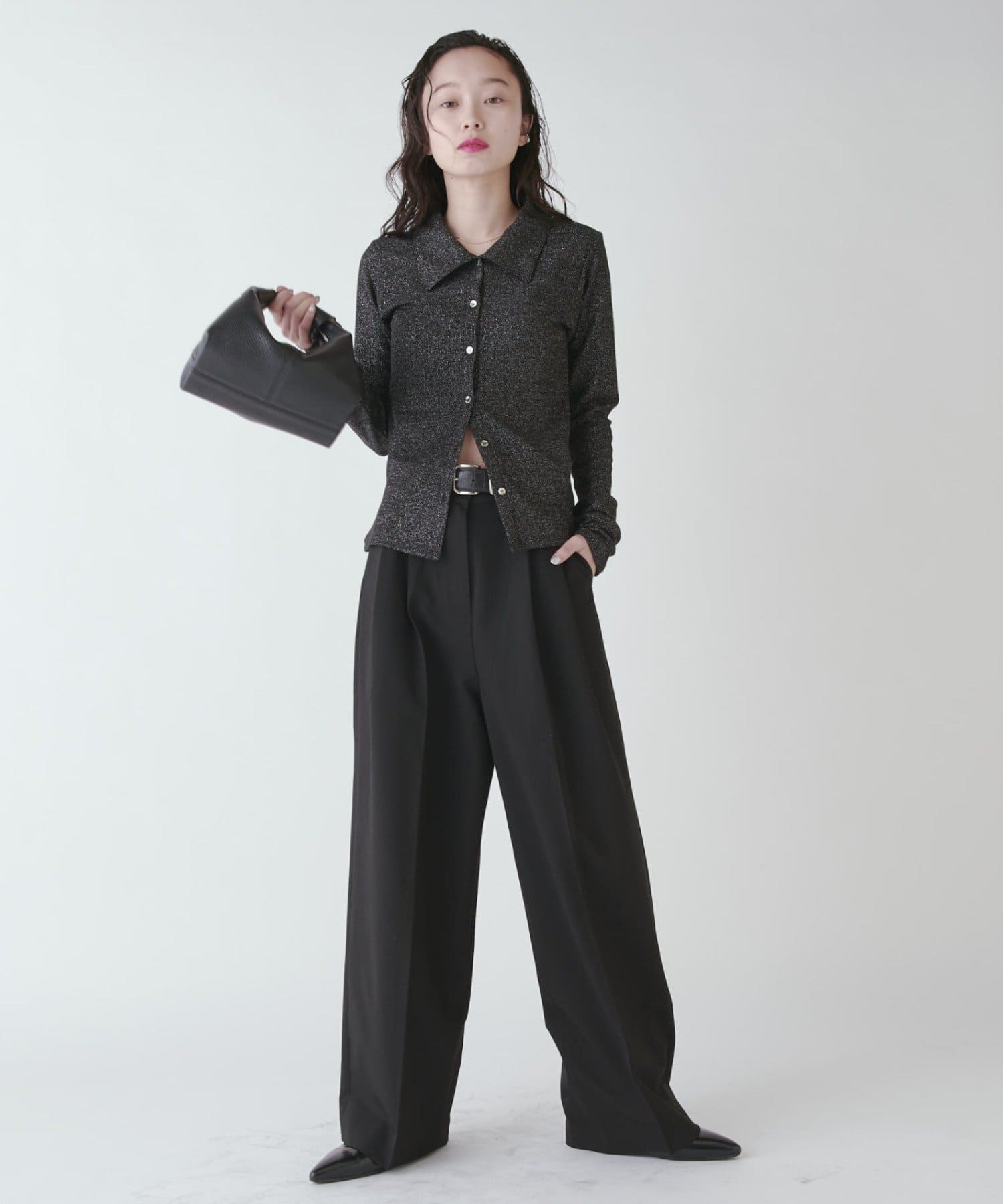 ラメが入っている素材で、さらっと一枚で着れるトップス。
