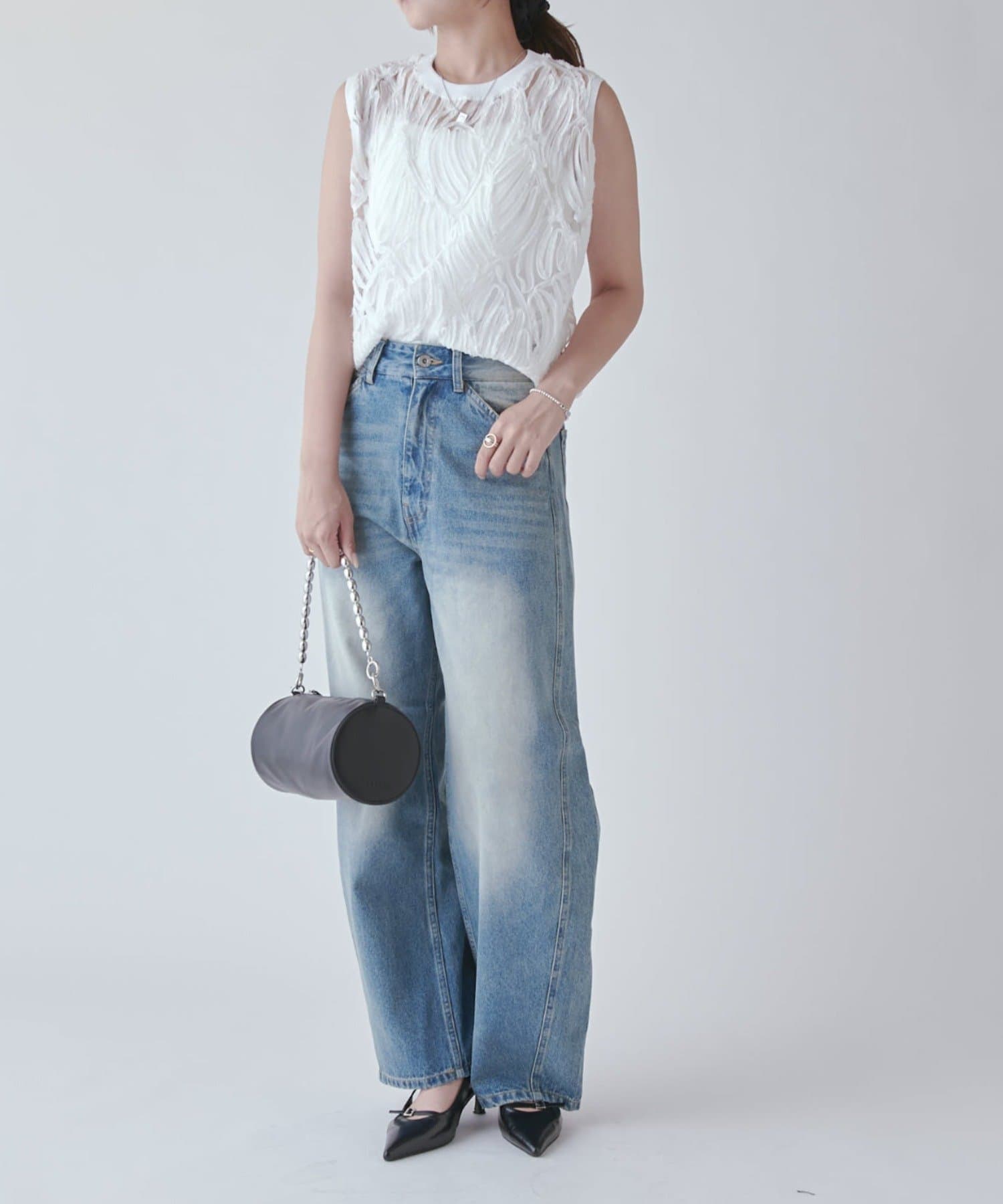 軽めのジャケットを羽織っても、デザインがちらっと見えるのでそこもポイント。