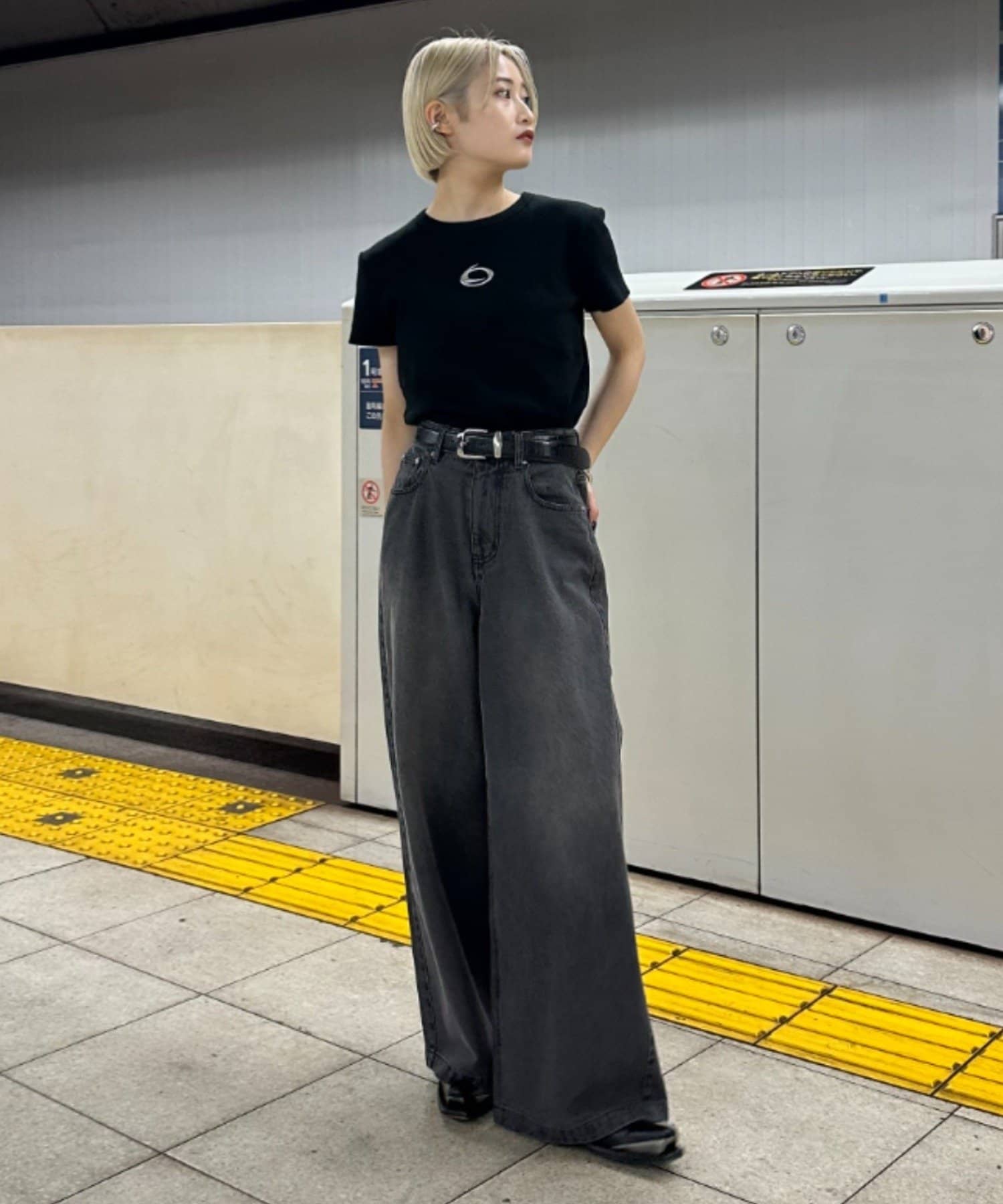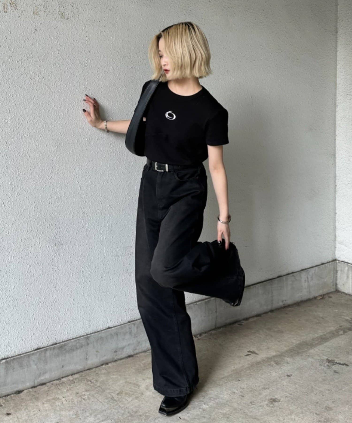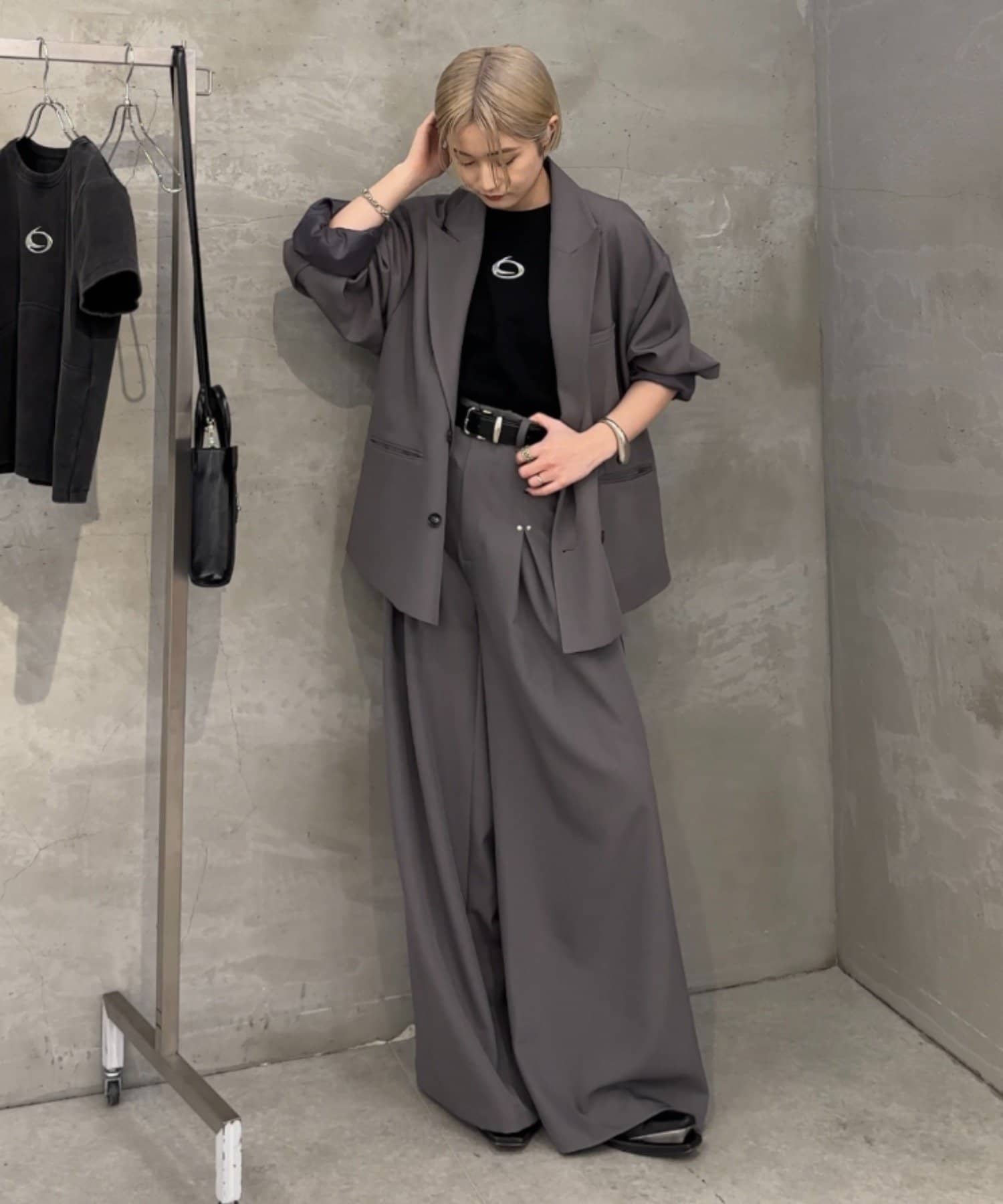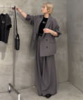 ・一枚でモードにカッコよく着こなせるトップスなので、シンプルにワイドなスラックスやデニムと合わせたスタイルがオススメ。