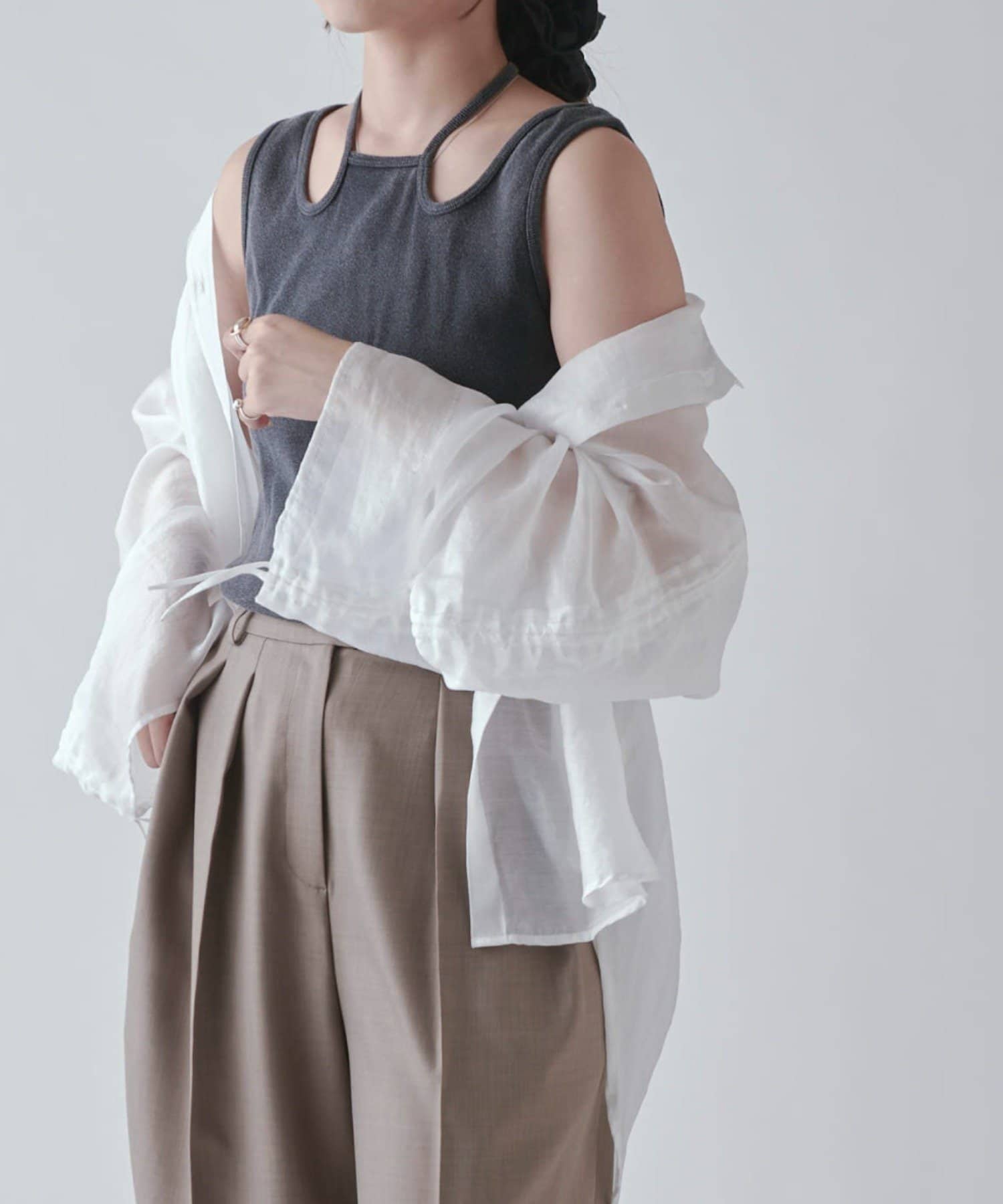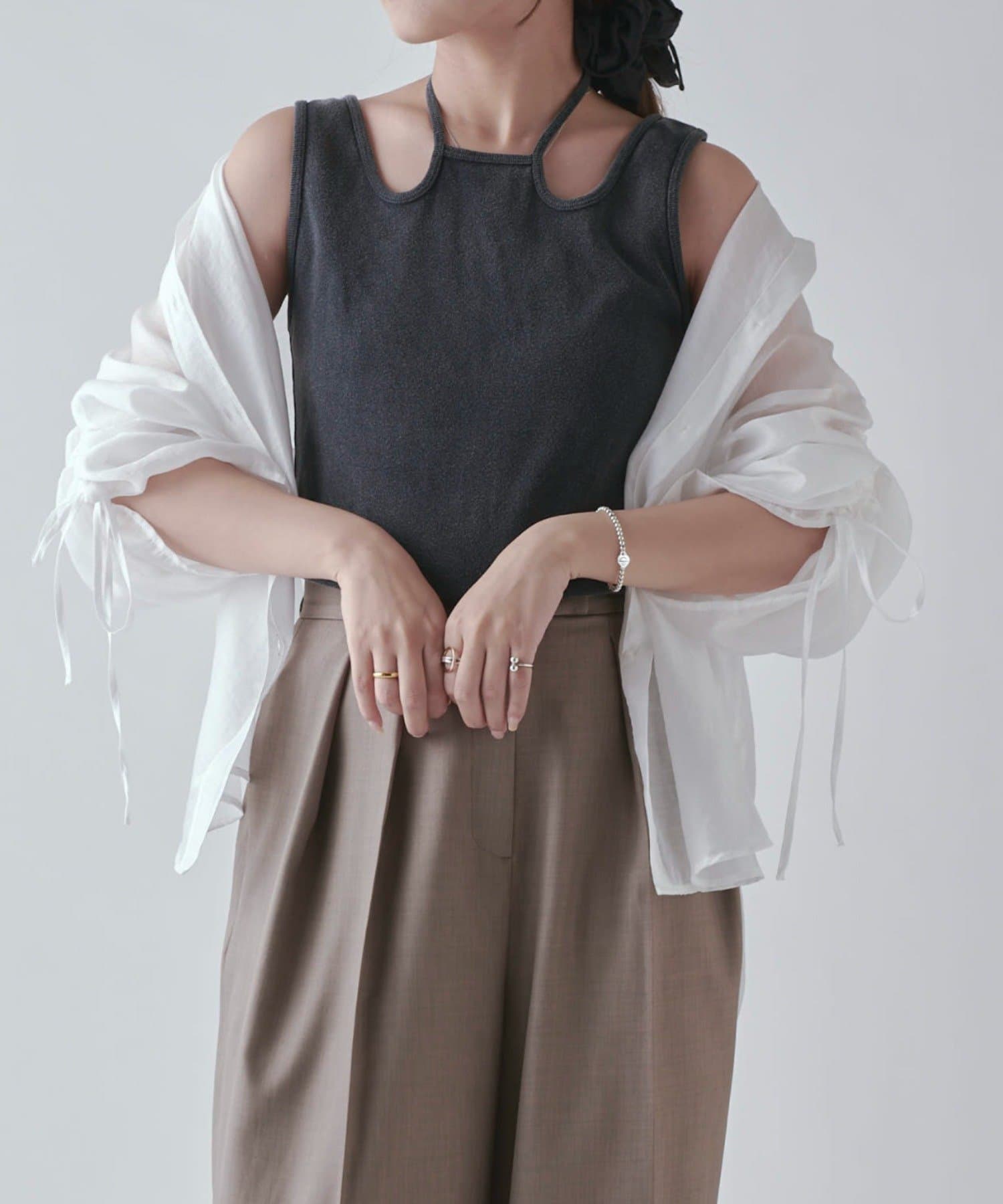 ベーシックなワイドパンツと合わせた王道なキレイめスタイルや、スカートで合わせた大人かわいいスタイリングにも◎