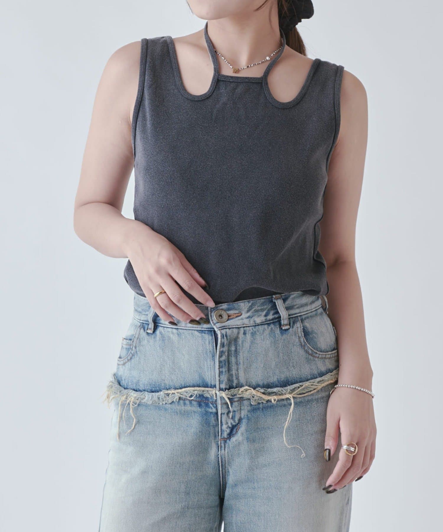 カッティングデザインがシンプルすぎないので、一枚でばっちり決まるデザイントップス。