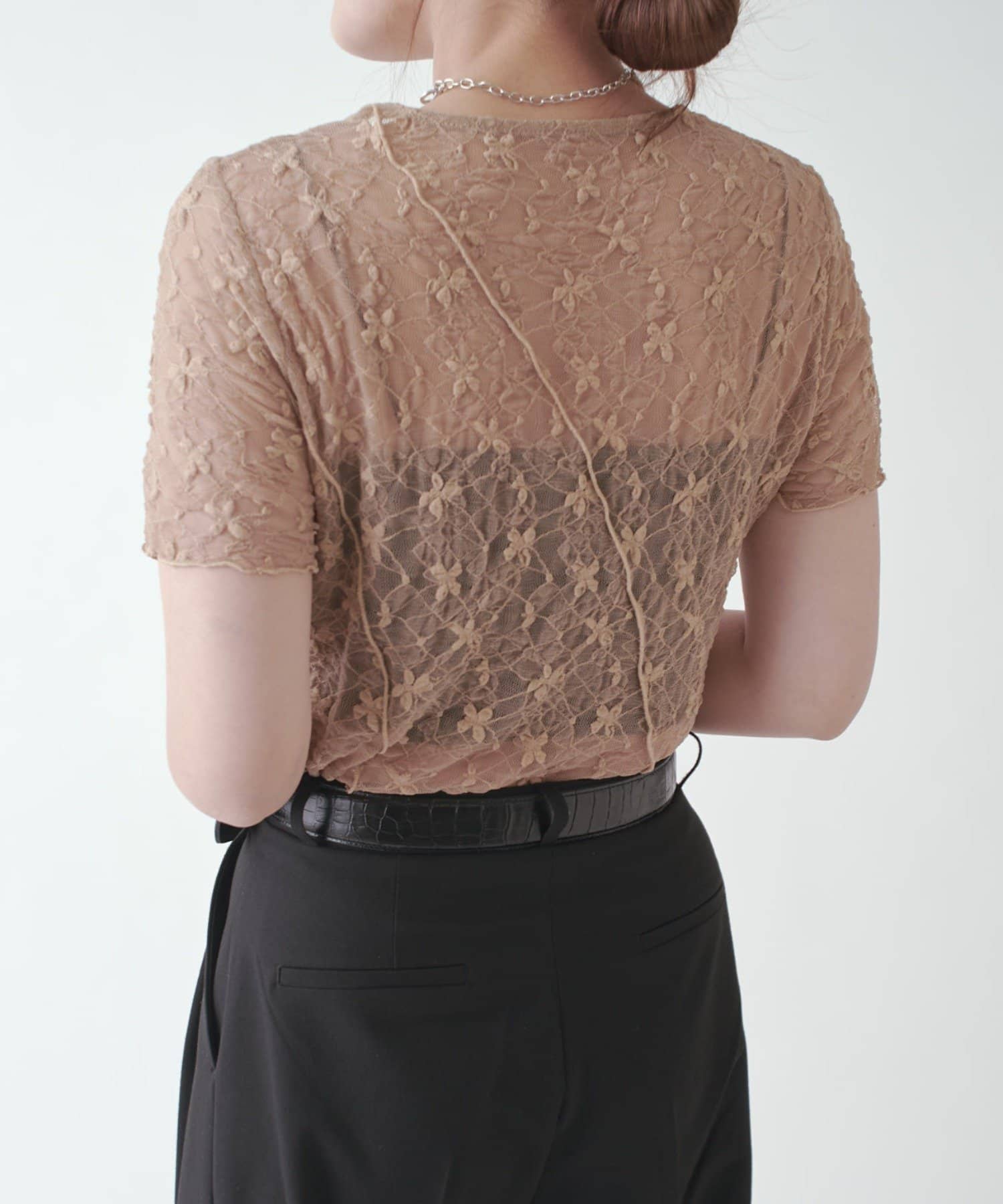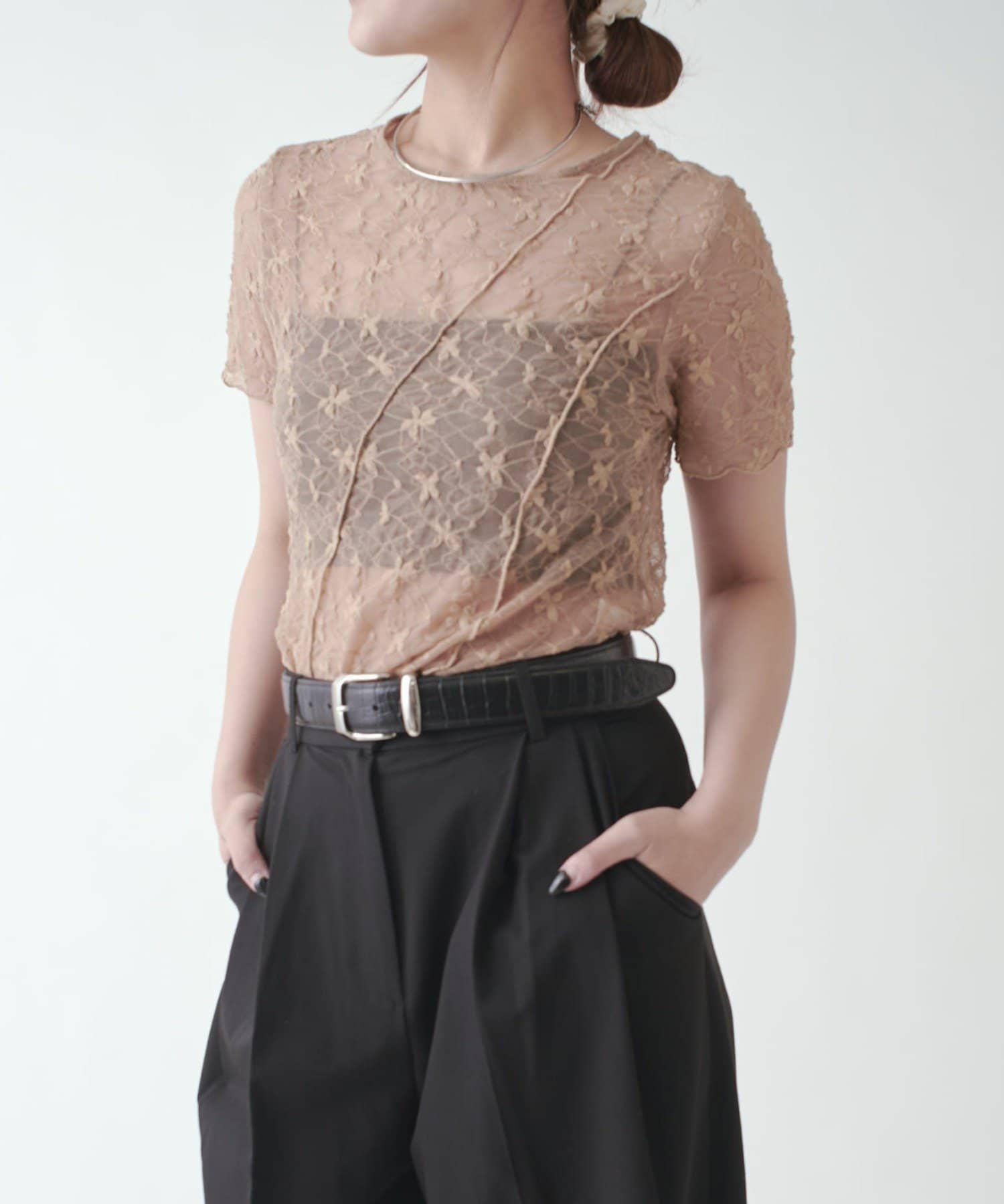 レースとメロウデザインが特徴的な、一枚で決まるシアートップス。