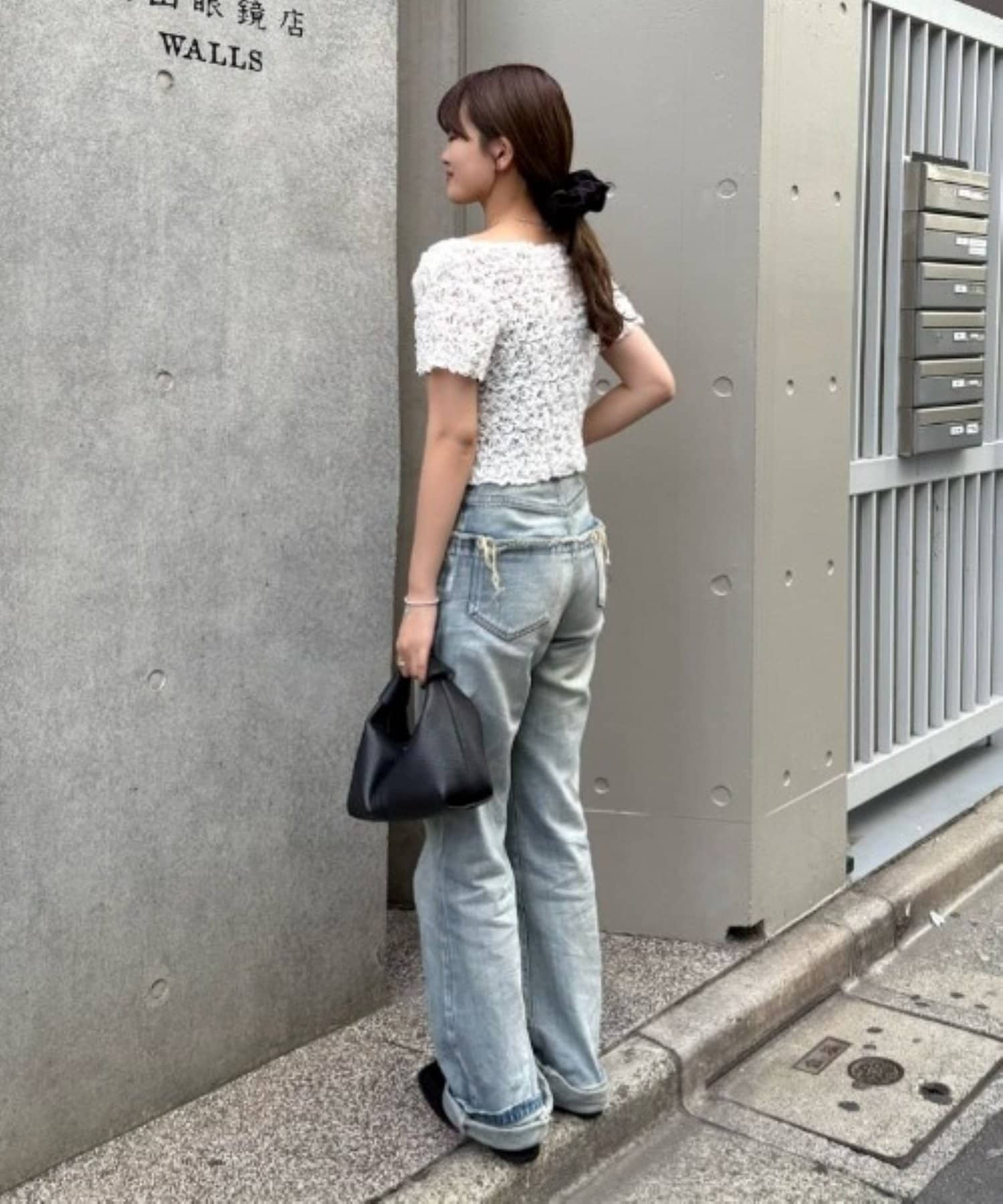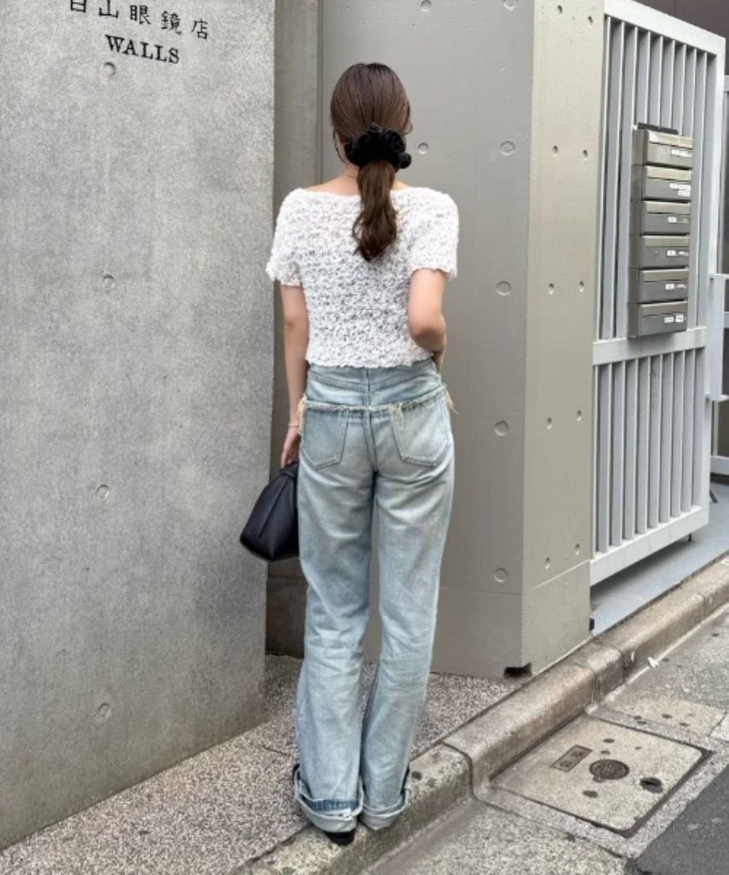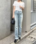 素材がキレイめな印象ですが、ブルーデニムで合わせる大人カジュアルなスタイリングや