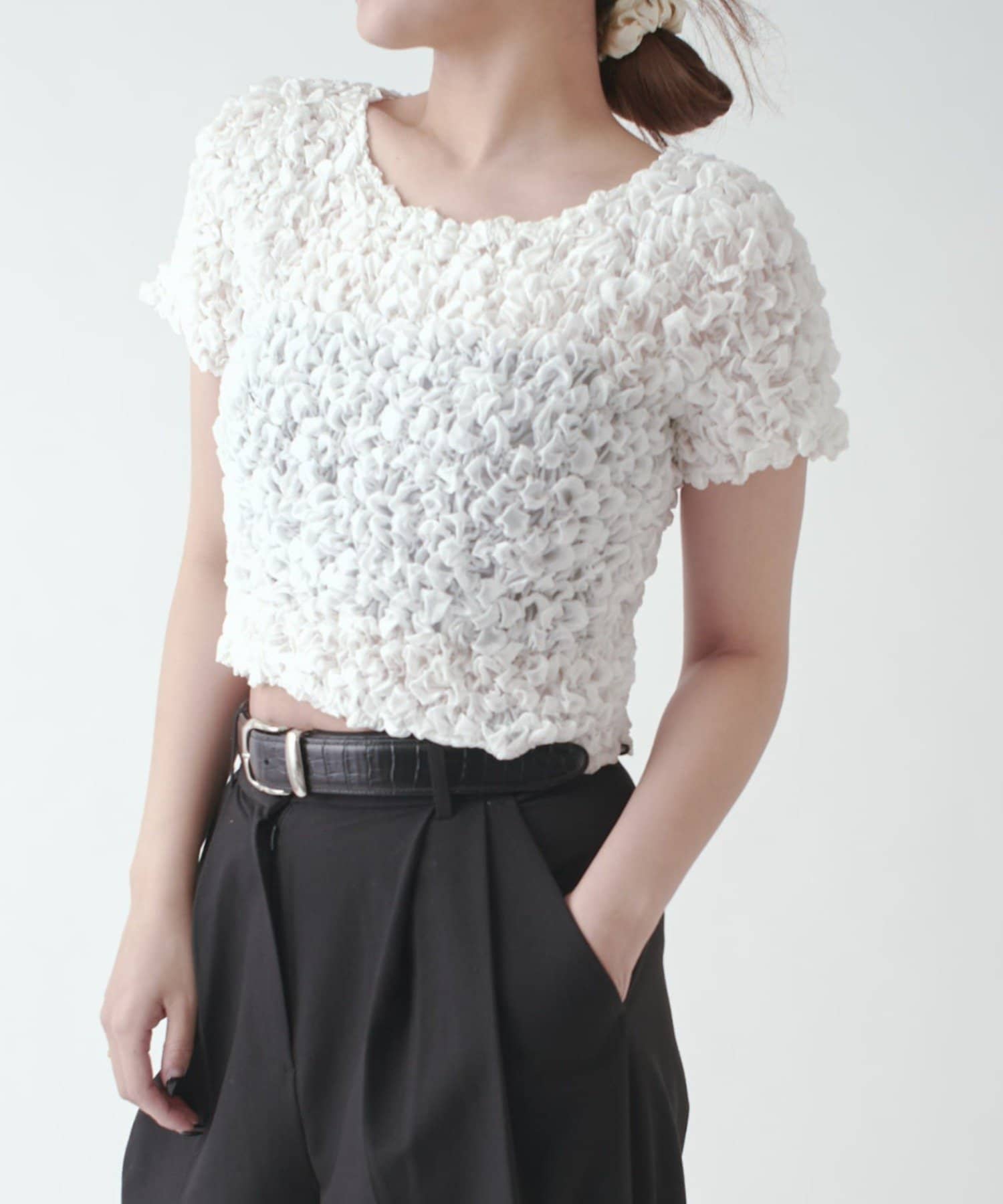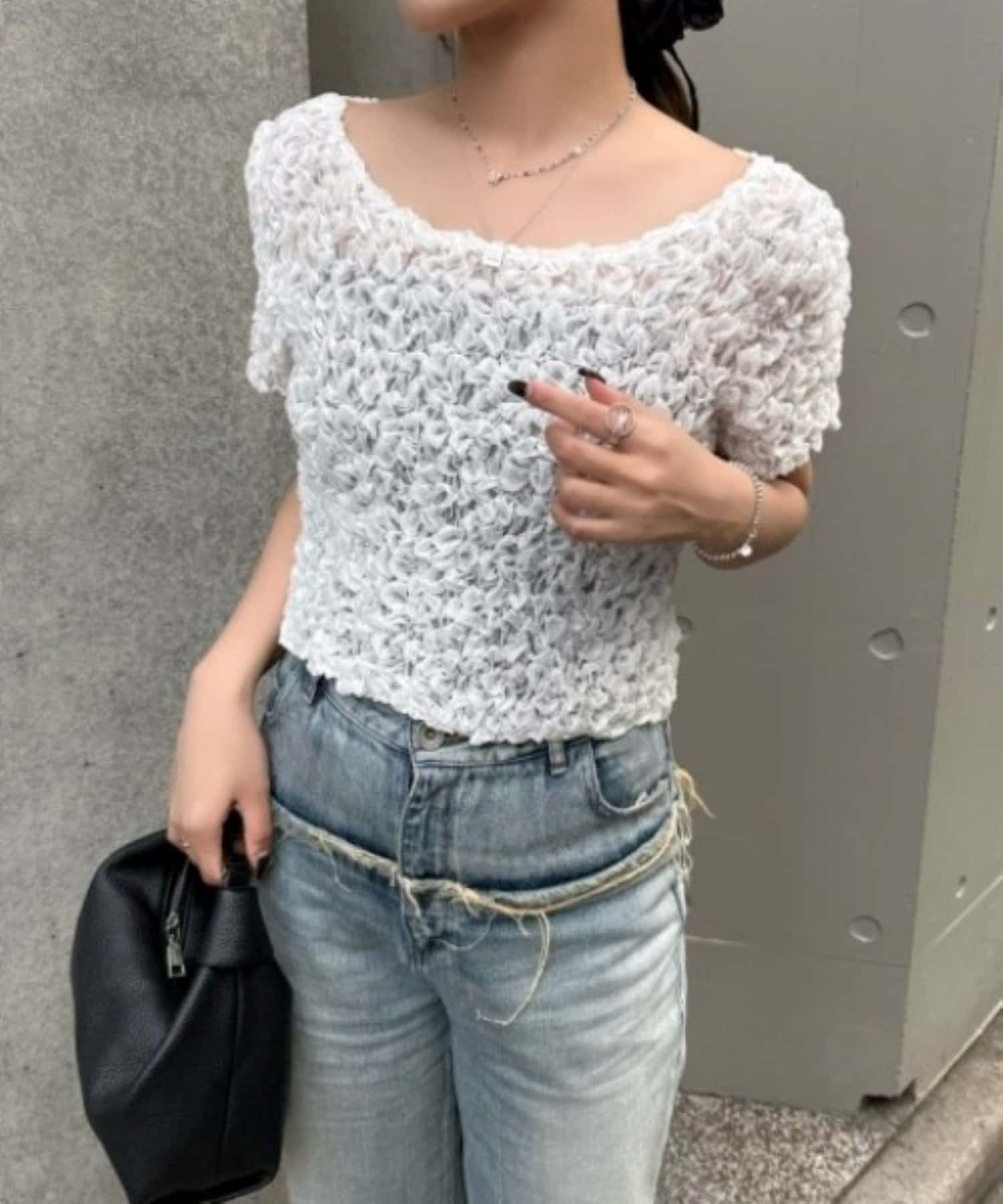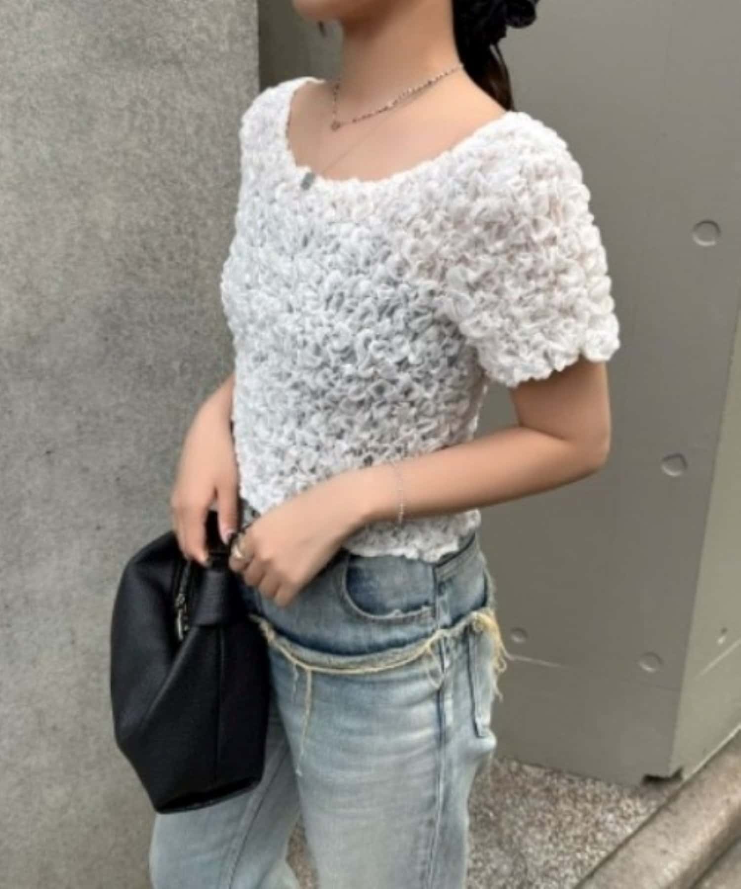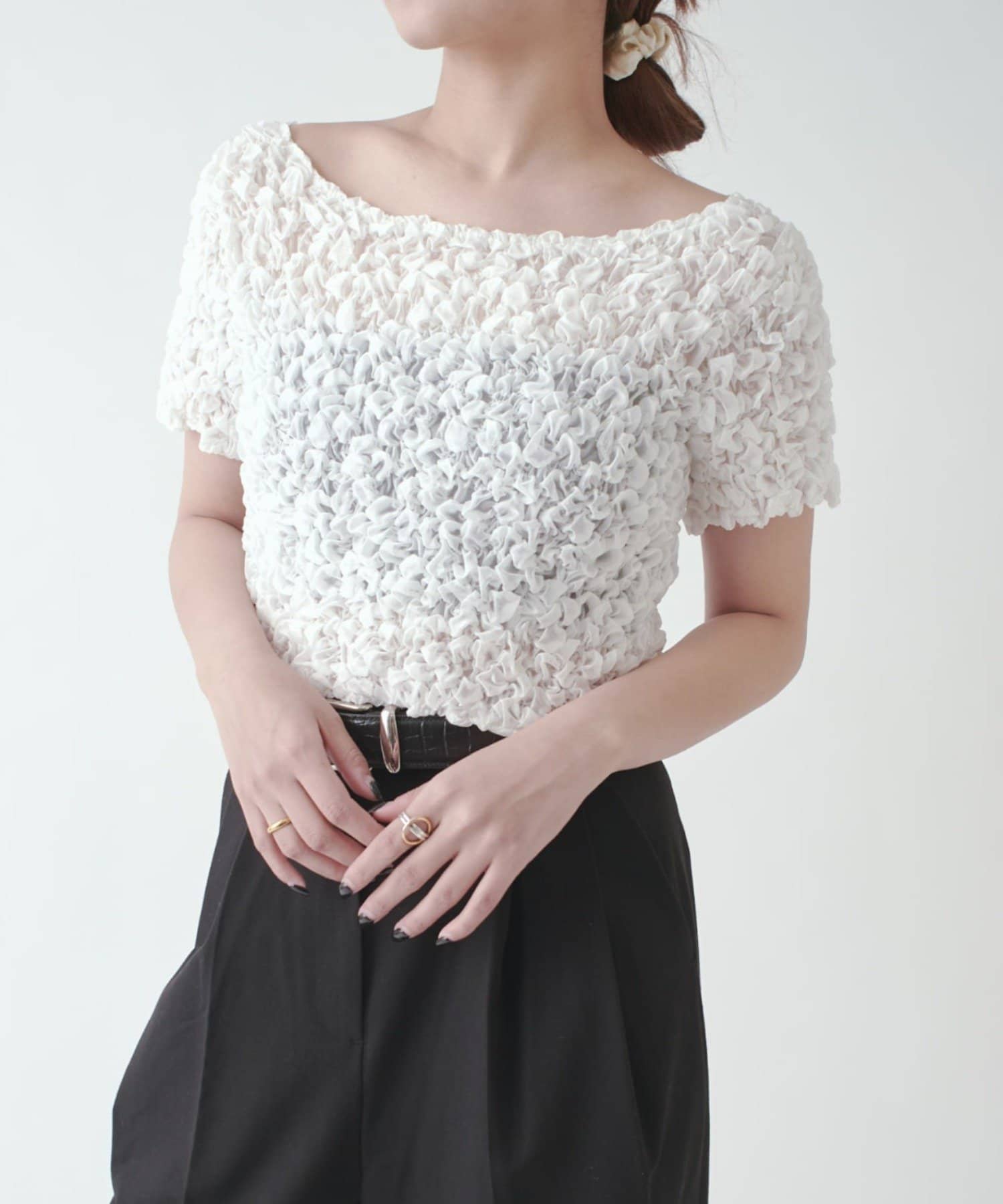ポコポコのデザインが一癖あり存在感が出るので、一枚で決まる万能トップスです。