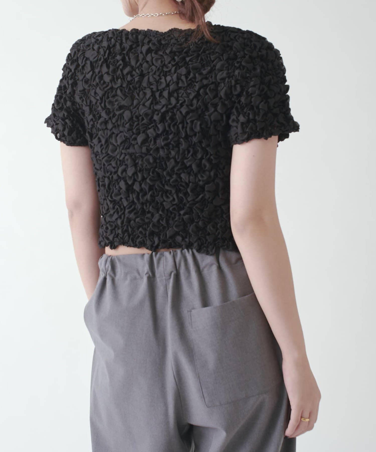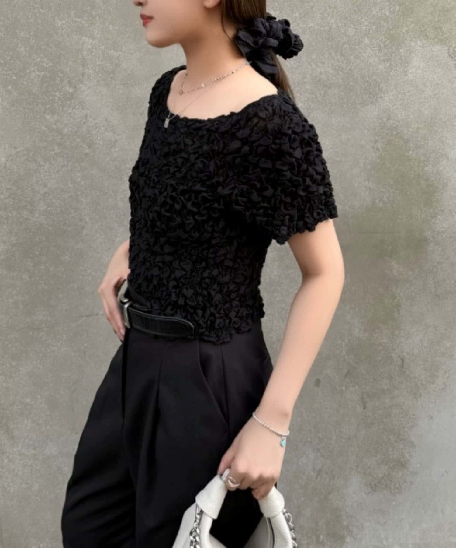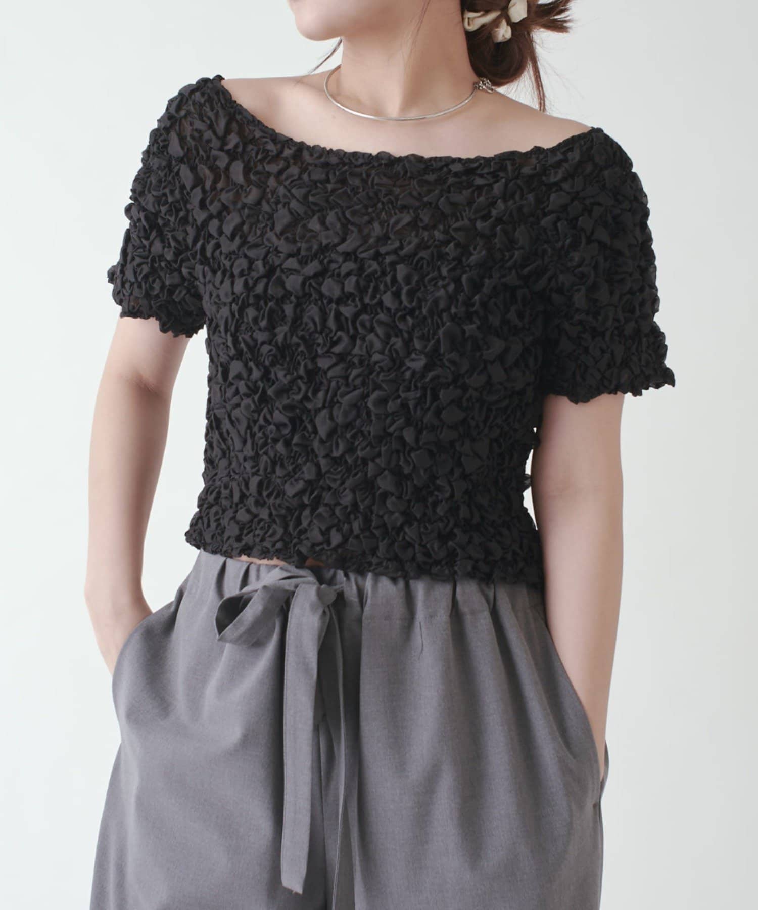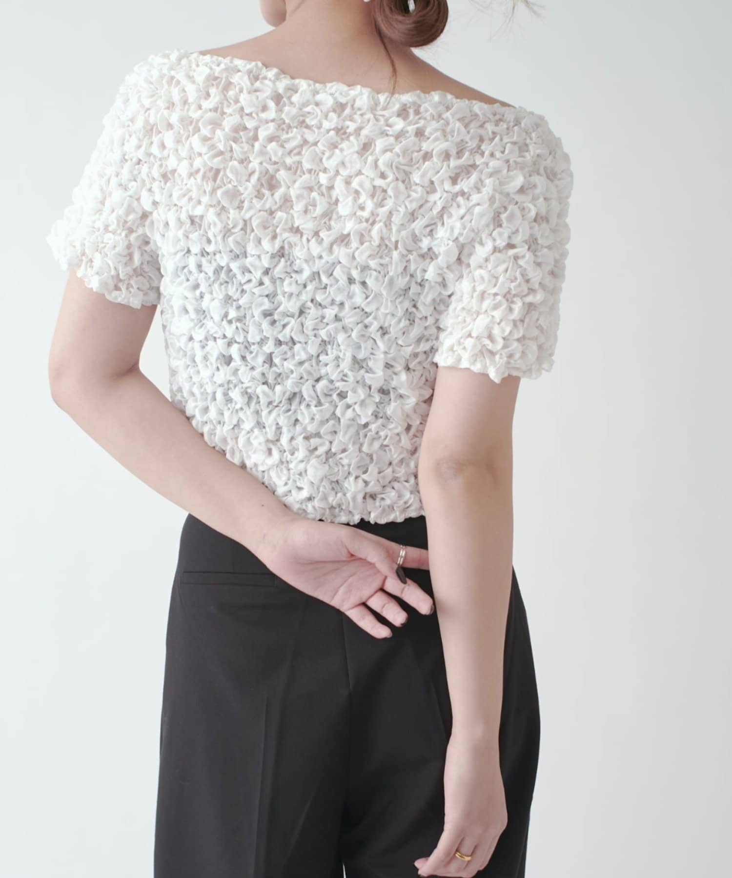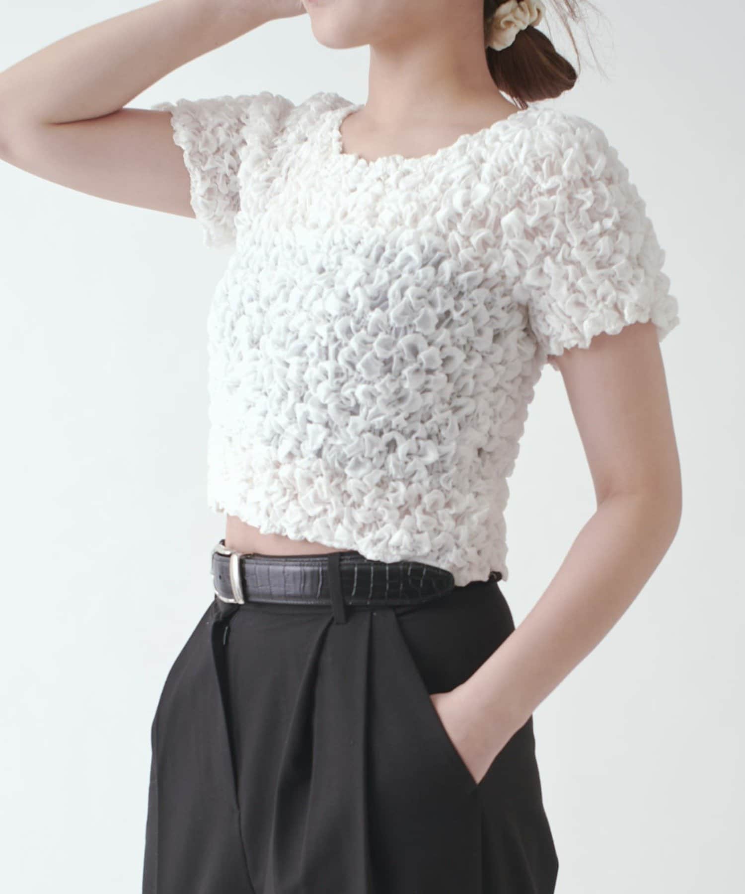 ポコポコのデザインが一癖あり存在感が出るので、一枚で決まる万能トップスです。