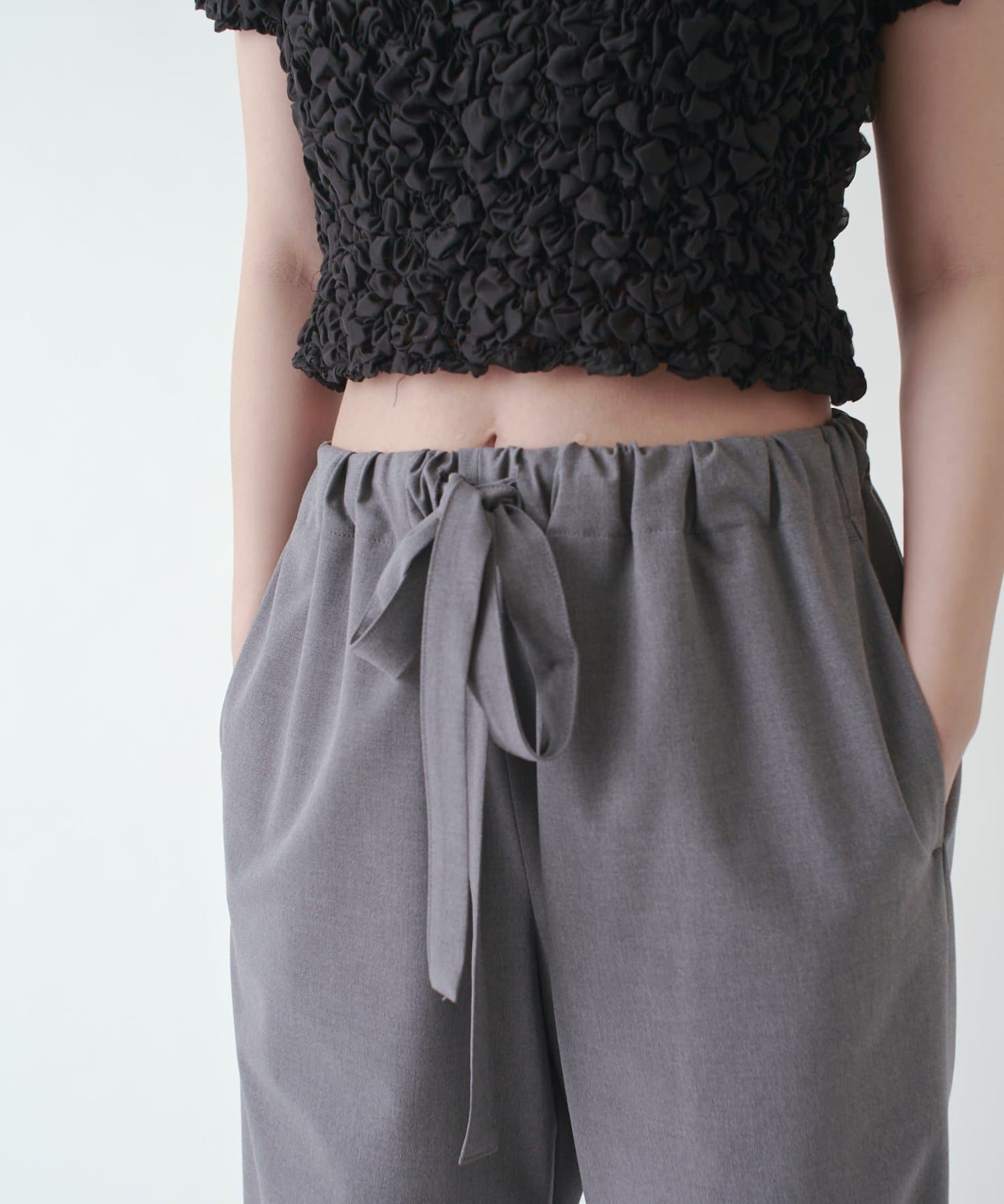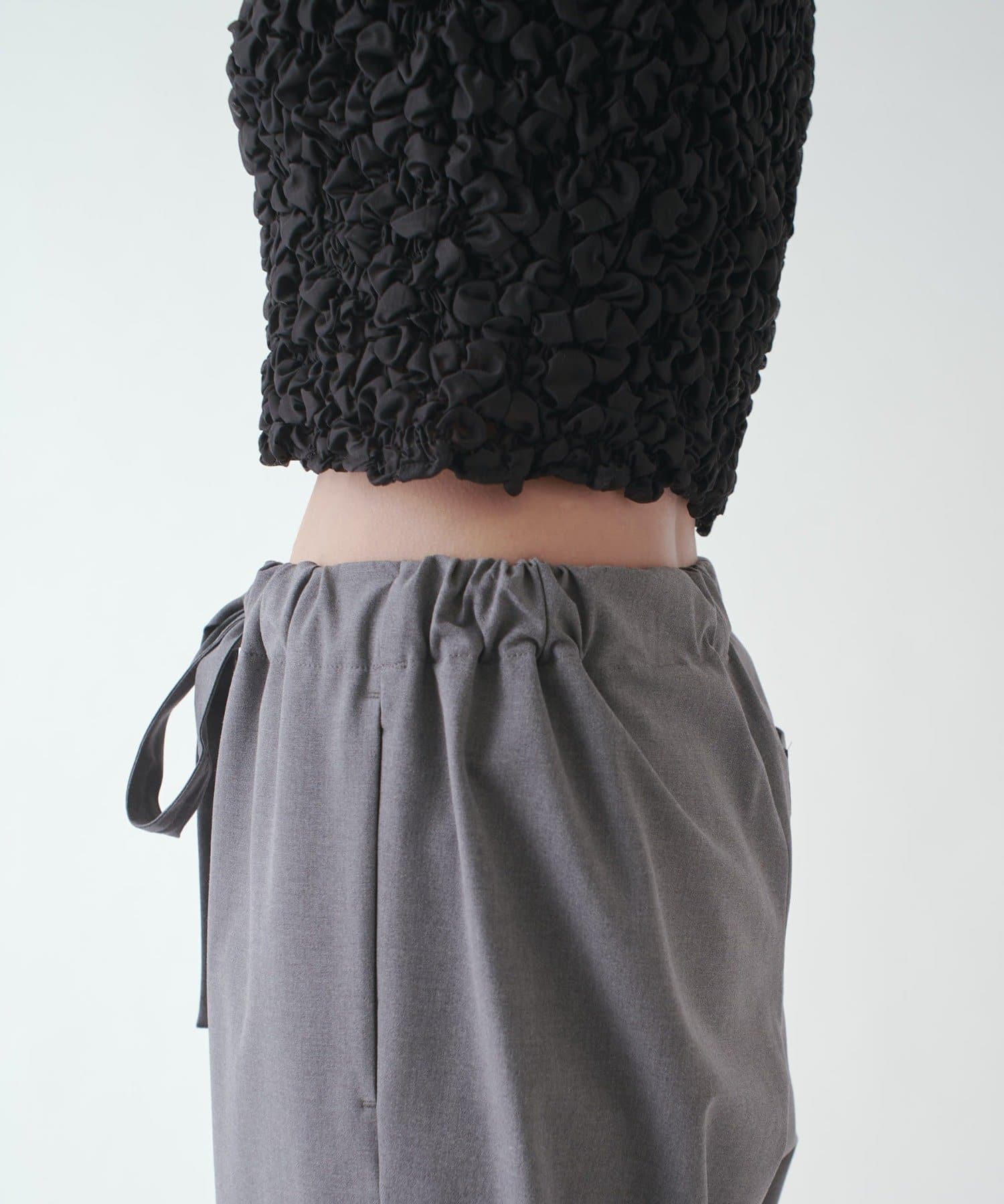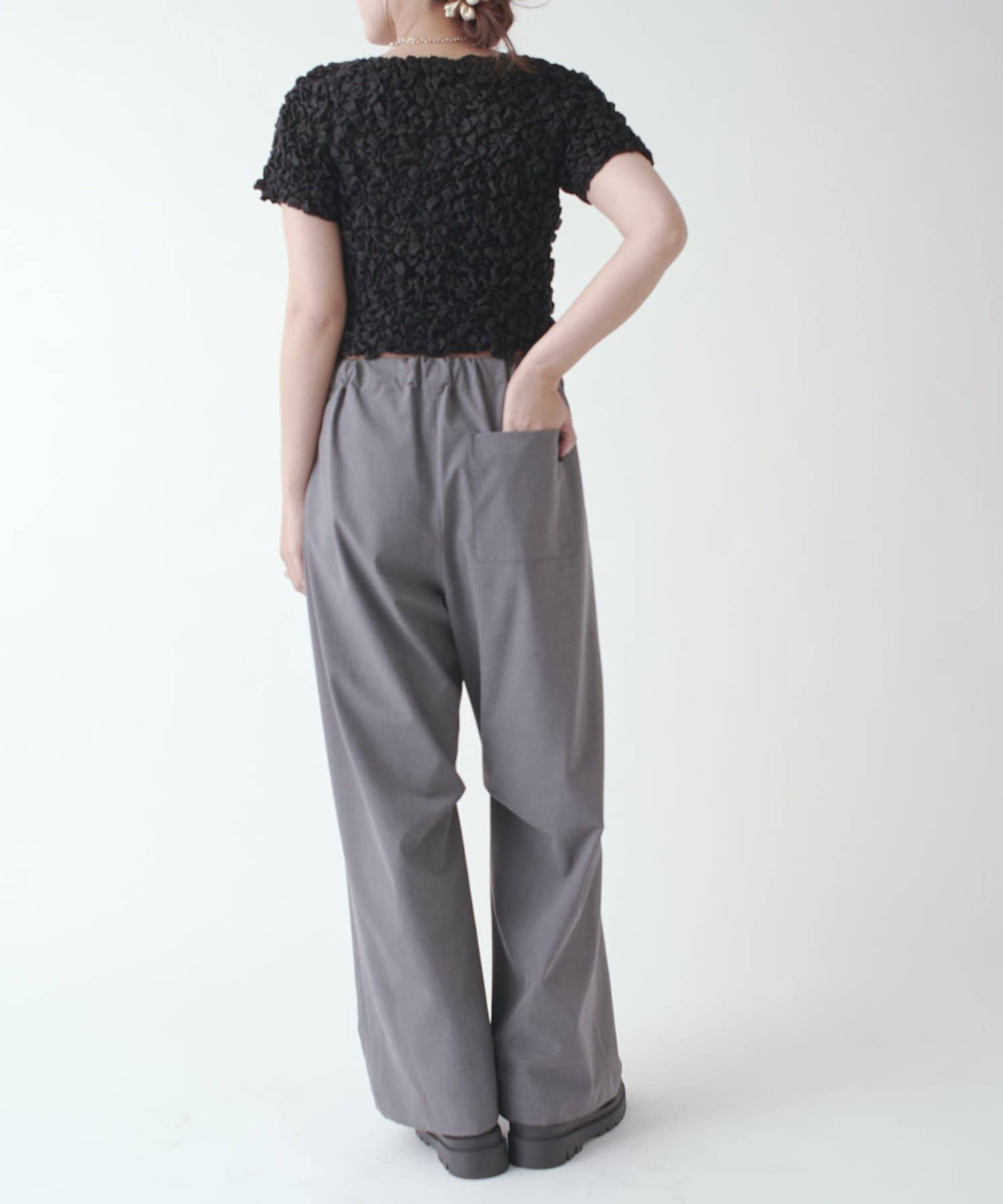 トレンドな素材感を使用している生地で、伸縮性があります。