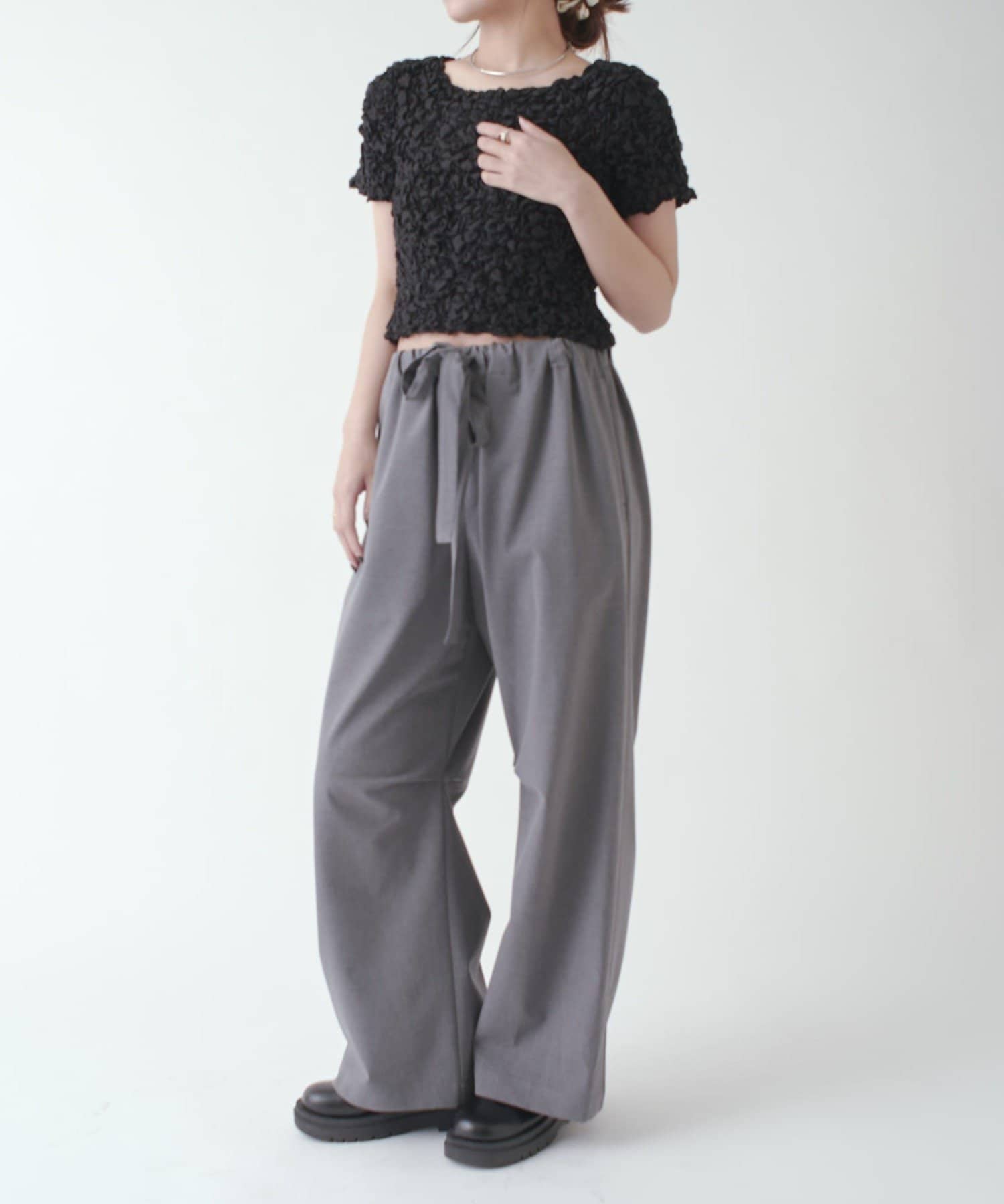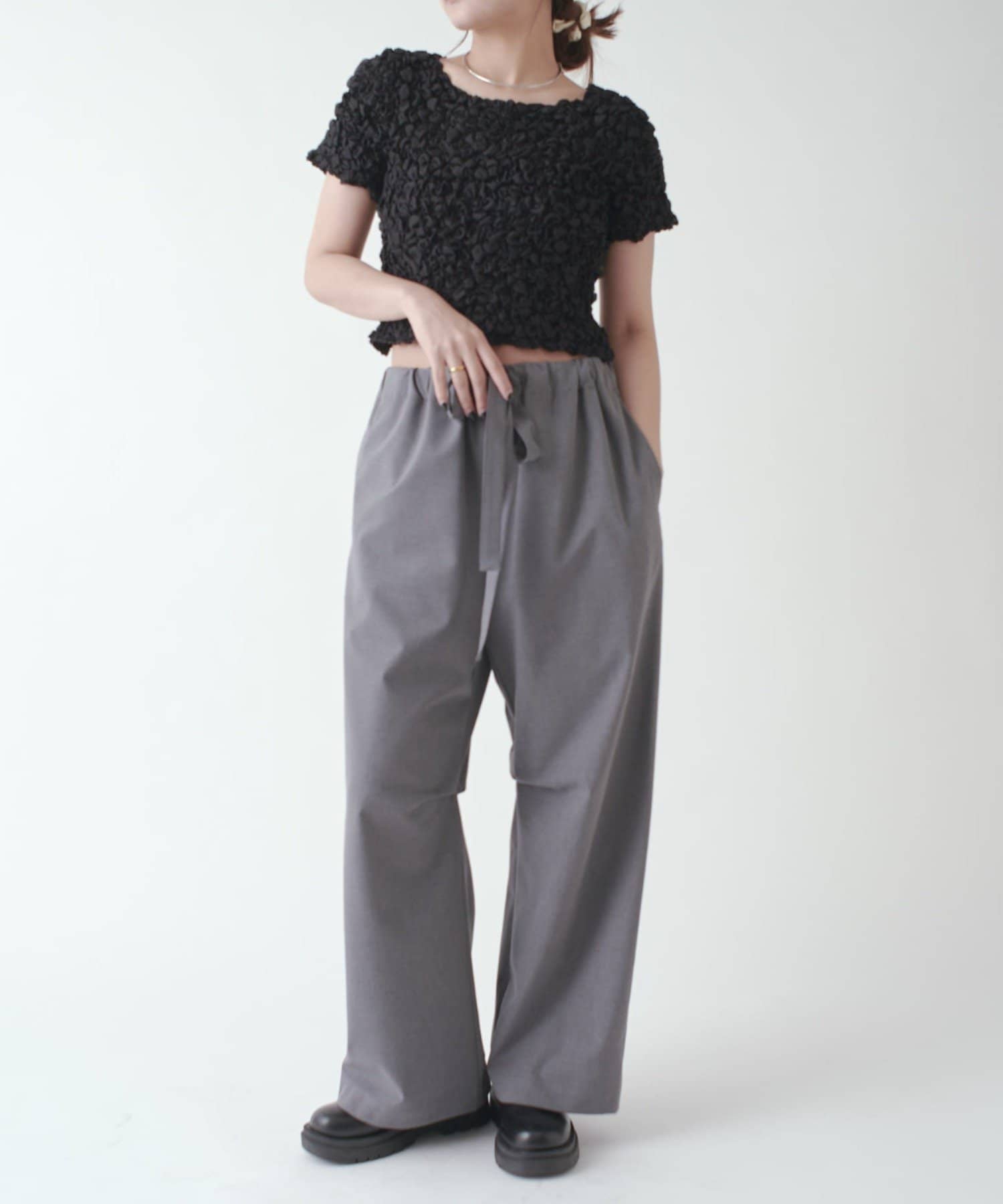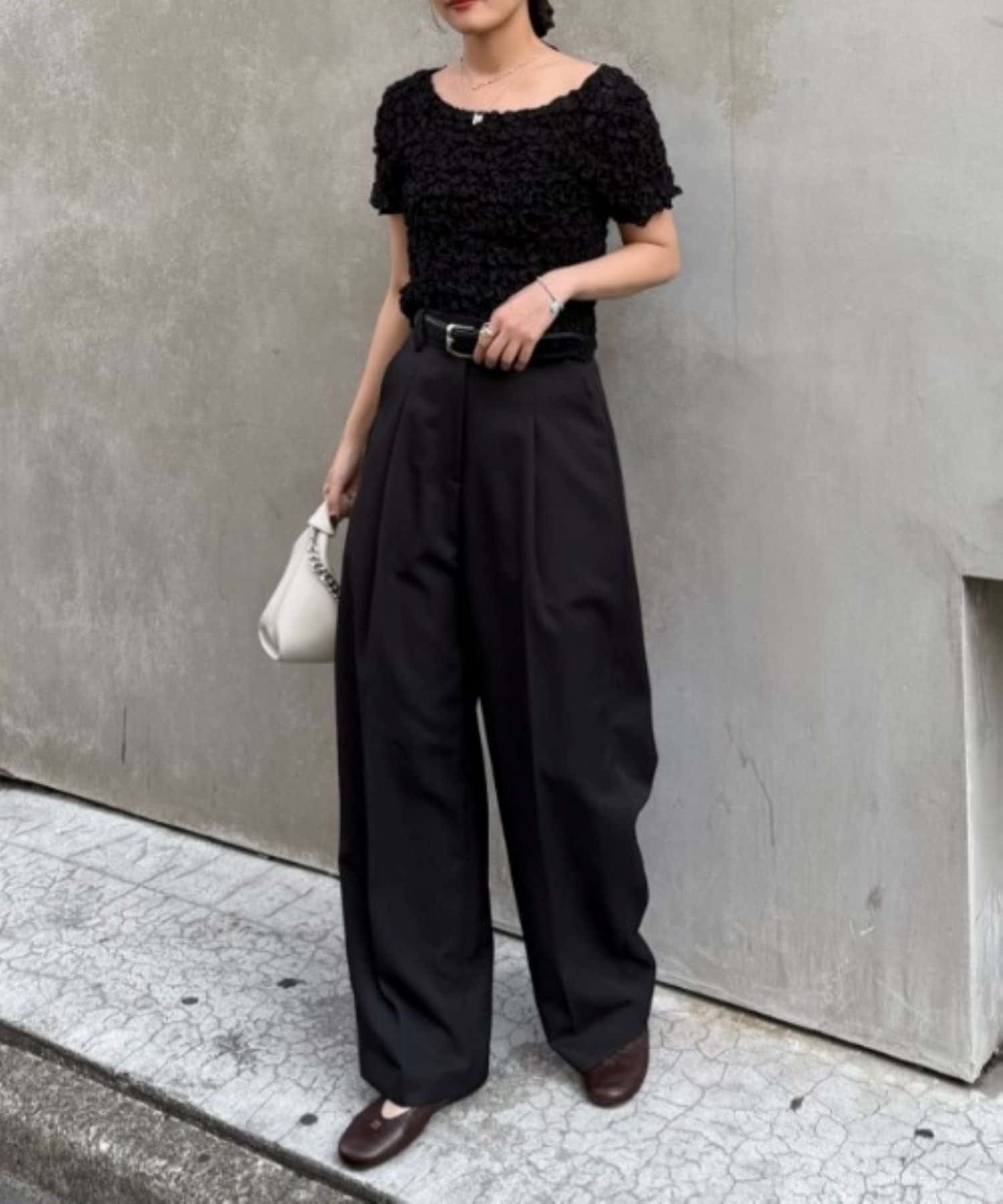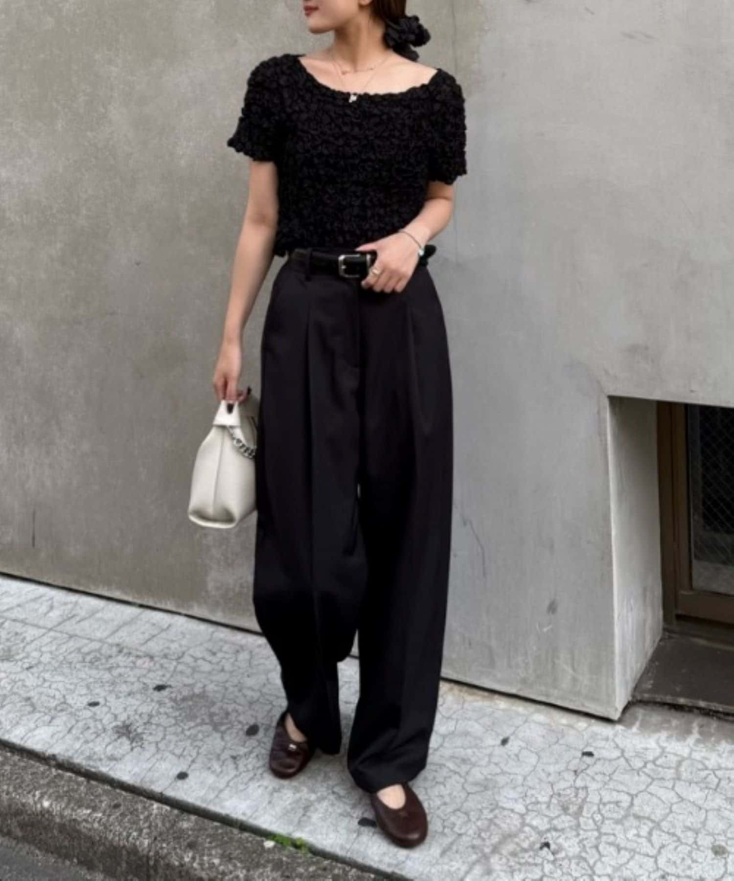 今年っぽいトレンドライクな素材感で、パンツ・スカート問わず合わせられます。