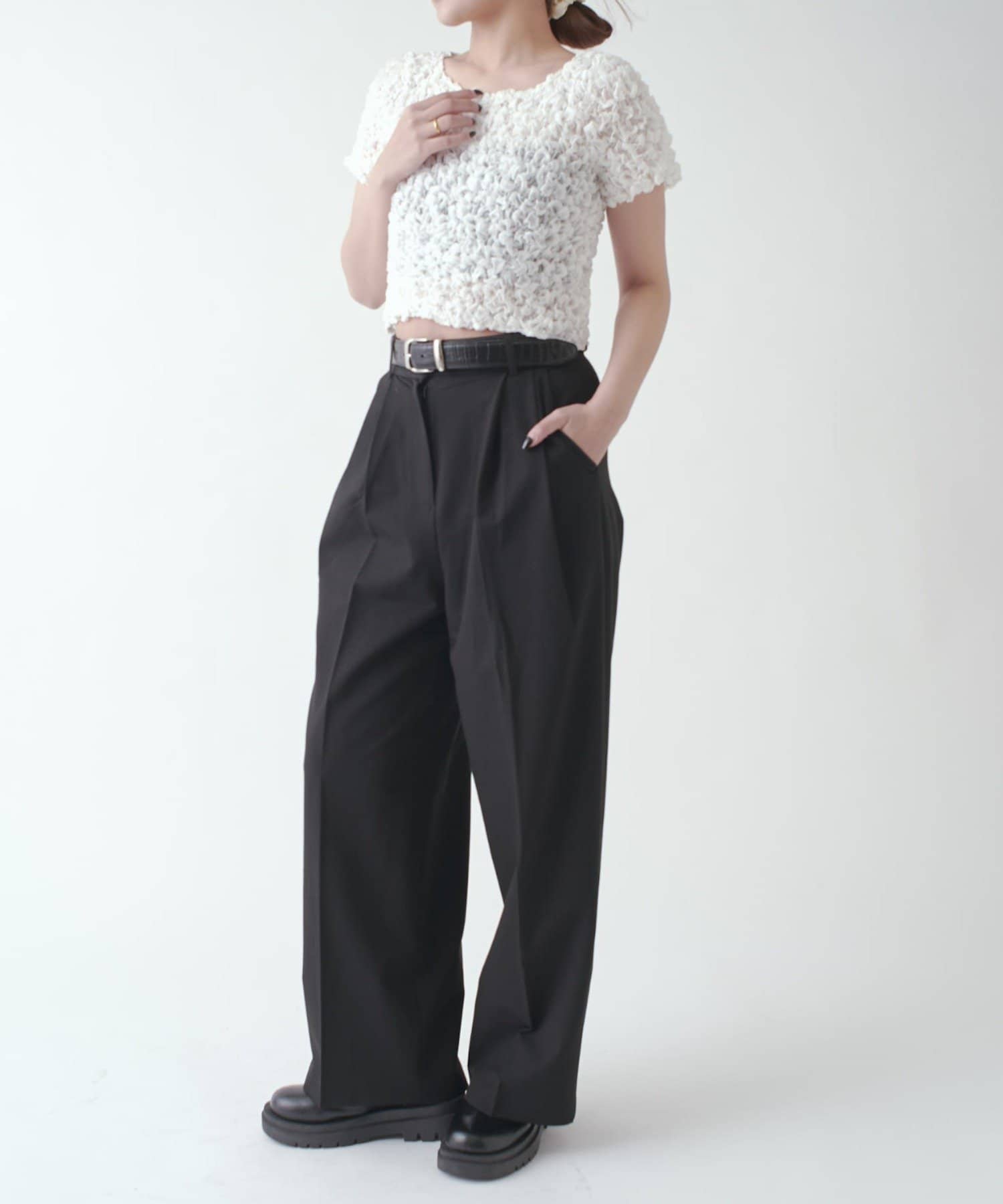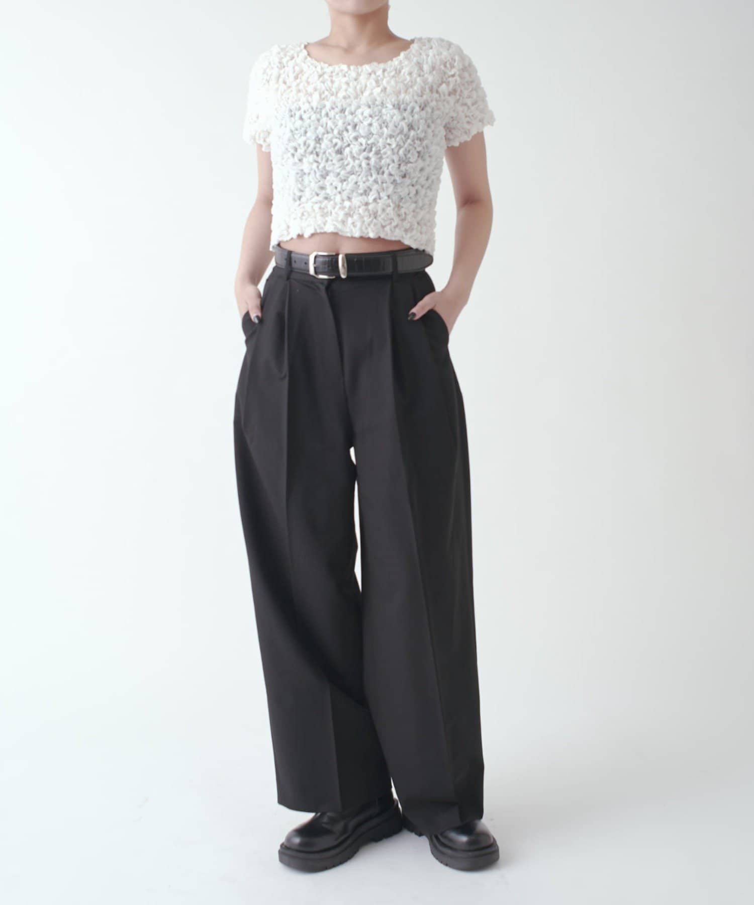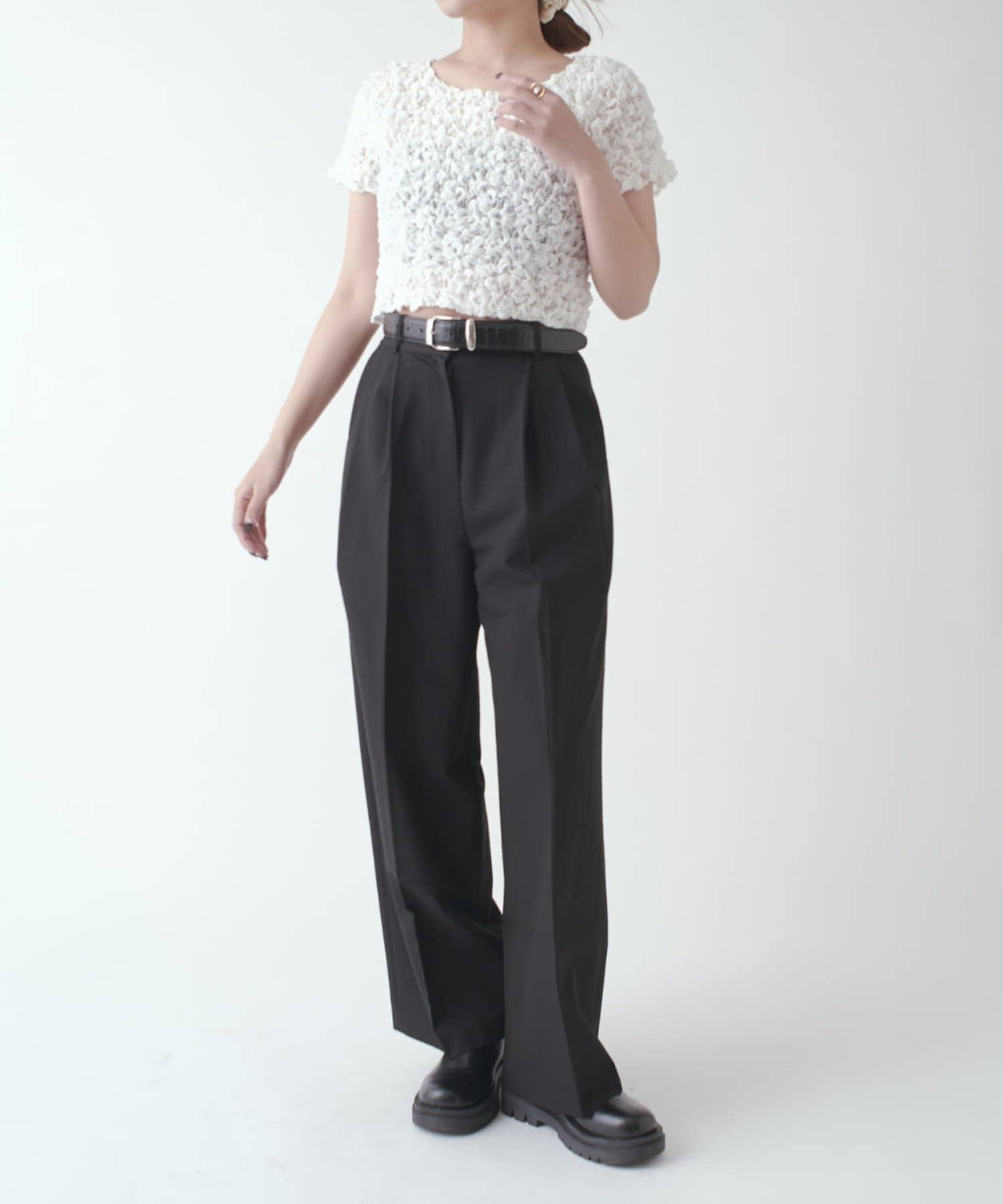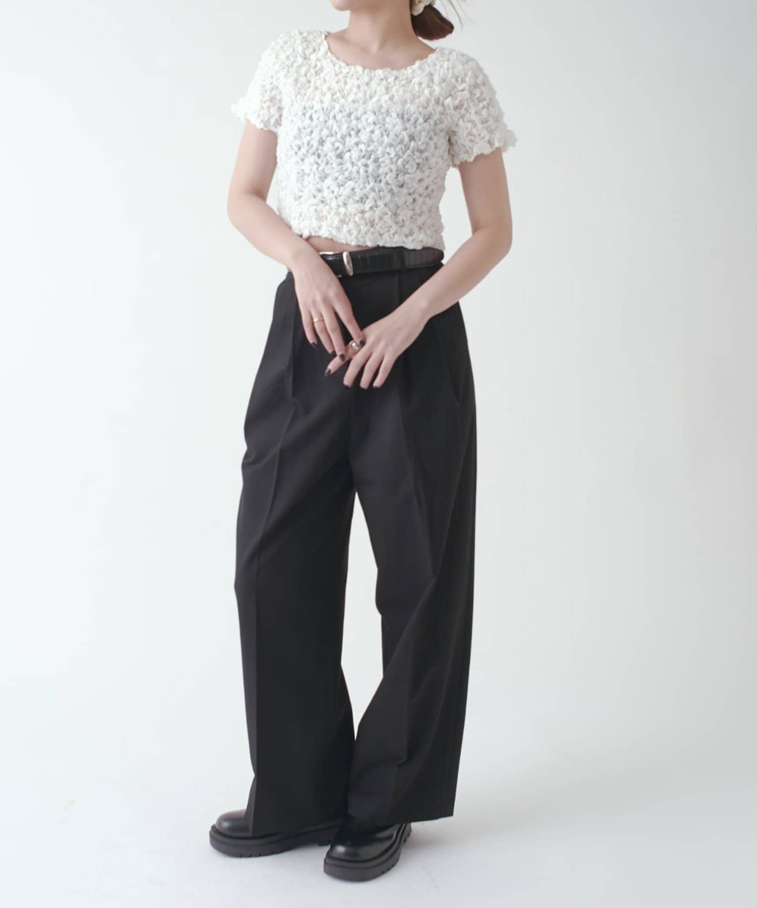 今年っぽいトレンドライクな素材感で、パンツ・スカート問わず合わせられます。